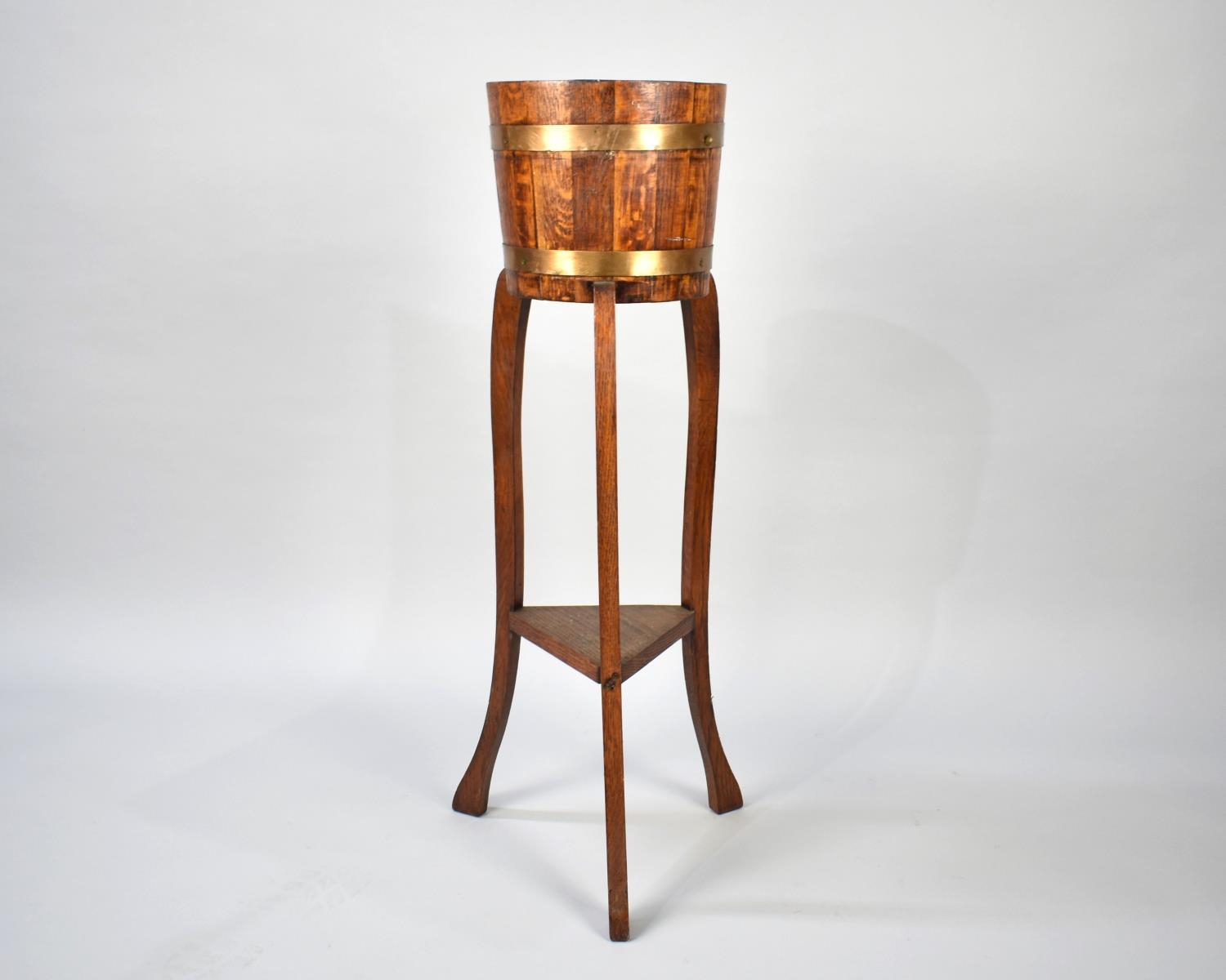 A Mid 20th Century Coopered Oak Plant Stand on Tripod Support, 26cm Diameter and 91cm High