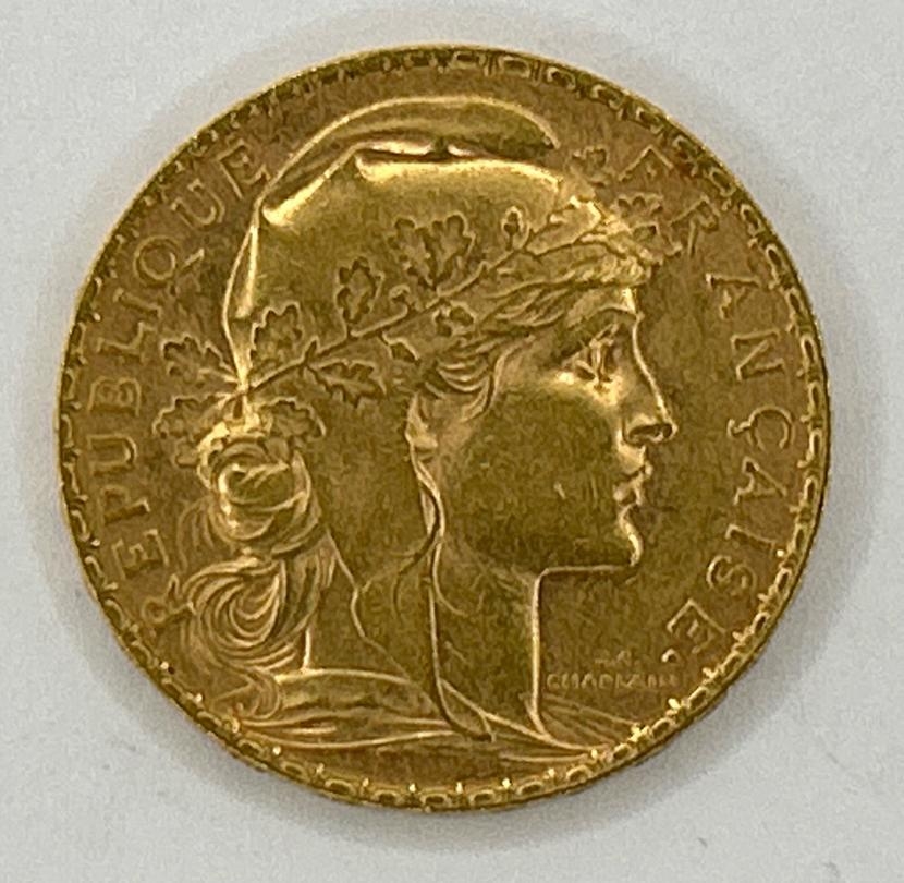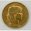 1906 French 20 Franc gold coin, 6.5g / SF