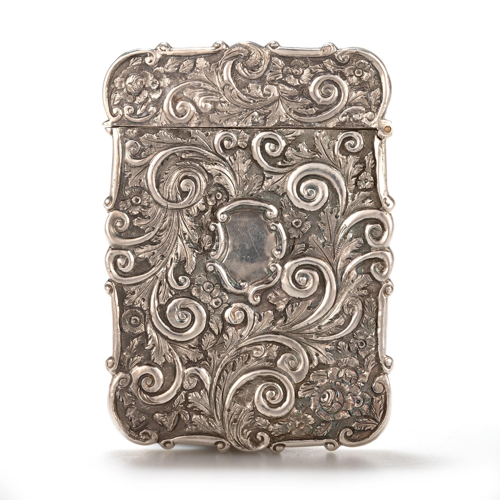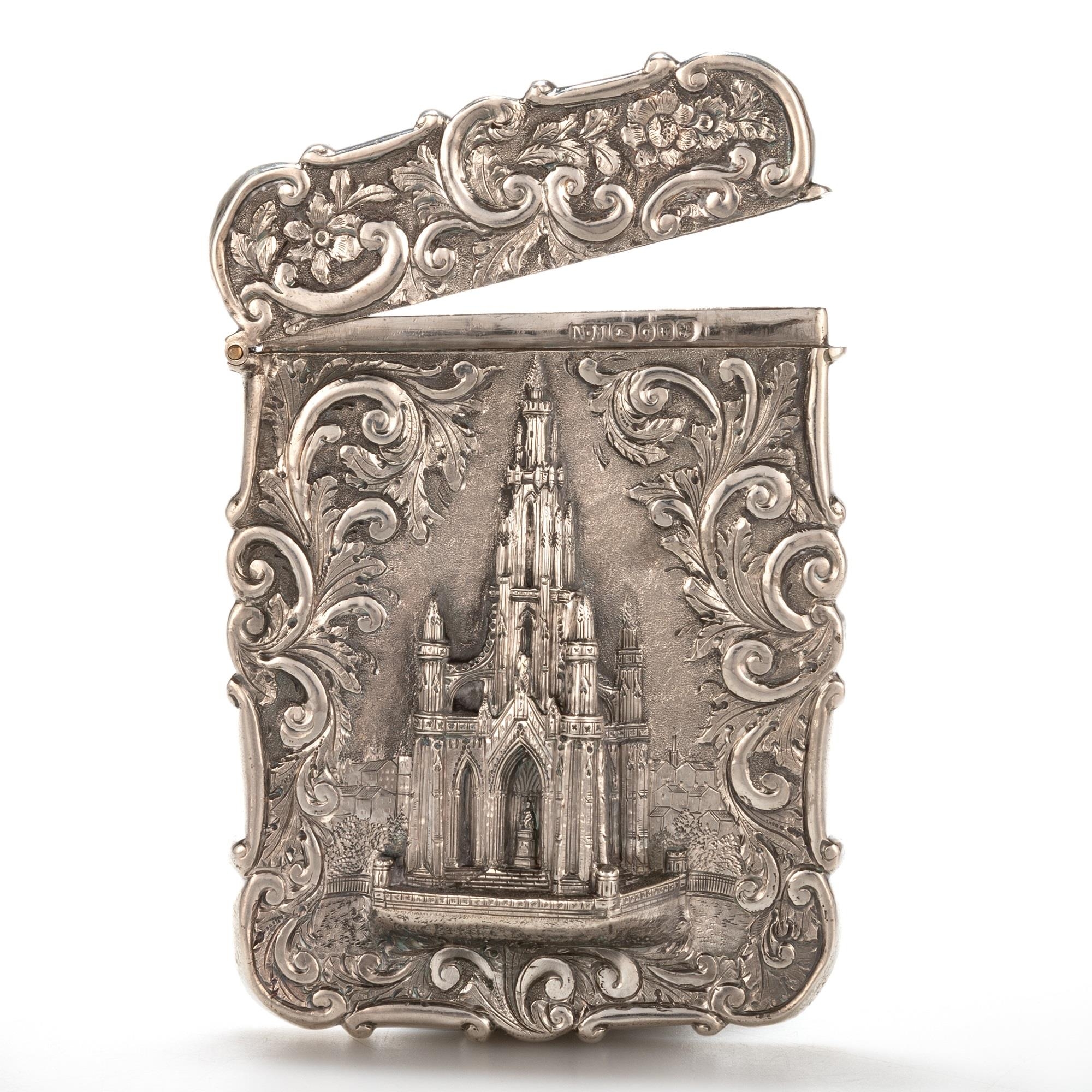 A VICTORIAN SILVER CASTLE-TOP CARD CASE, THE SCOTT MEMORIAL