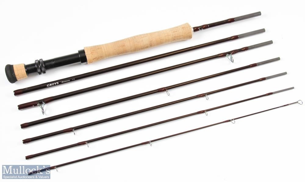 Grey's Missionary Carbon Travel Fly Rod, 9ft 7pc line 8#, alloy double uplocking reel seat and collar, fighting butt, lined stripping rings, original cloth bag and Cordura tube