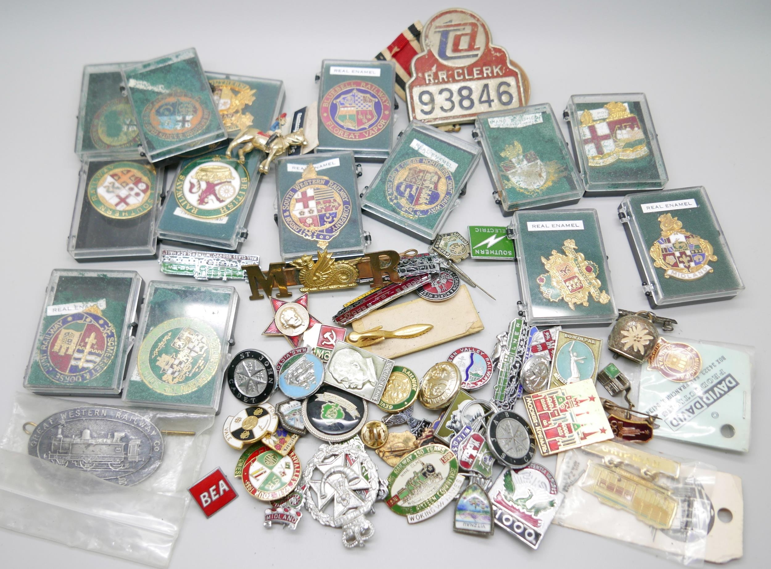 A Special Constabulary medal to Charles R. Griffiths and a collection of railway enamel badges and other badges