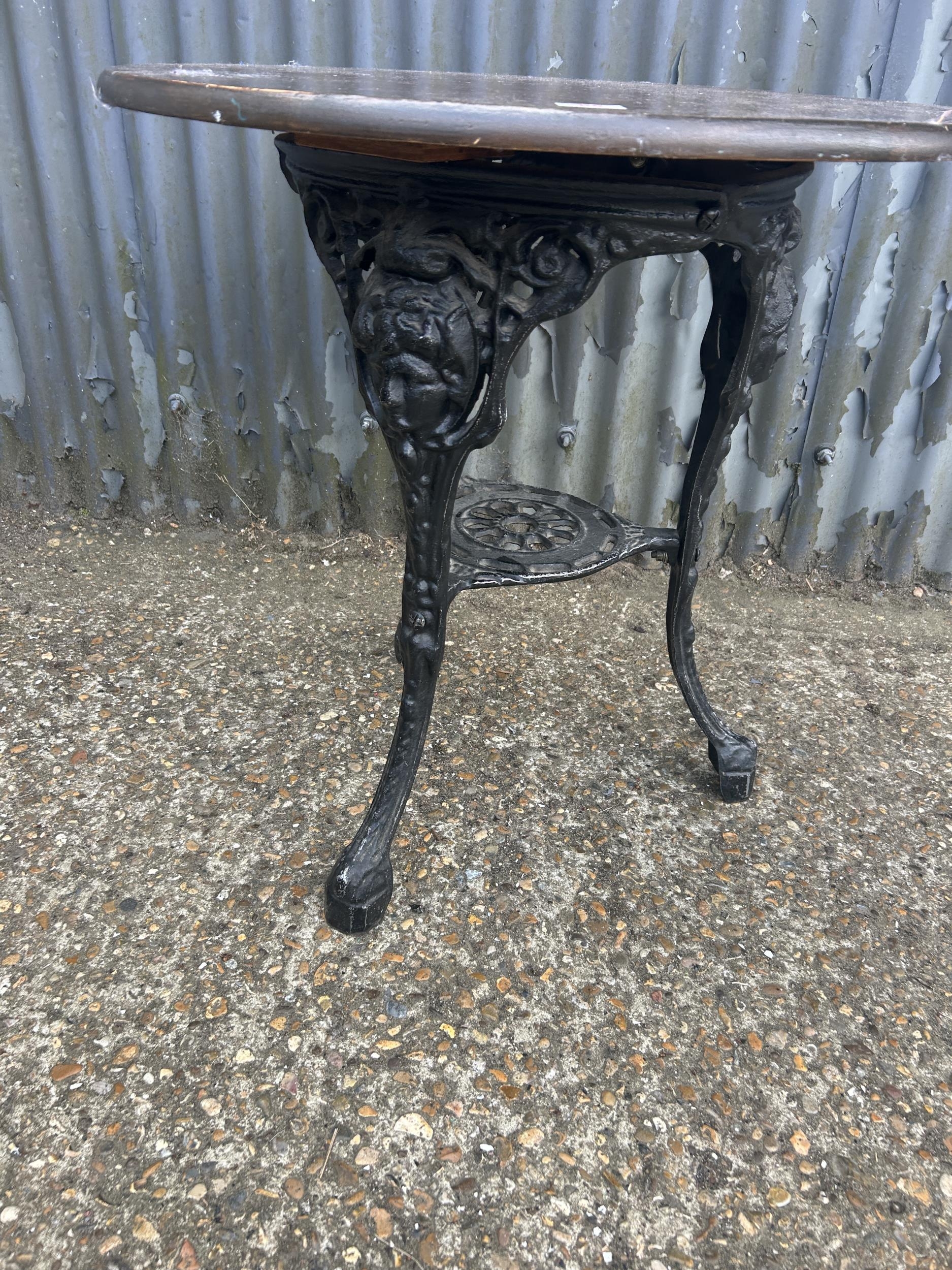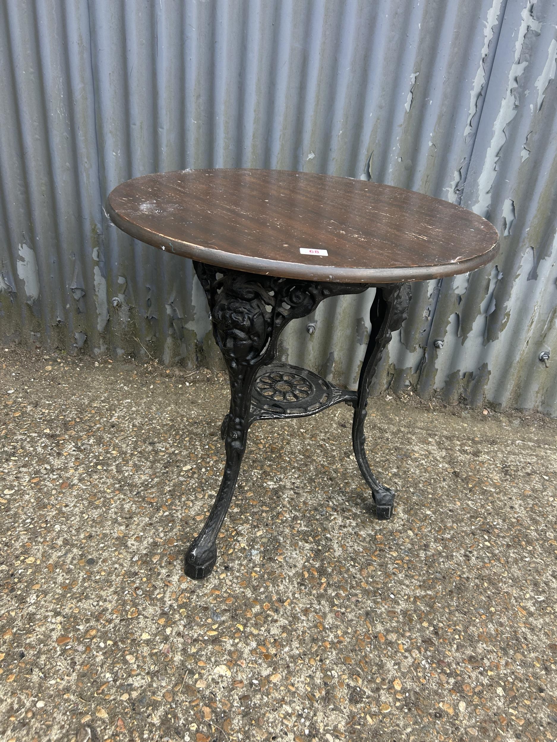 A cast aluminium based pub table 70cm diameter 70 tall