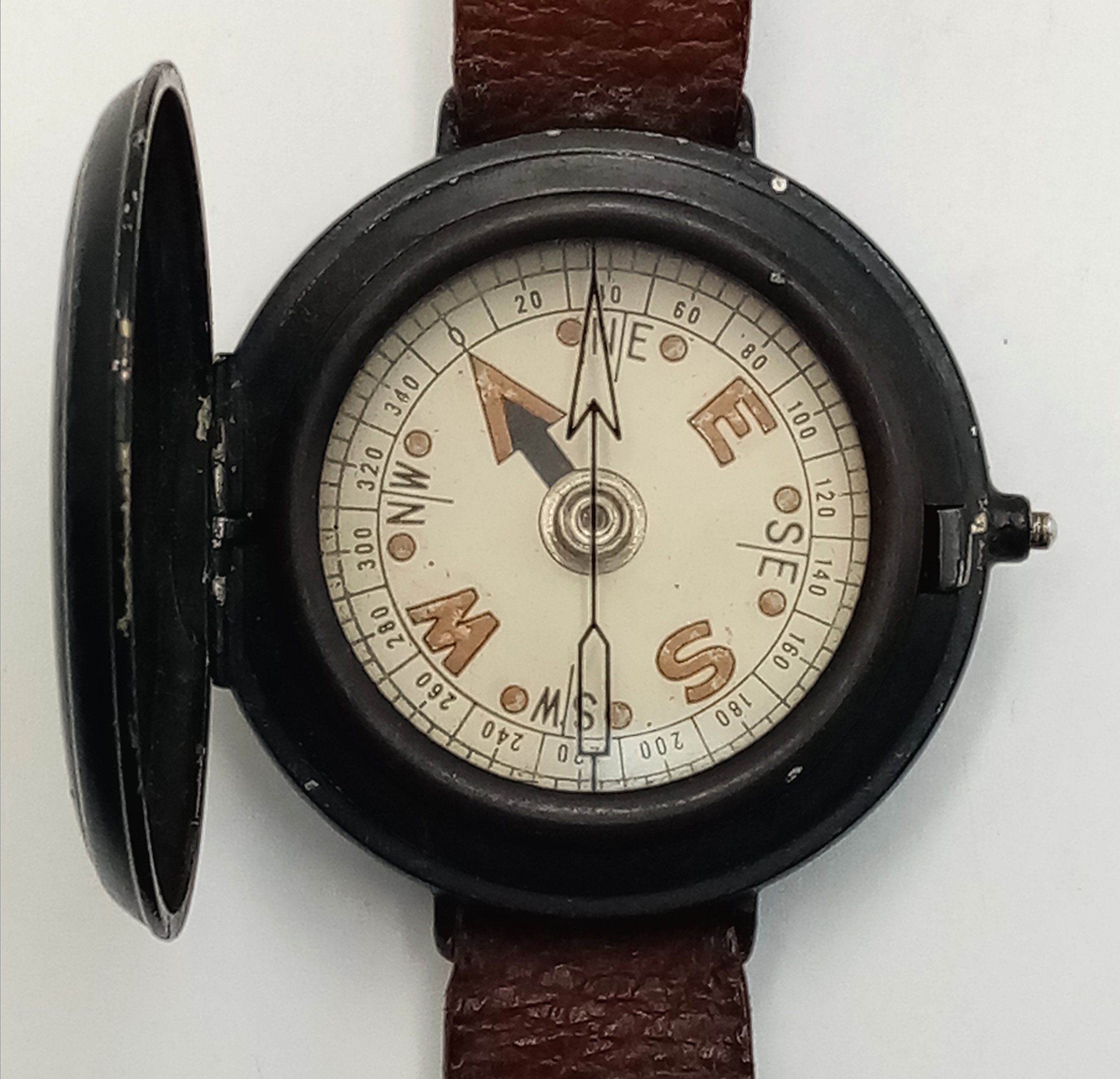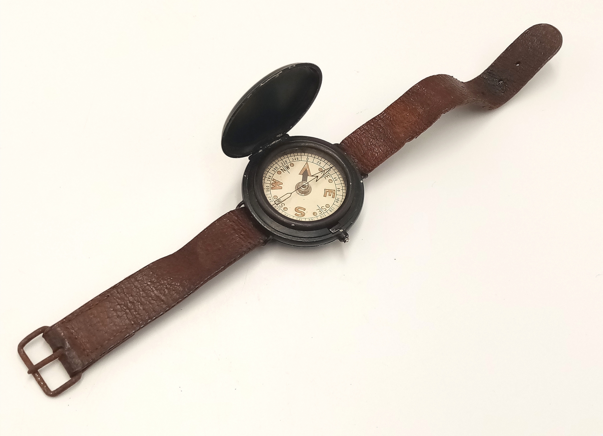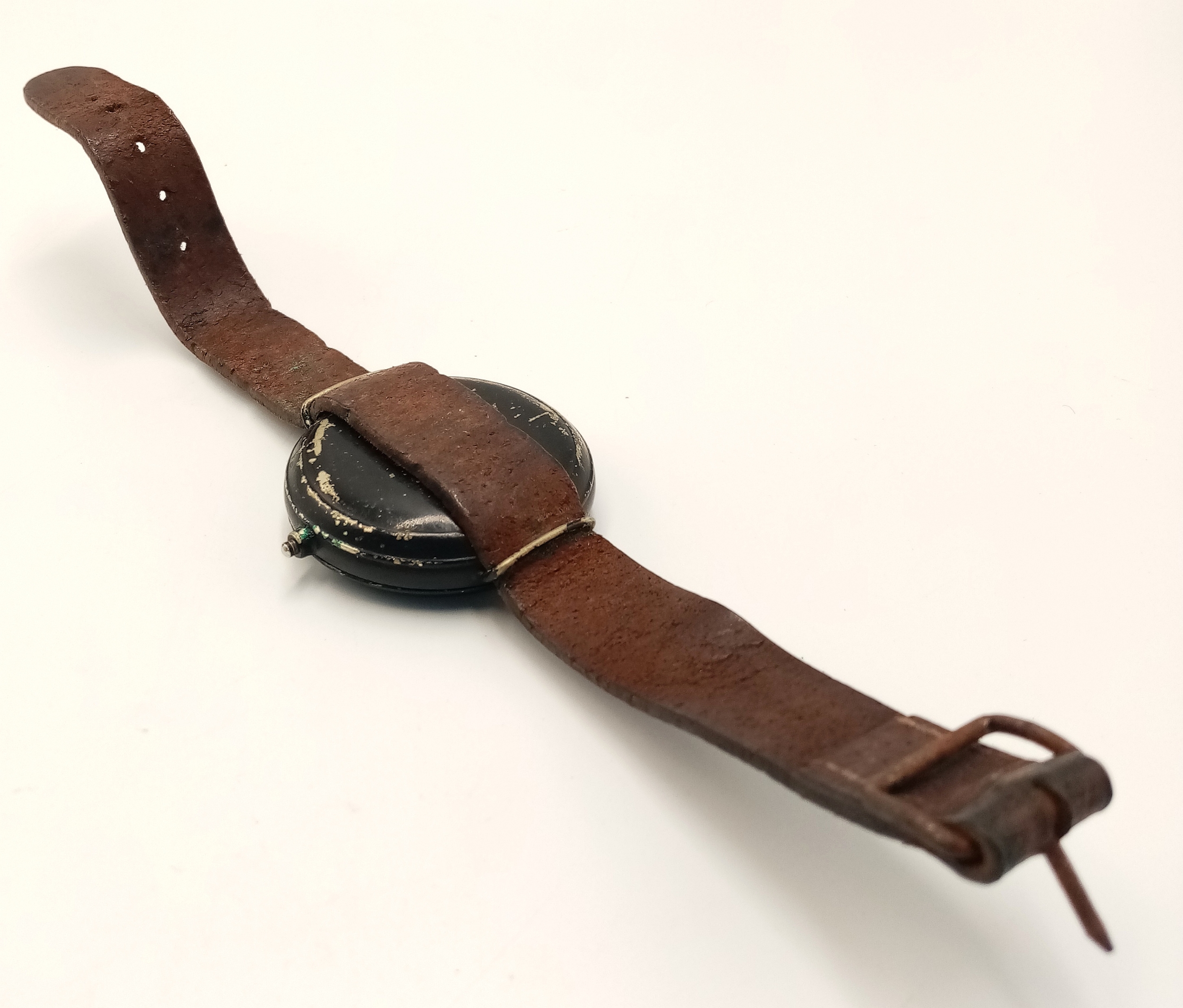 A WW2 SOE-OSS Wrist Compass. The canvas strap has been replaced with a leather one.