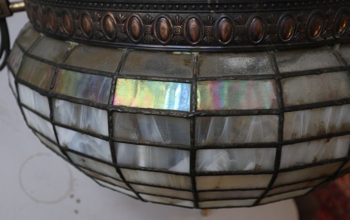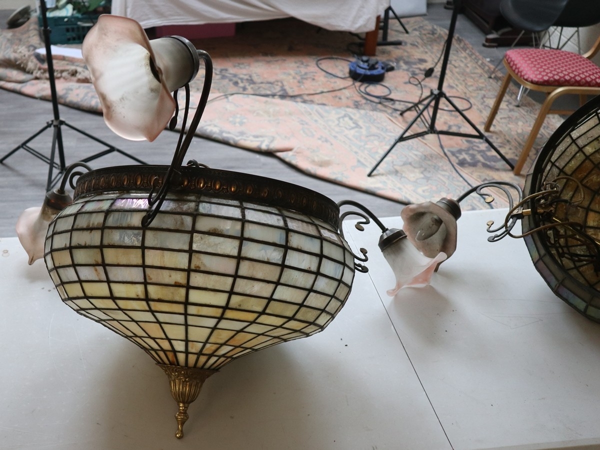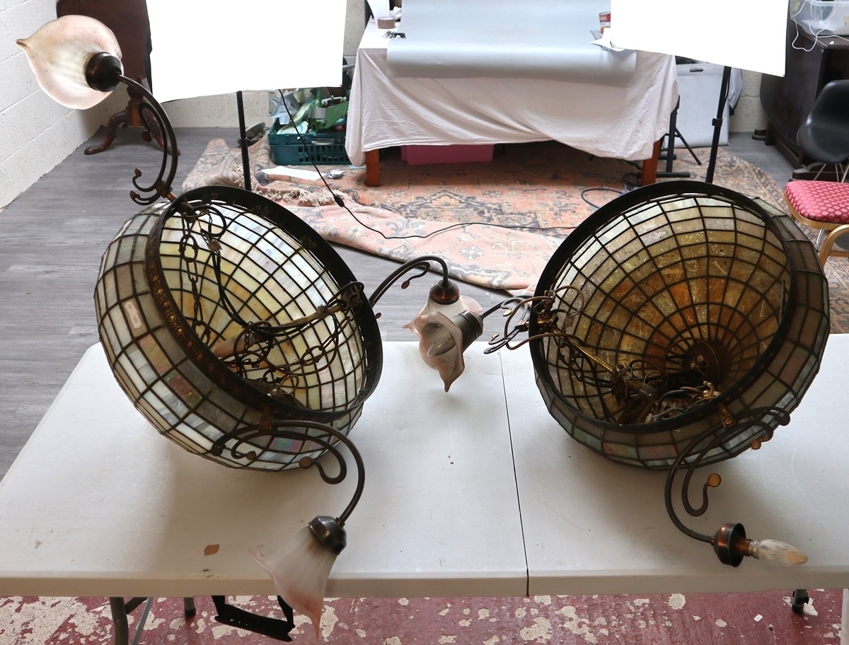 Pair of large Tiffany style teardrop dome ceiling lights