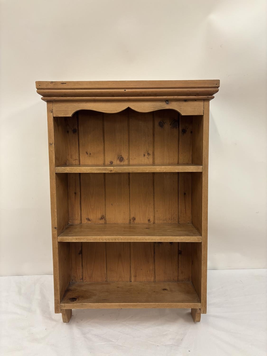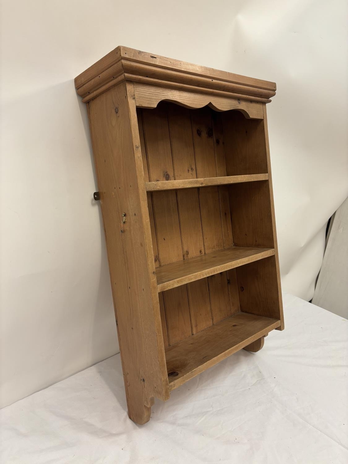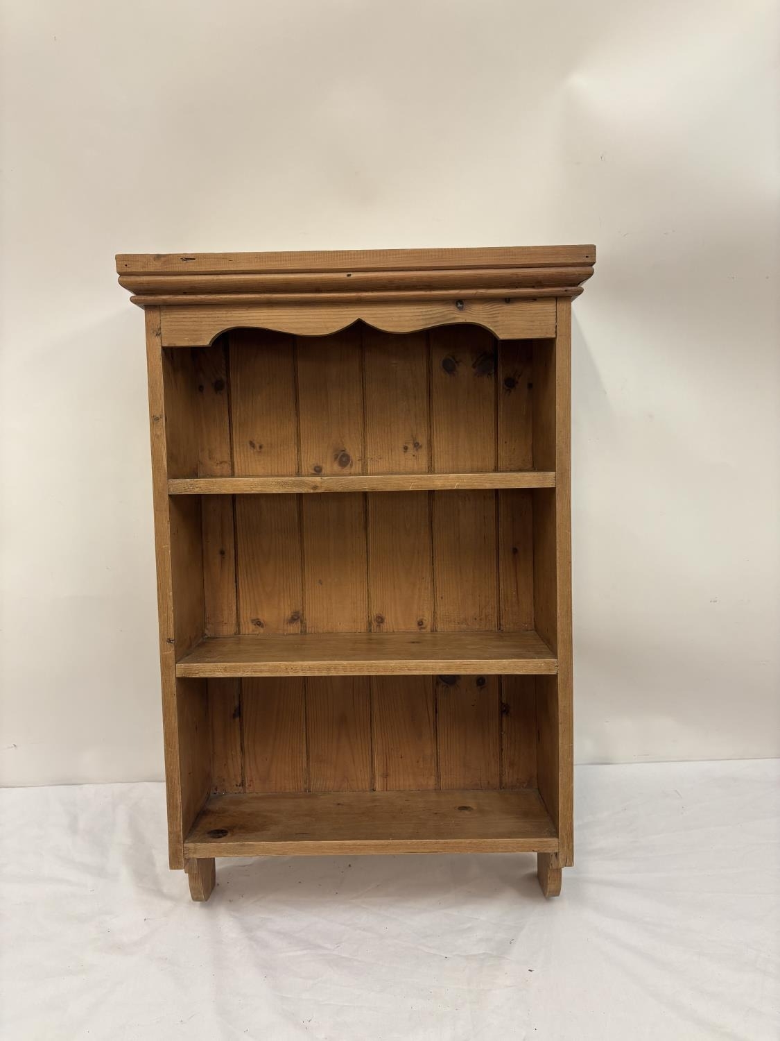 Hanging pine wall shelves. H. 80cm, W. 52cm, D. 18cm approx.