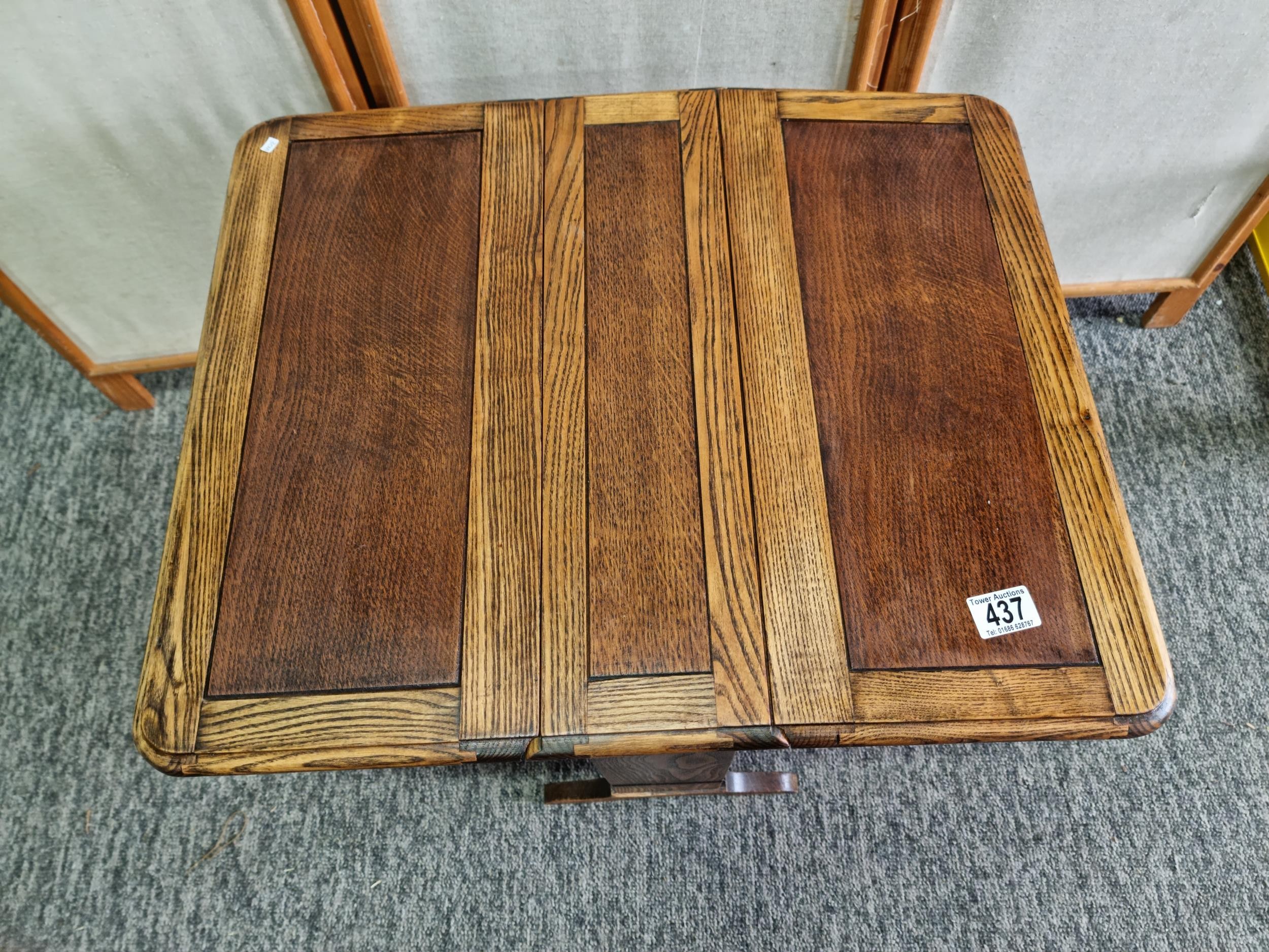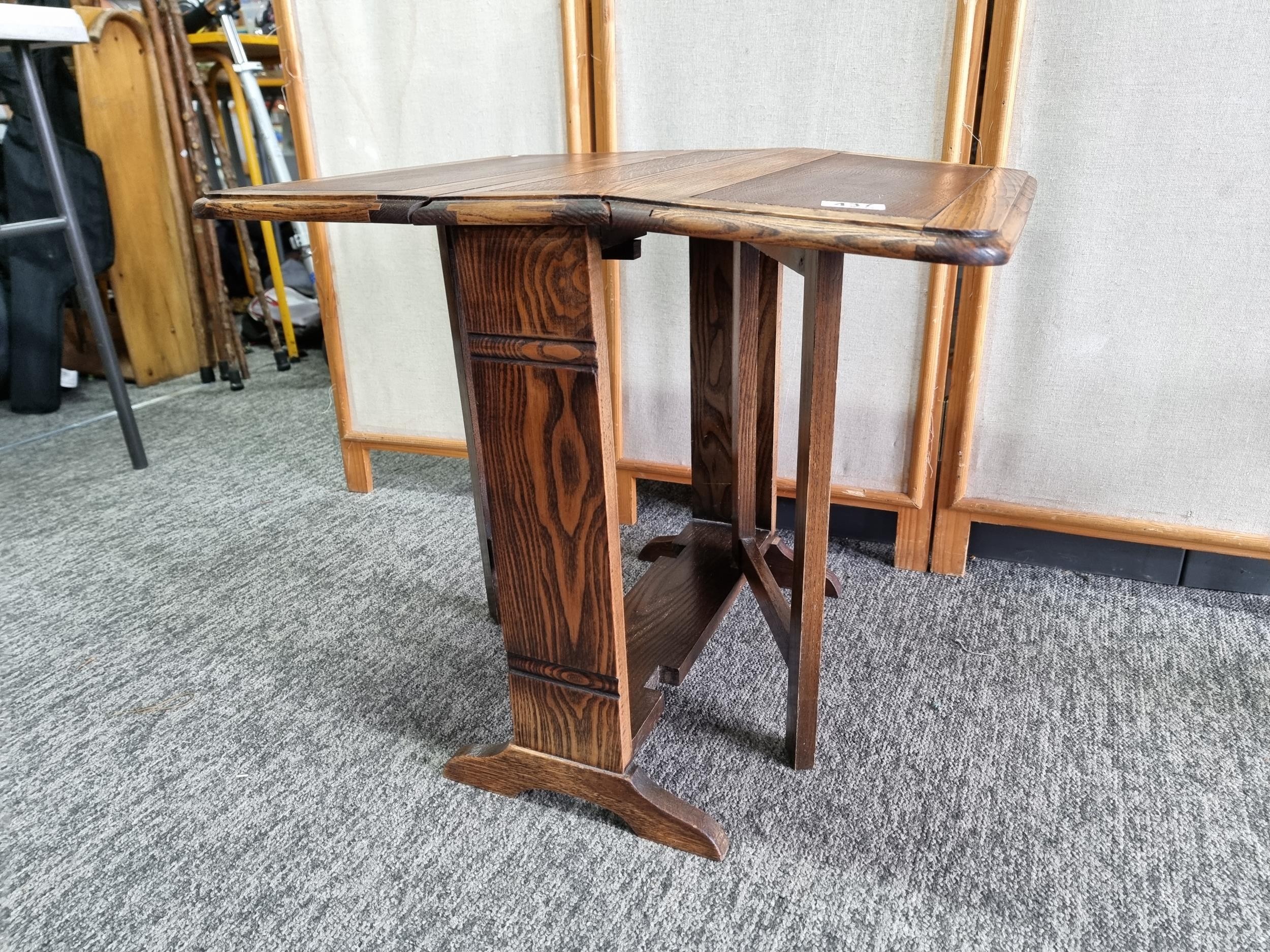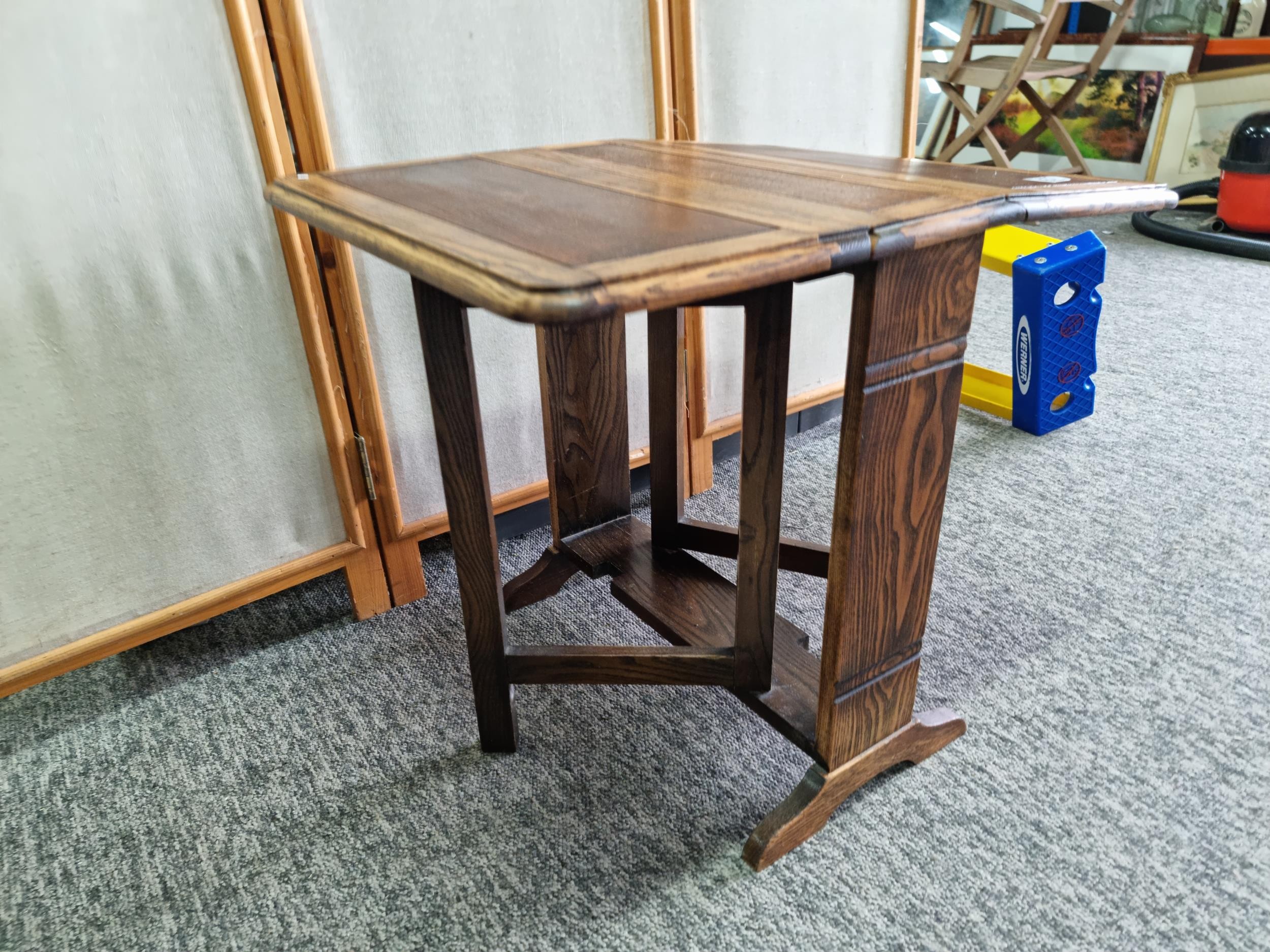 Good quality solid oak small drop leaf side table in good looked after condition presenting good grain throughout the table. Measures 52cm High, length of 61cm when leaves are up, when leaves are down the length is 15cm. The depth of the table is 49.5cm