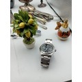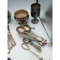 A box of odds. To include Silver plate, glass paper weight, cutlery, Lorus men's wrist watch, etc...