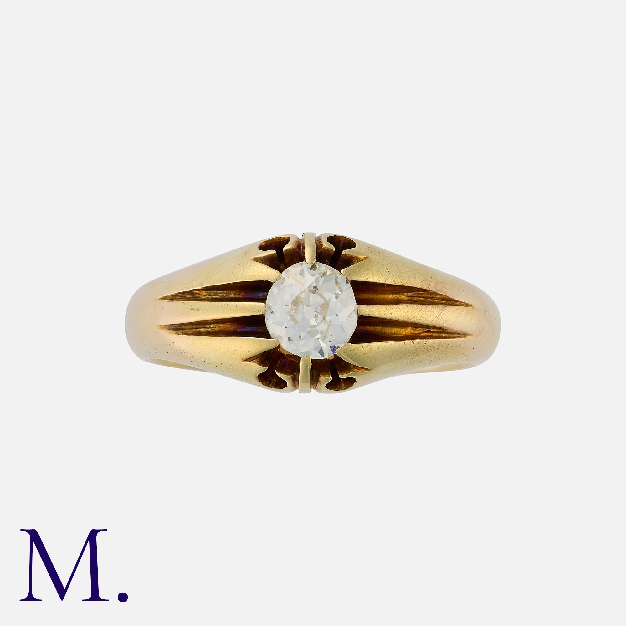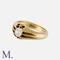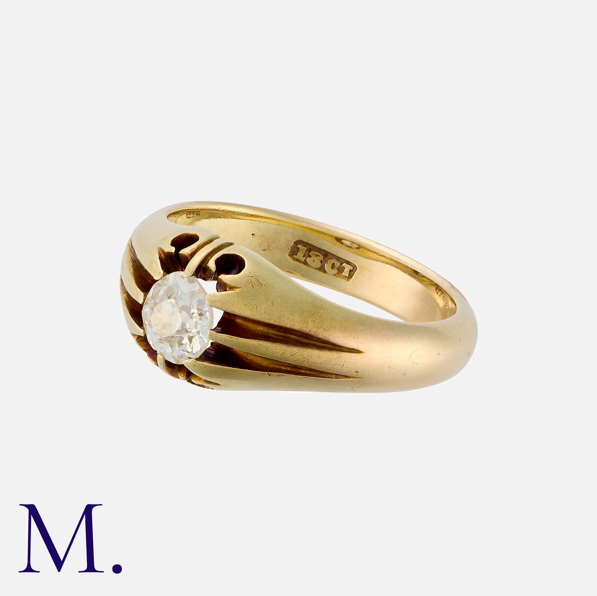 A Diamond Gypsy Ring in 18 carat yellow gold, set with an old cut diamond of approximately 0.50 carats. Marked 18ct.