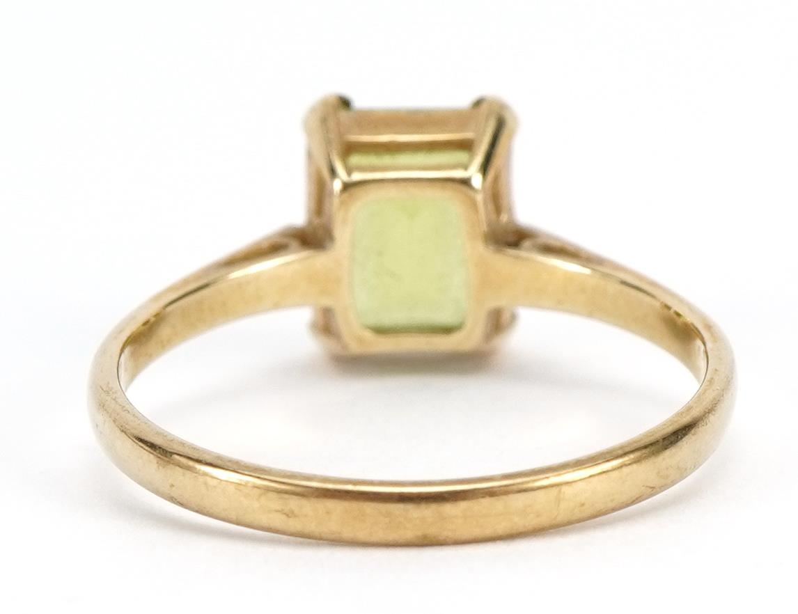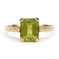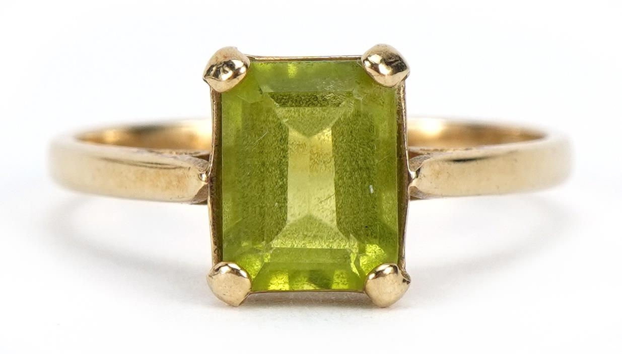 9ct gold peridot solitaire ring, size O, 1.9g