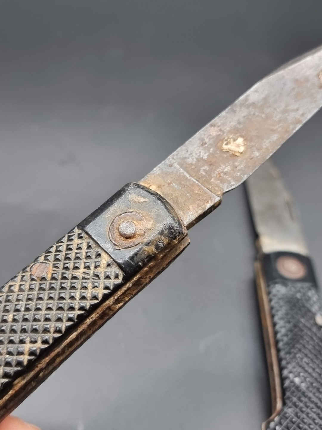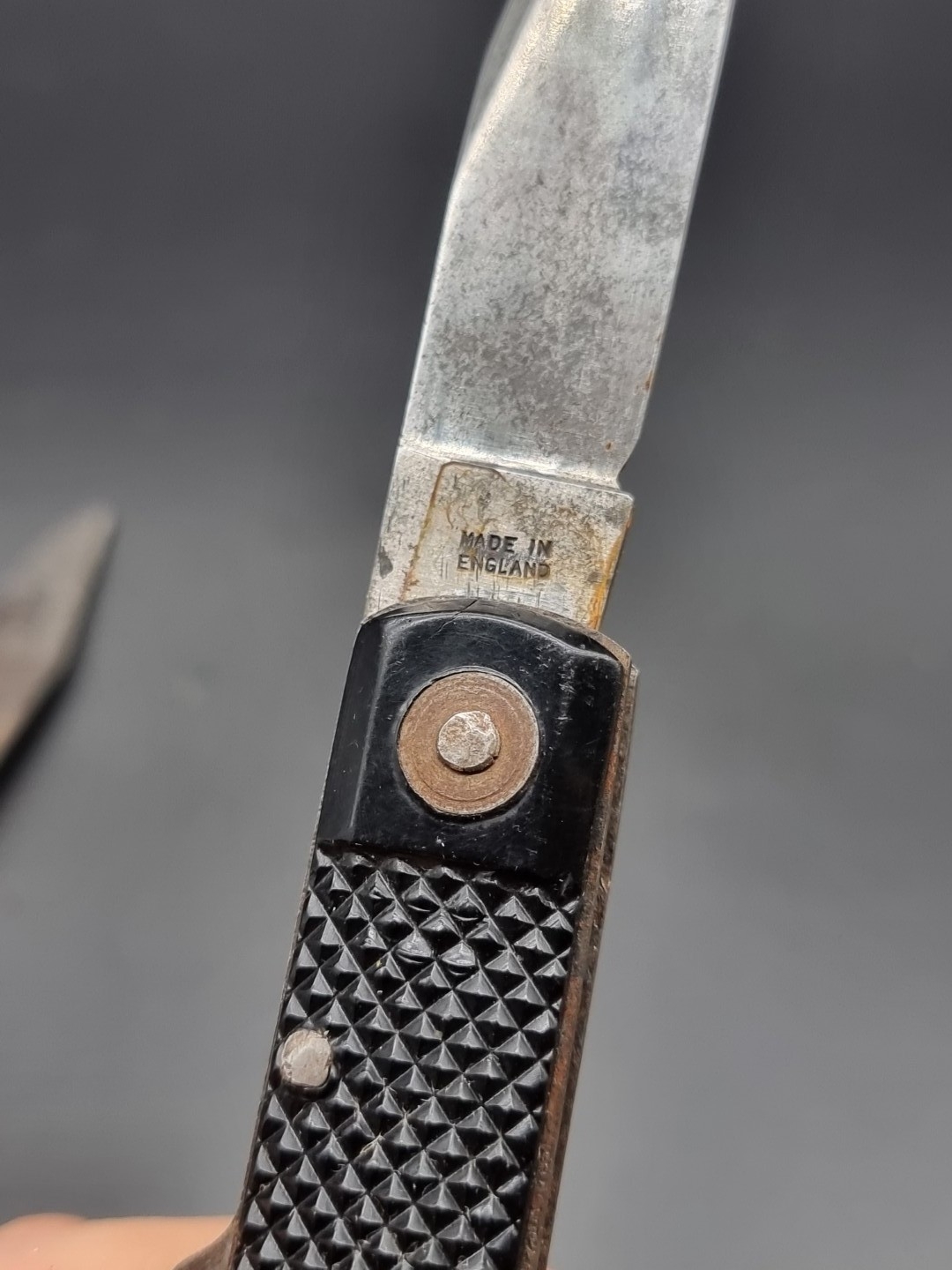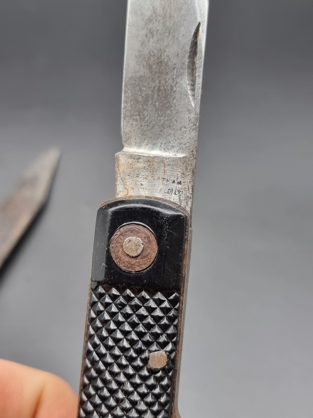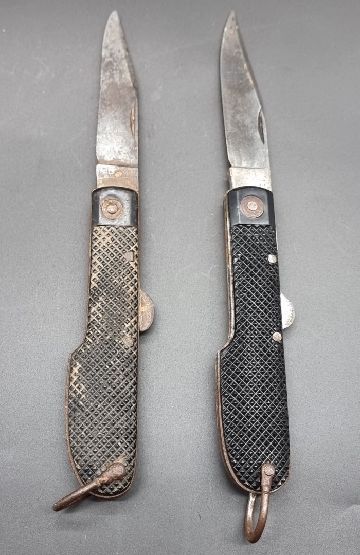 Two British Airborne forces utility knives, by H Rowbotham & Co, Sheffield, with 8.5cm folding blades. (2)