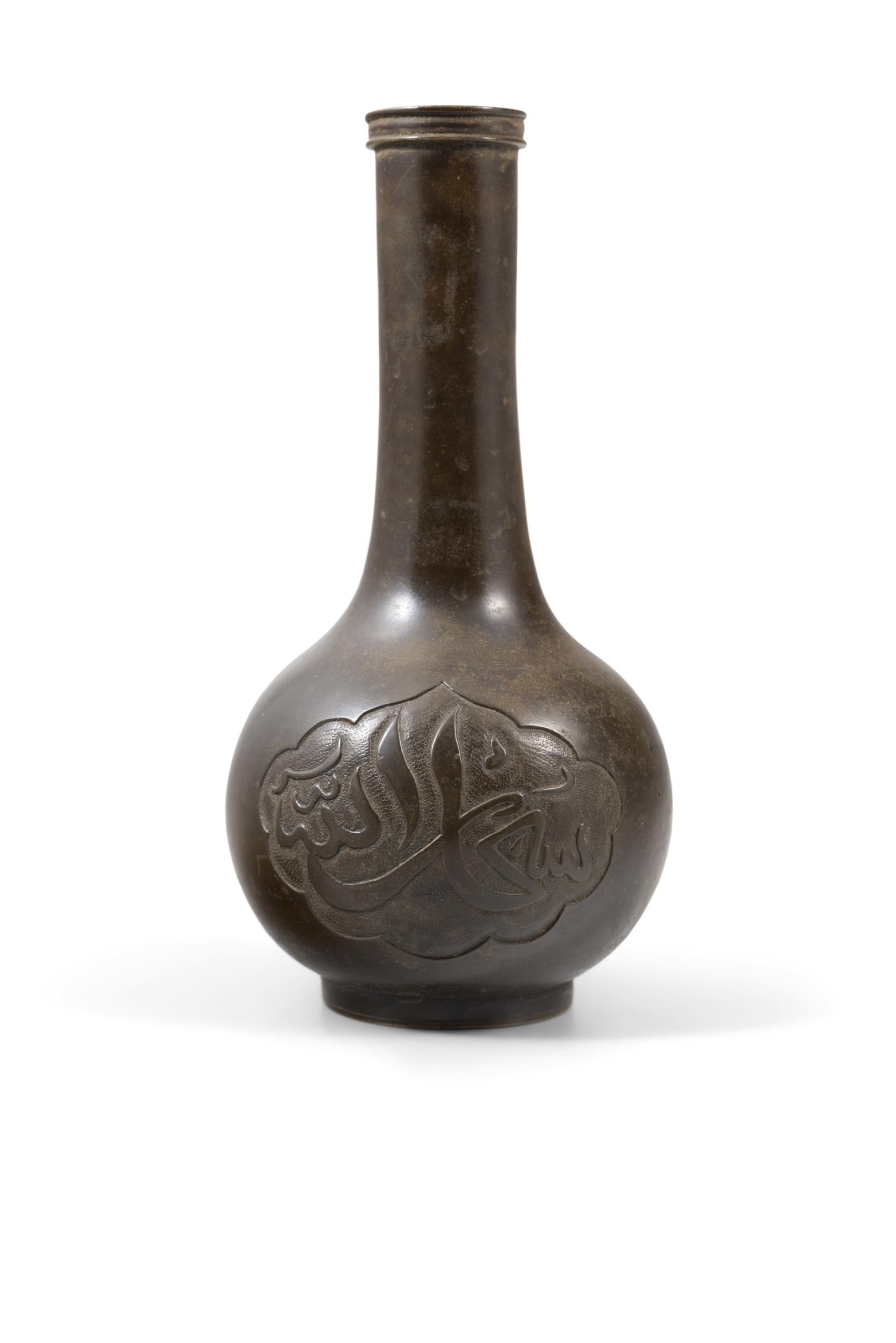 A CHINESE BRONZE VASE WITH ARABIC INSCRIPTION ON A GRANULATED GOURD ? ???????? China, Ming dynasty H: 17.2cm