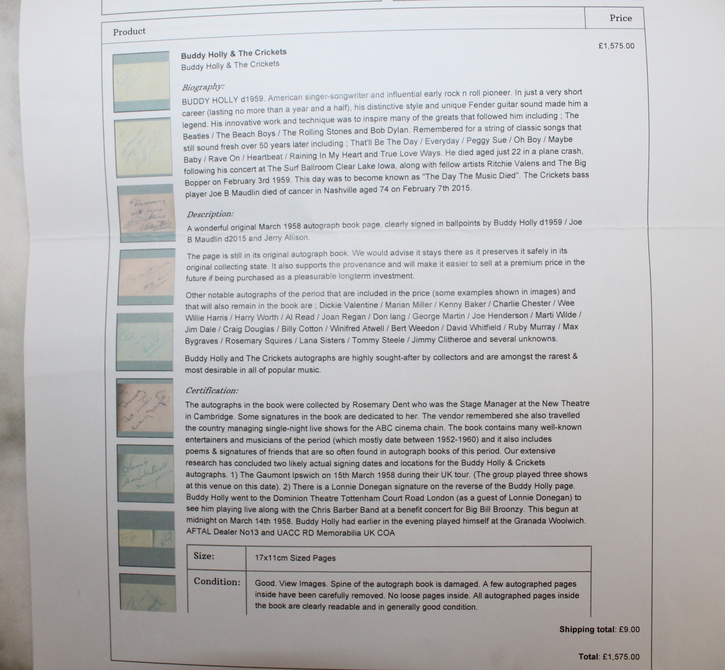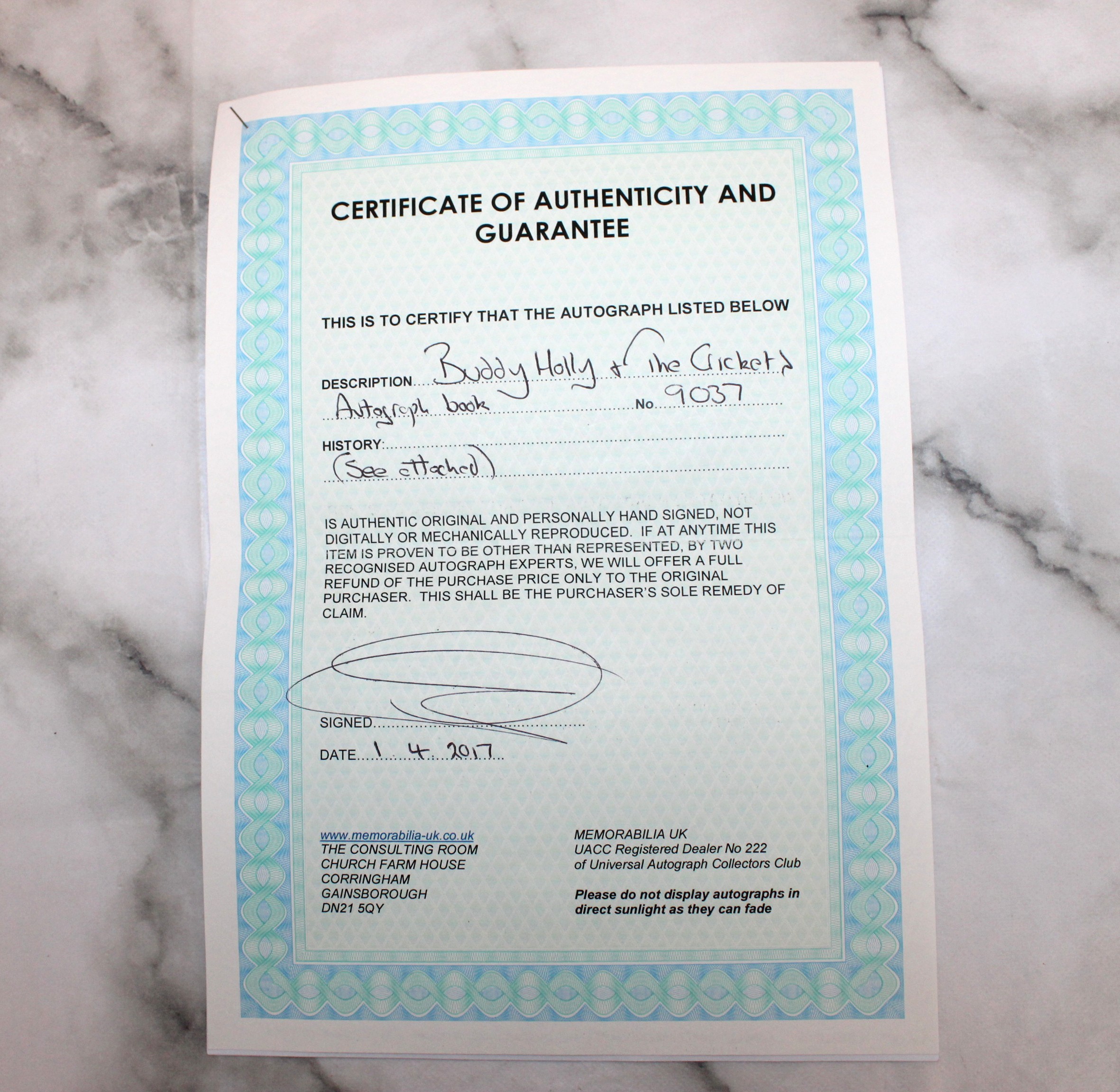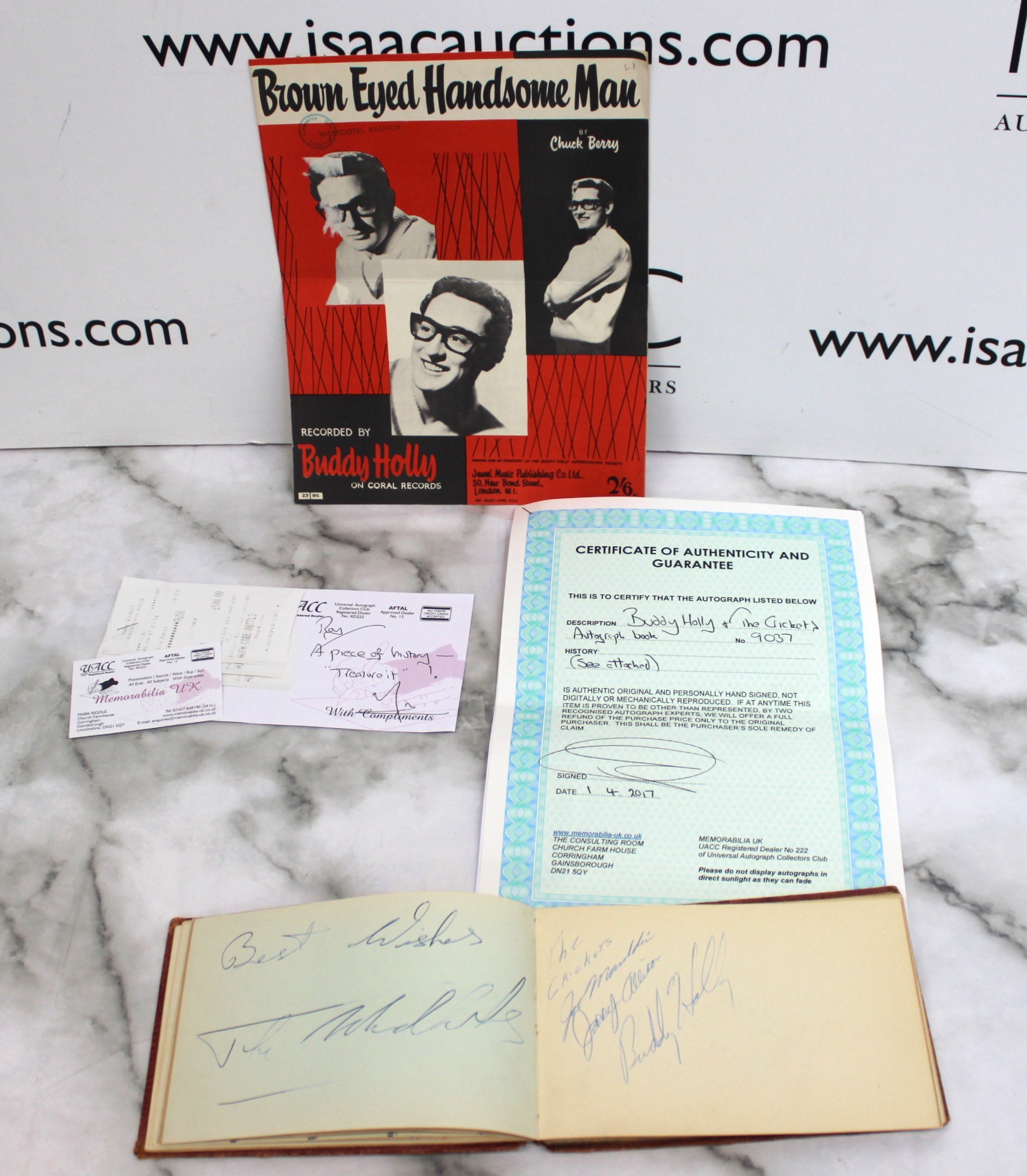 A Collectable Rare Autograph Of Buddy Holly With A Certificate Of Authenticity In: Sheet Music To A Brown Eyed Handsome Mam Etc See Photos
