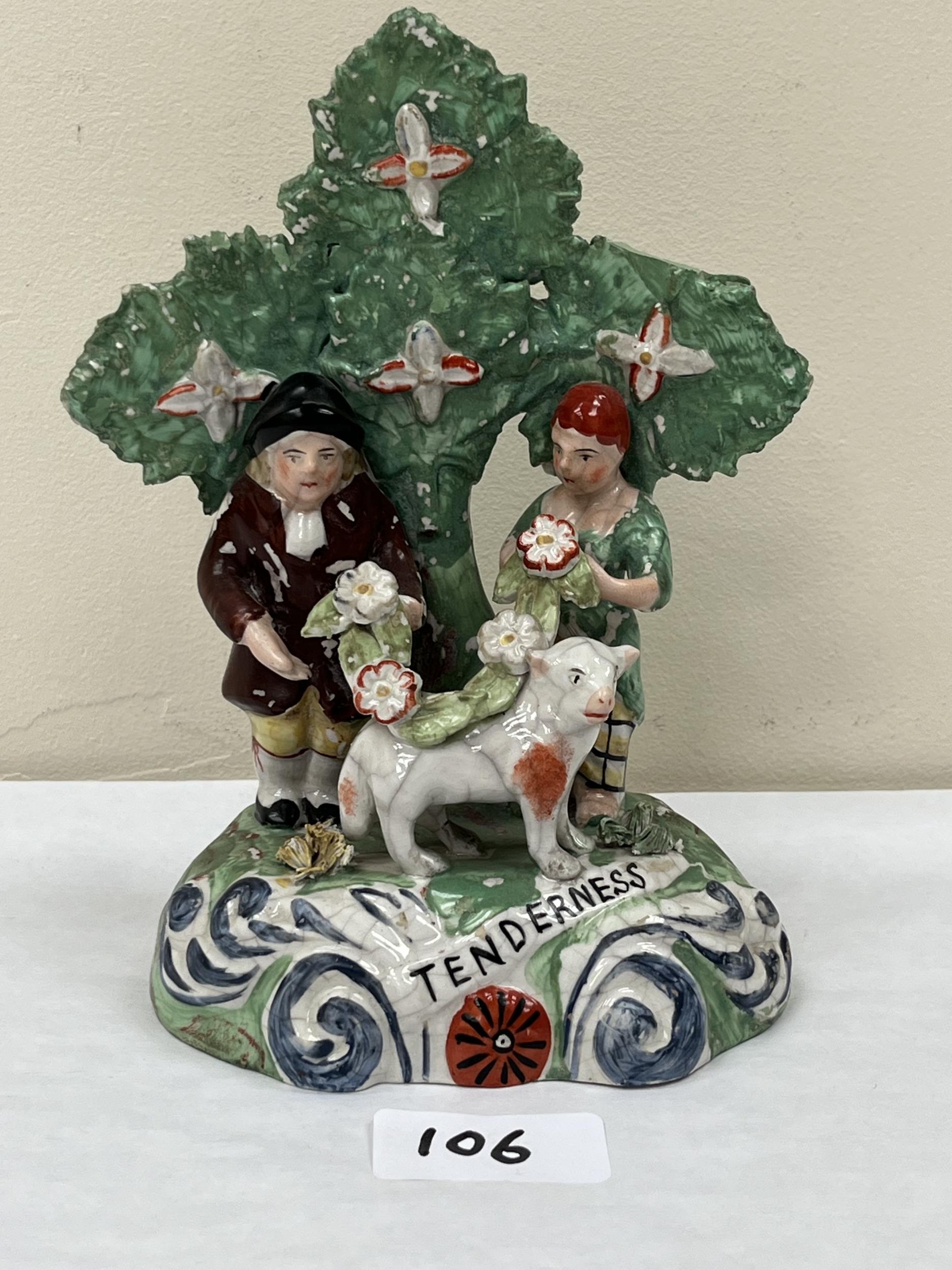A 19th century Staffordshire Walton bocage group, emblematic of Tenderness. 7' high