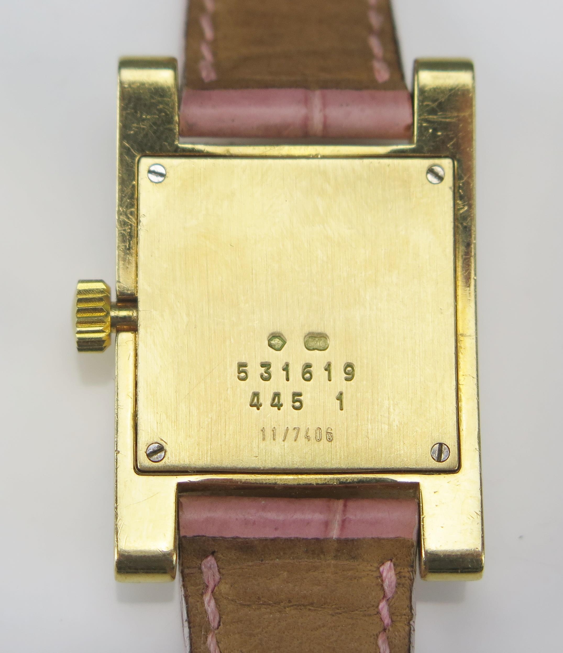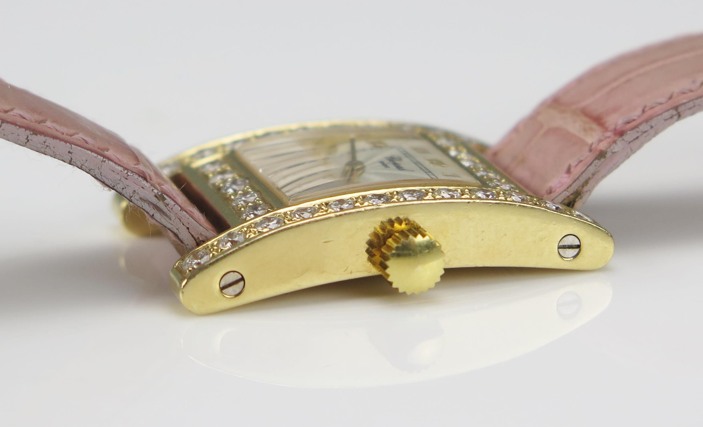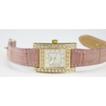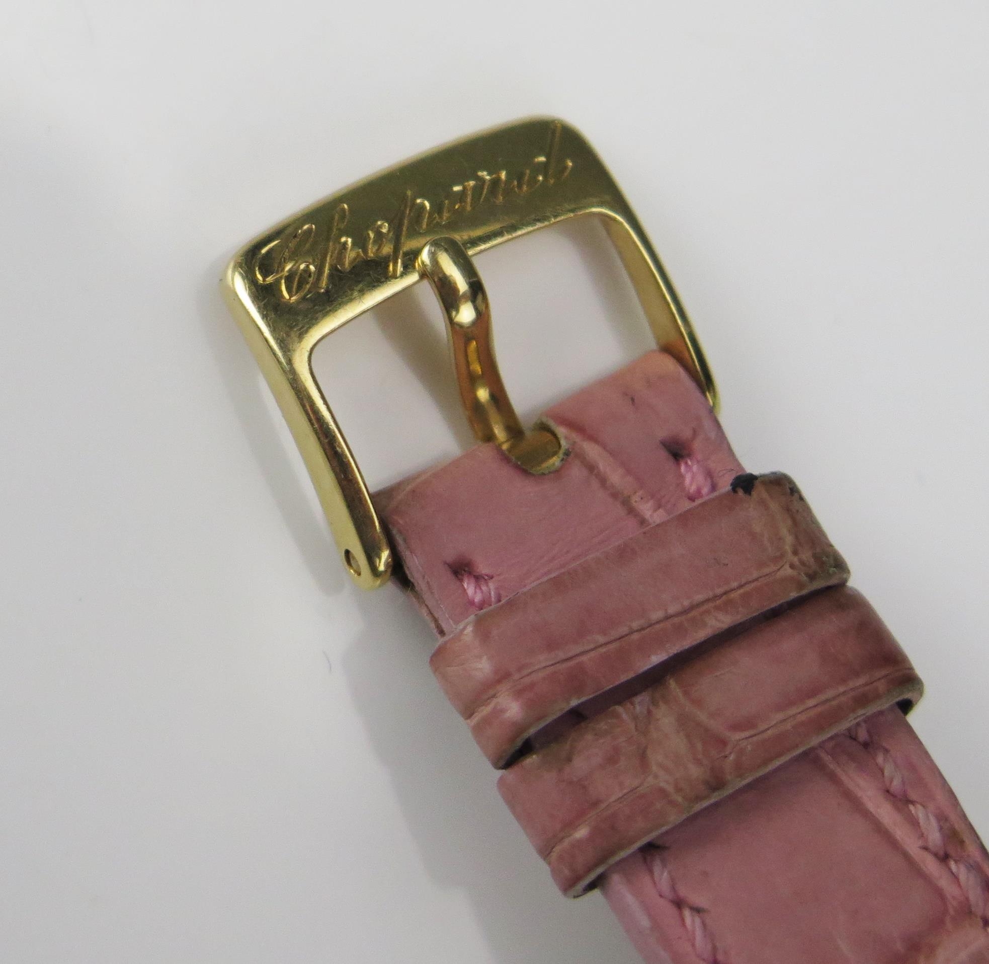 A Chopard 18ct Gold and Diamond Lady's Wristwatch set with c. 3.5ct of diamonds, c. 25.2x24.4mm, case no. 531619 445 1 11/7406 and on a Chopard pink leather strap with 18ct gold clasp
