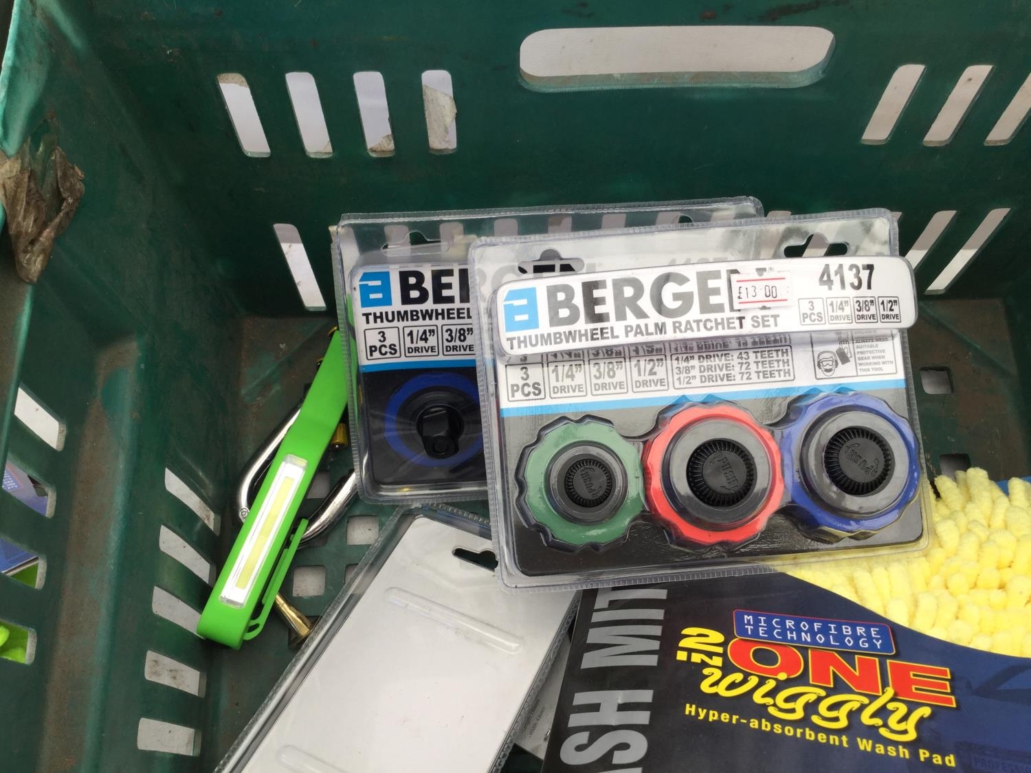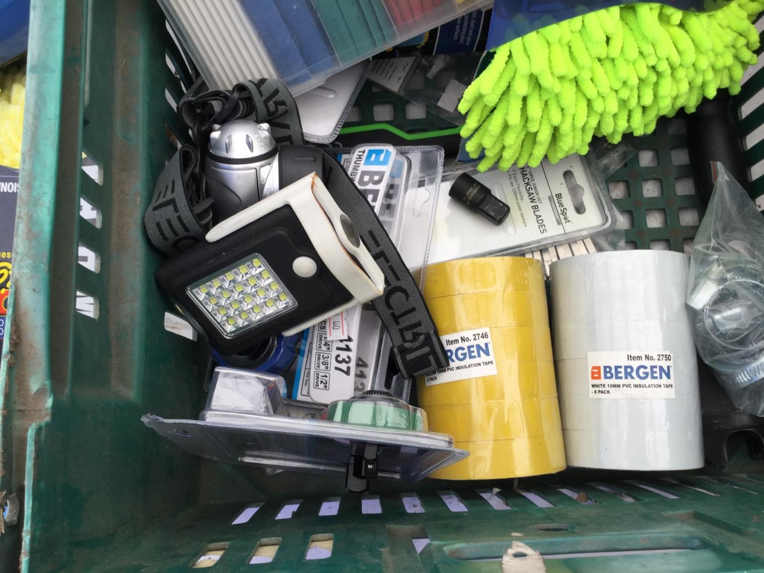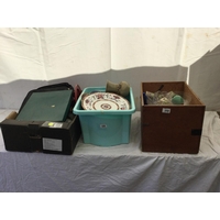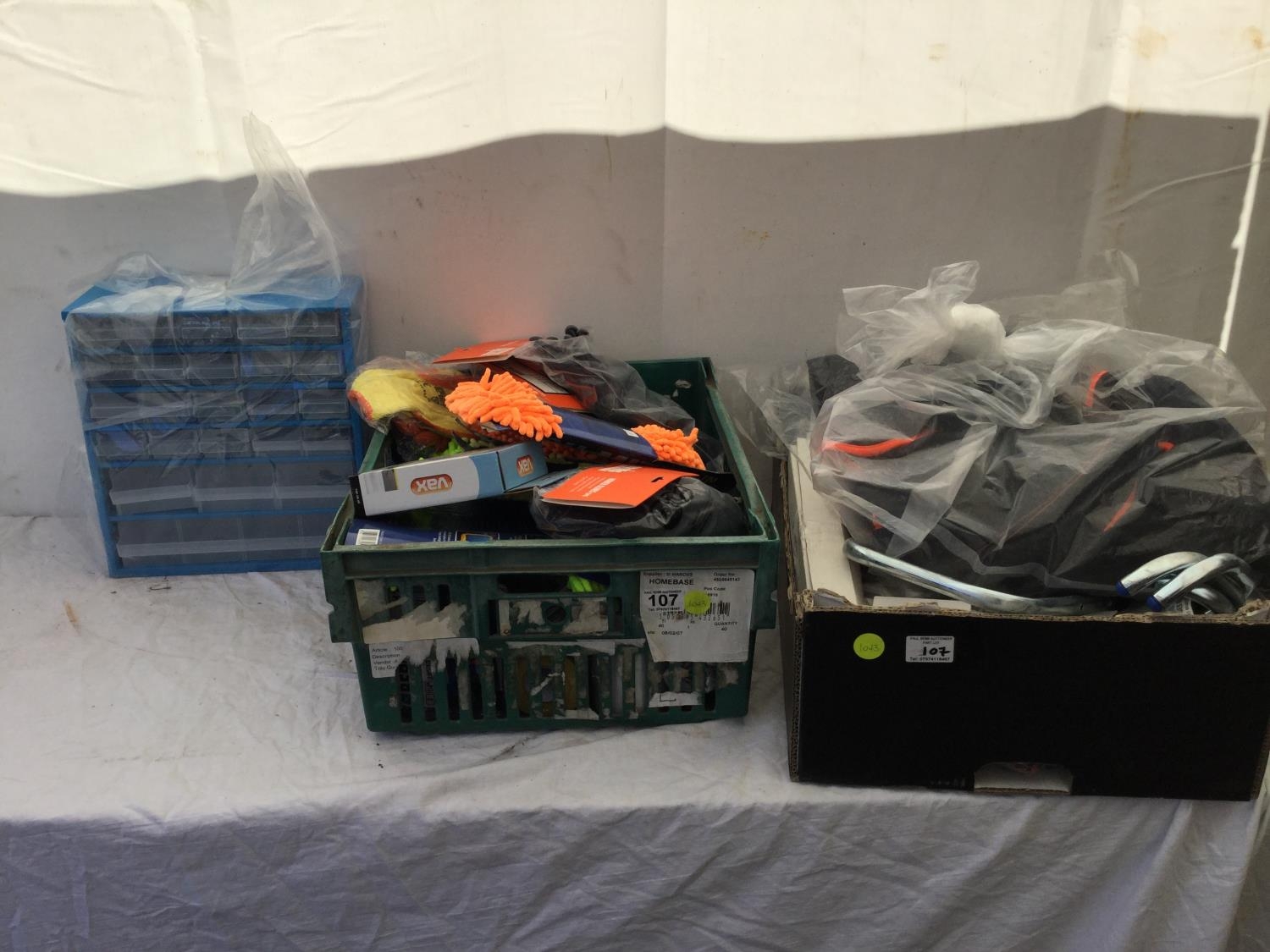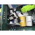 CRATE AND A BOX OF HARDWARE TO INCLUDE SCREW ORGANISER, SPONGES ETC