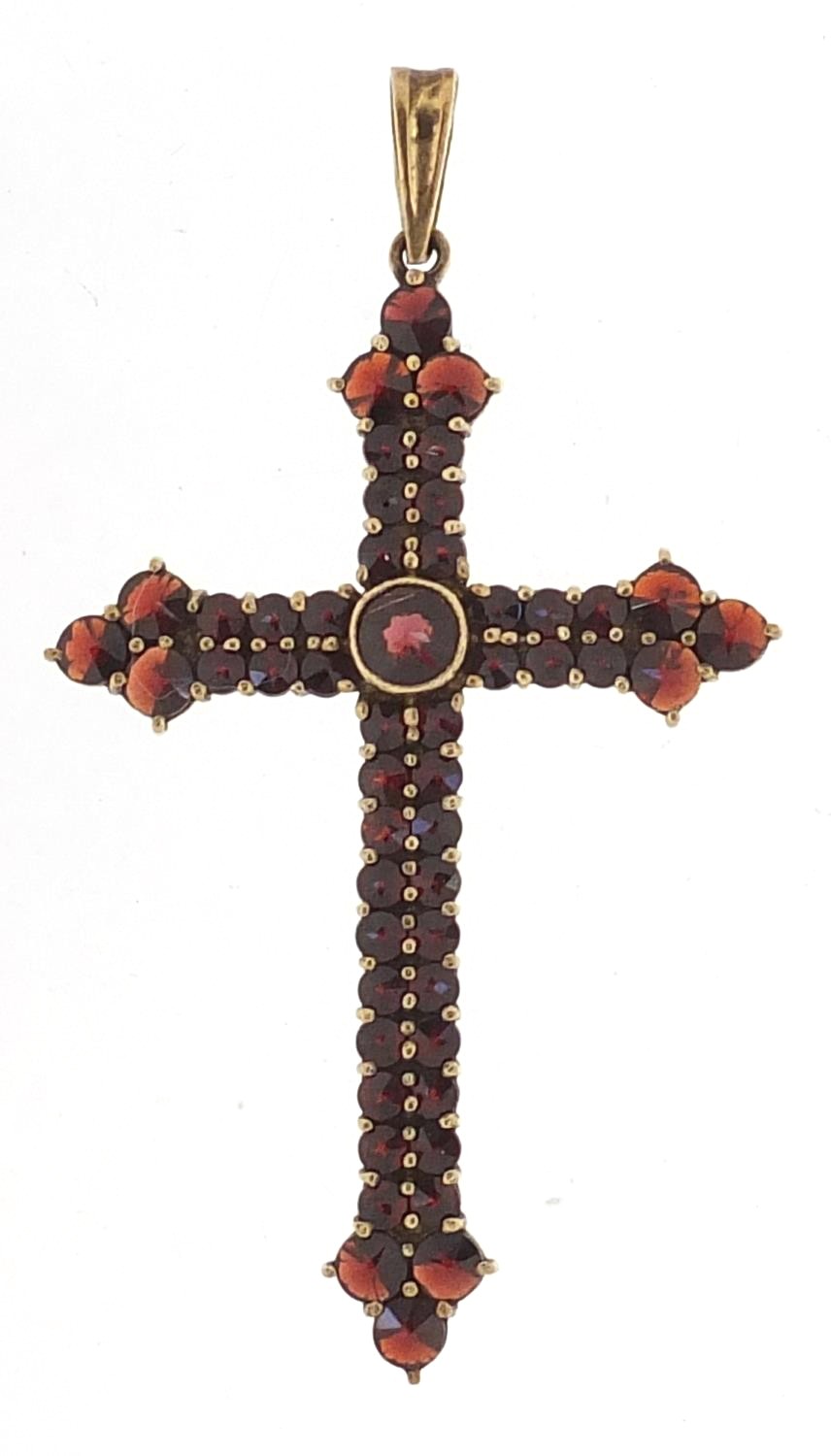 Large silver gilt garnet cross pendant, 6.5cm high, 6.0g