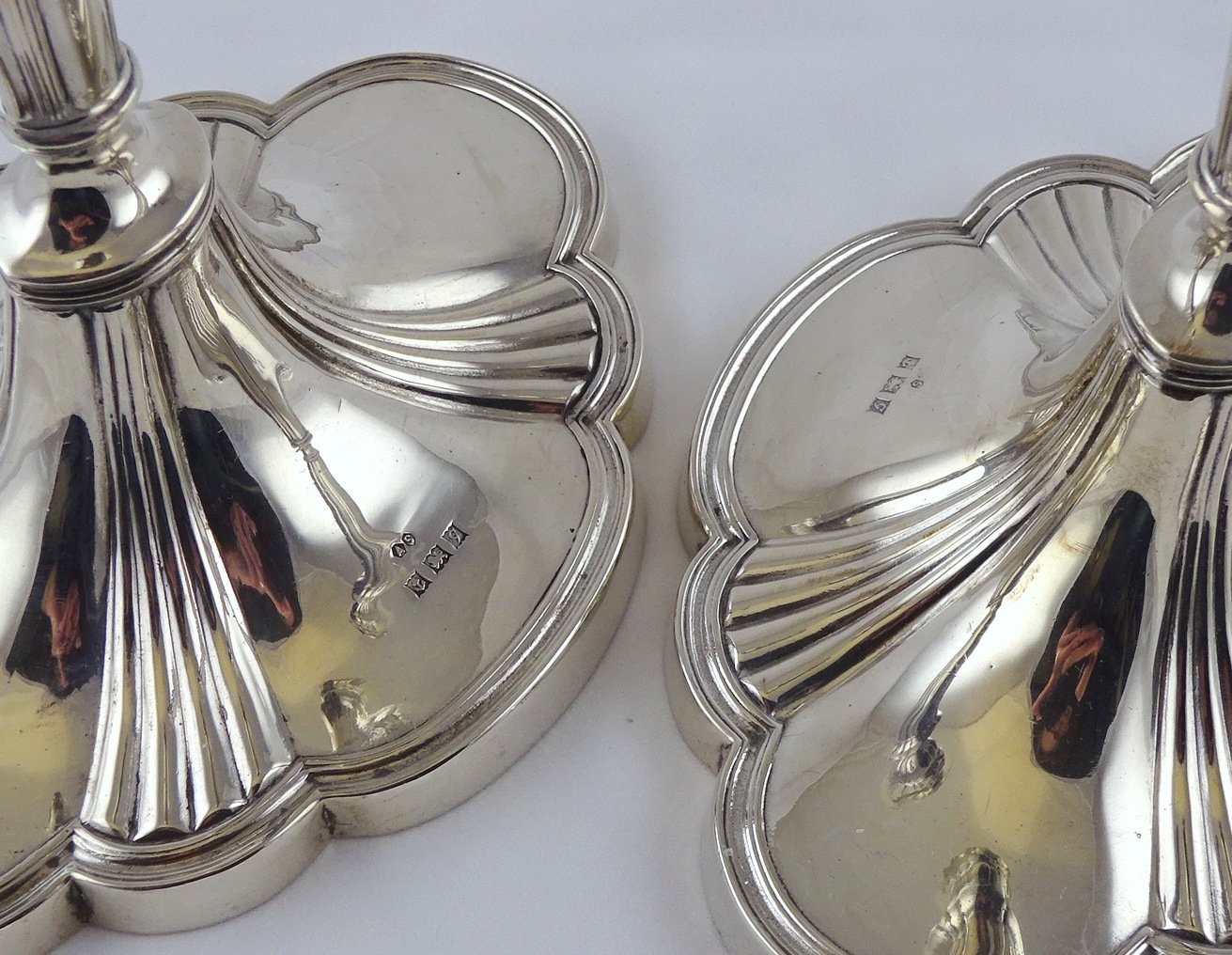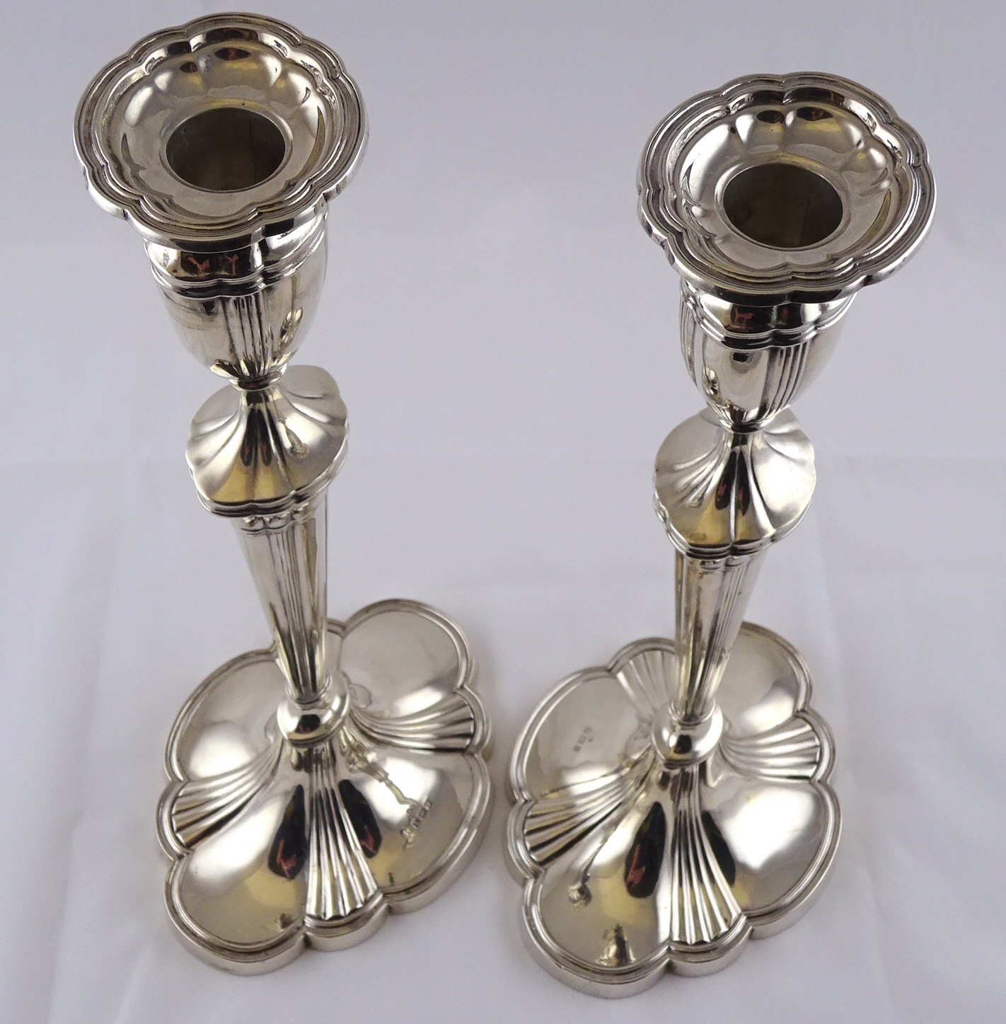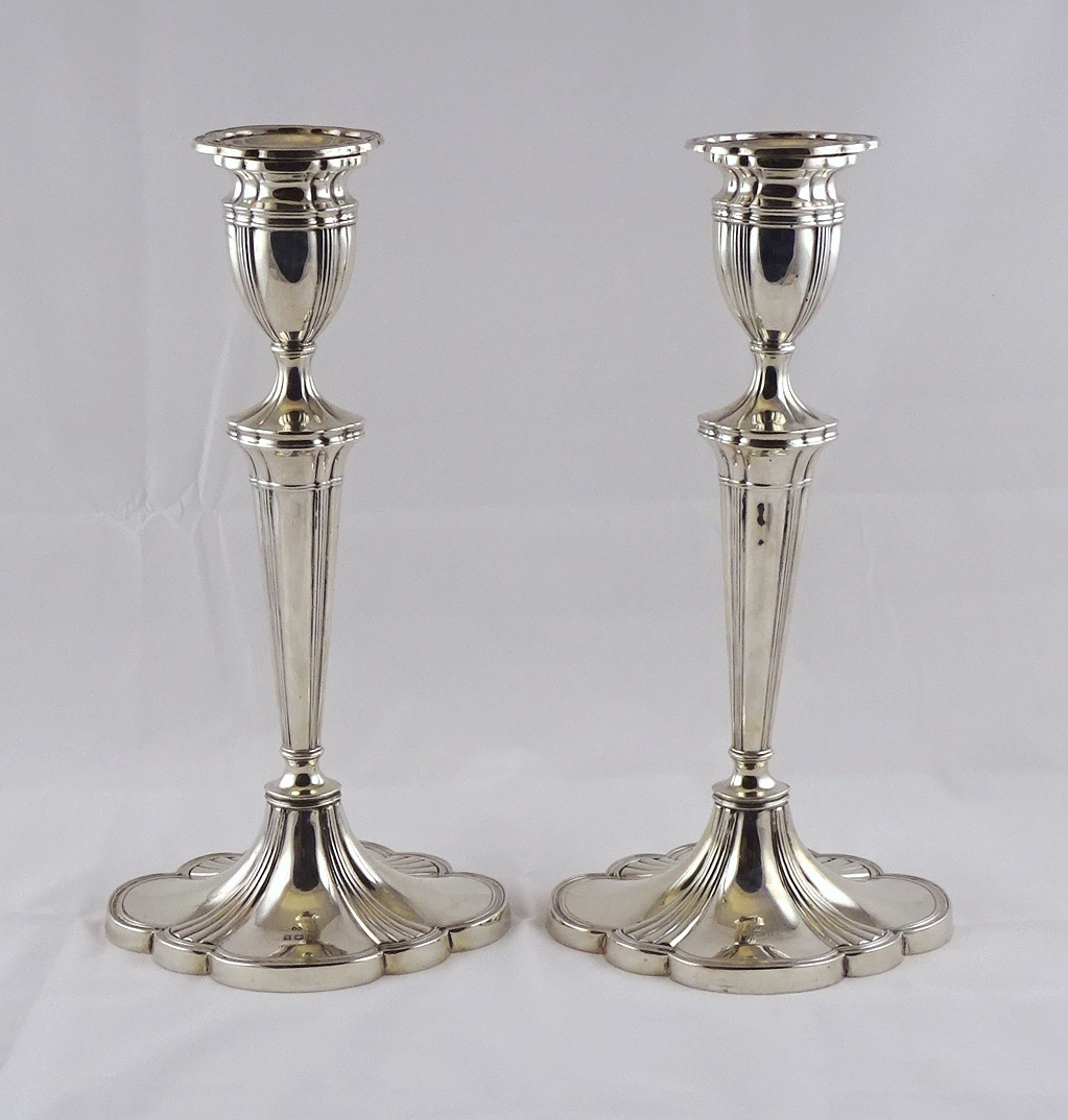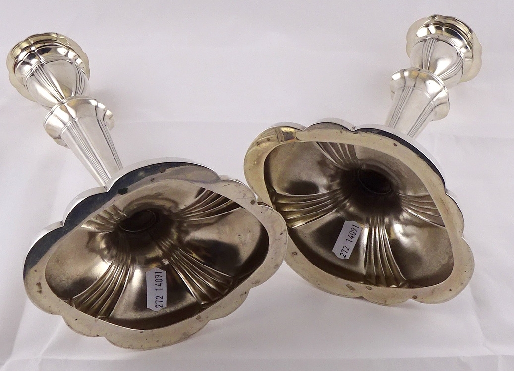 A pair of George III style hollow silver candlesticks, Birmingham 1956. 700gr / 307mm (by instruction of the family of Dame Fanny Waterman)