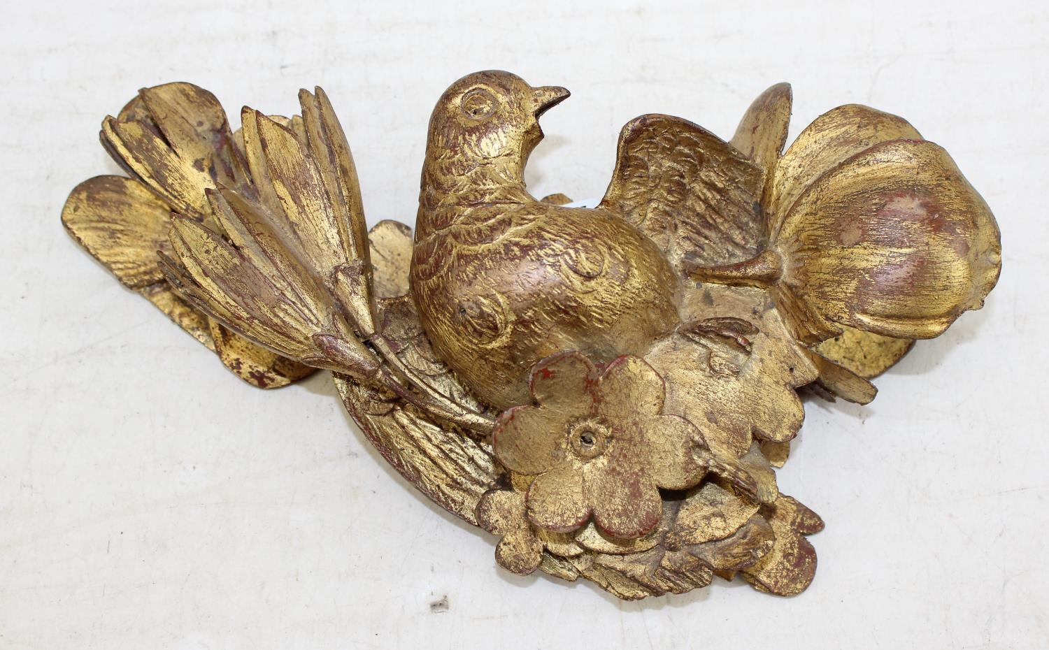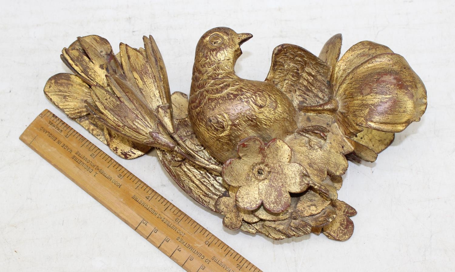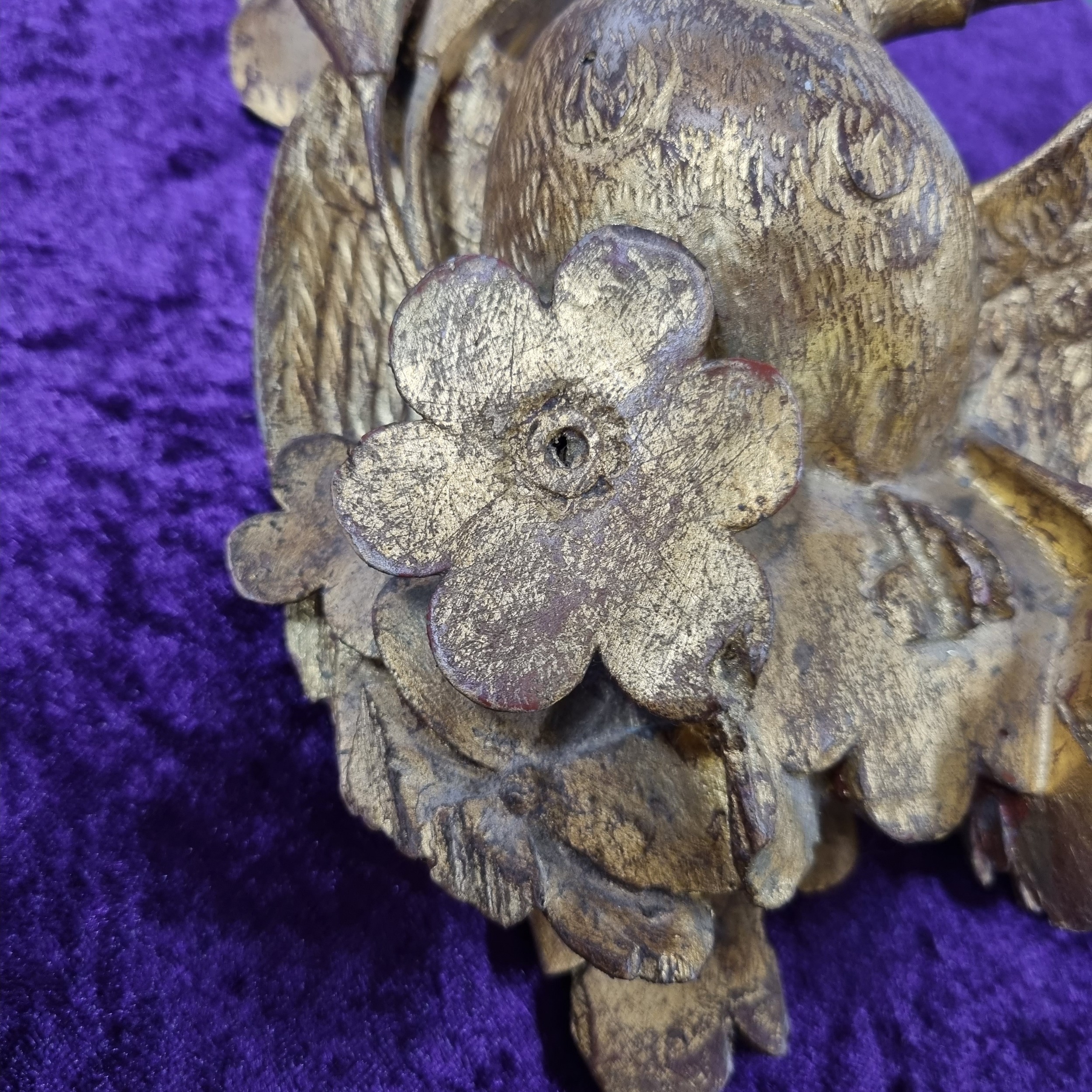 Antique gilt limewood carving of a bird amongst foliage, likely 19th century