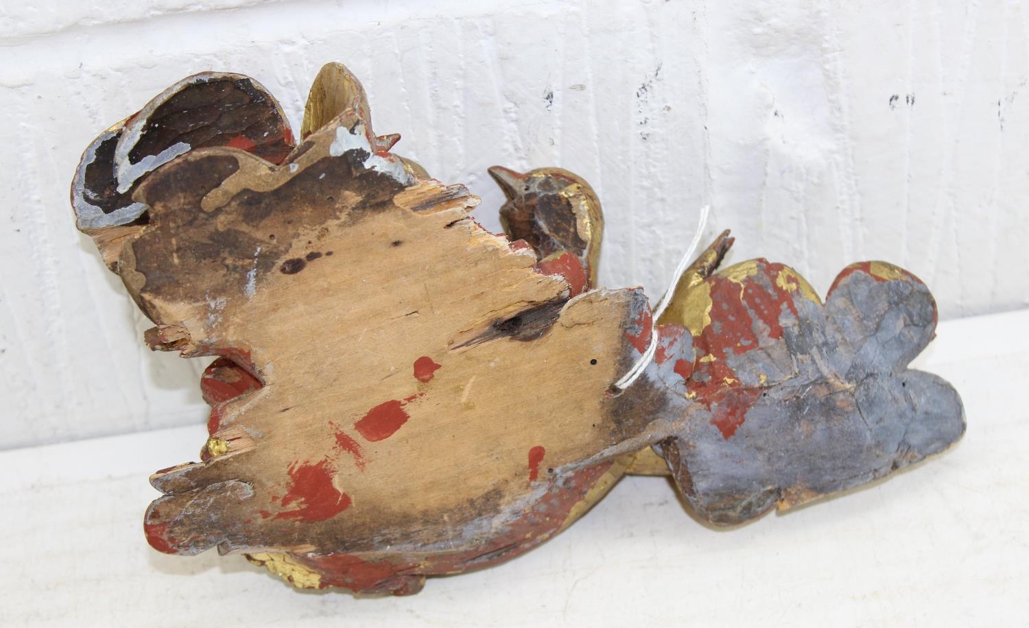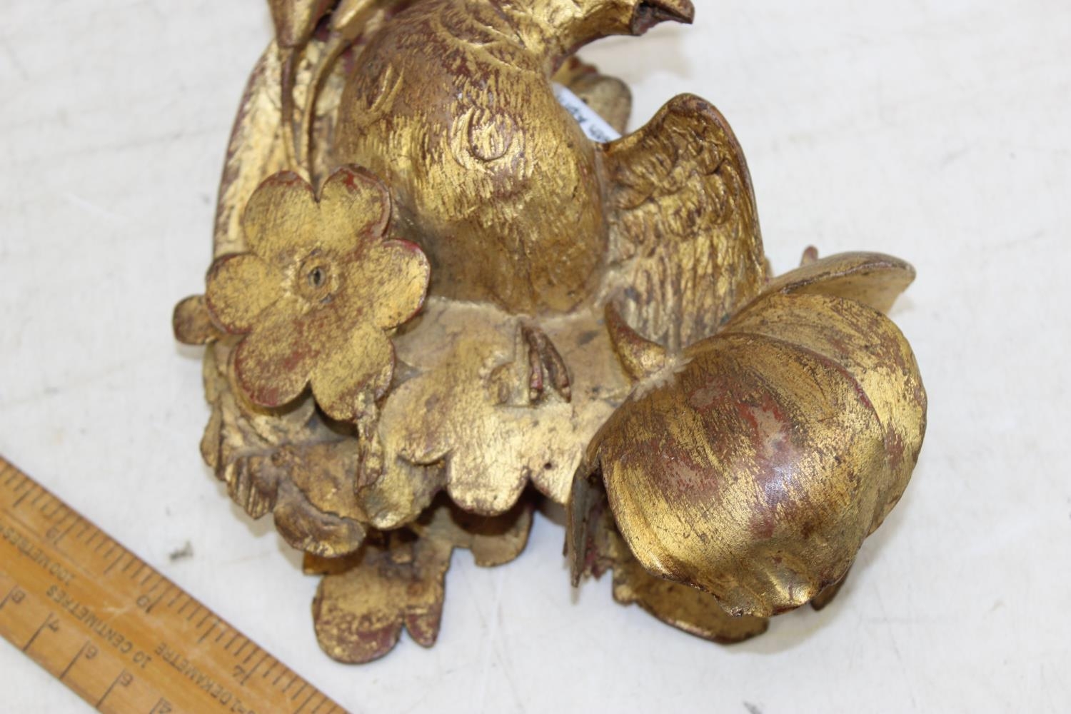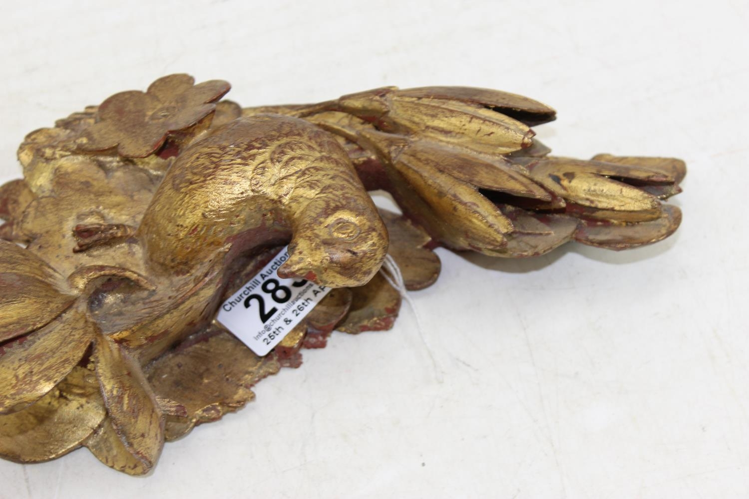 Antique gilt limewood carving of a bird amongst foliage, likely 19th century