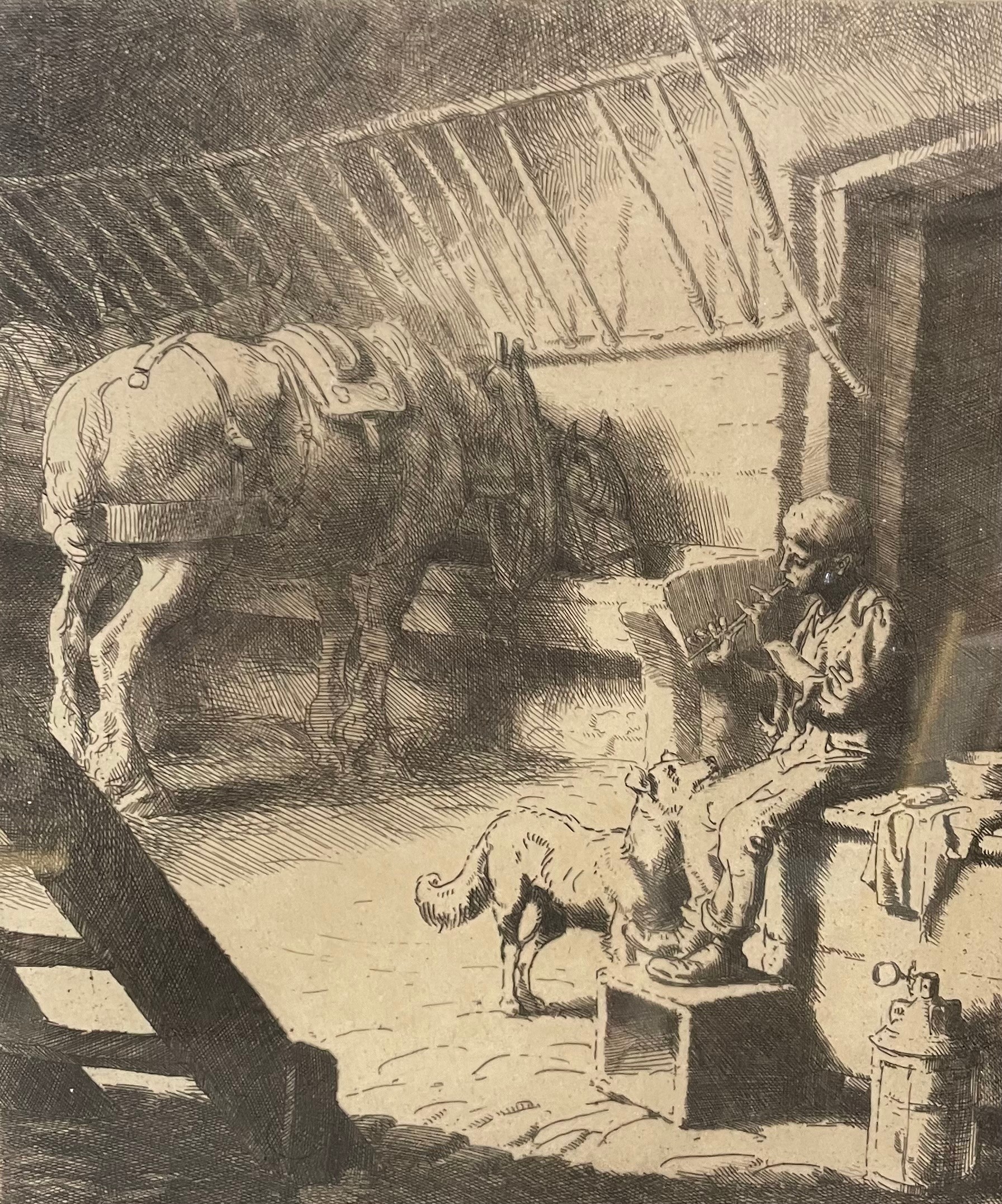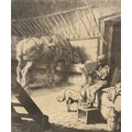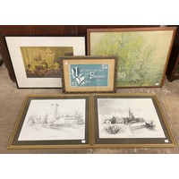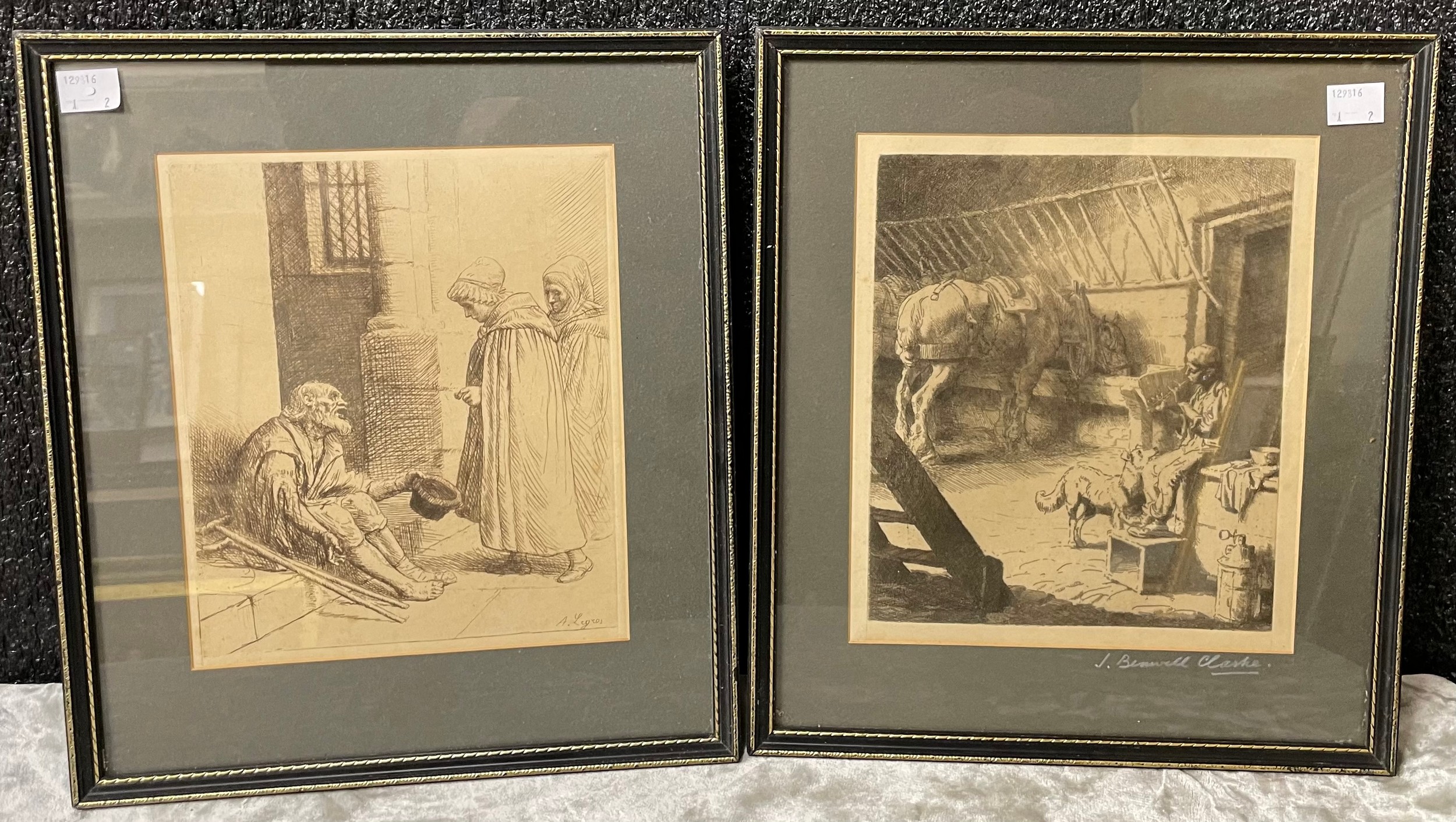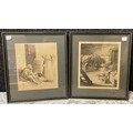 Two J. Benwell Clark engravings, Crosby Mill and Sefton Church, framed