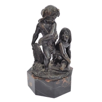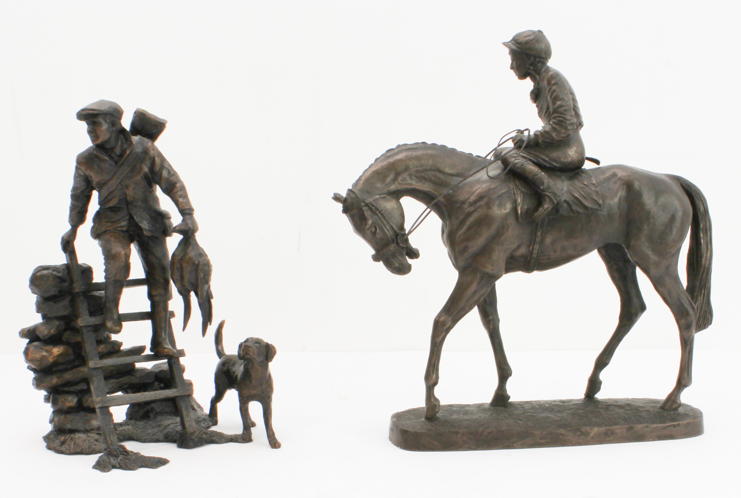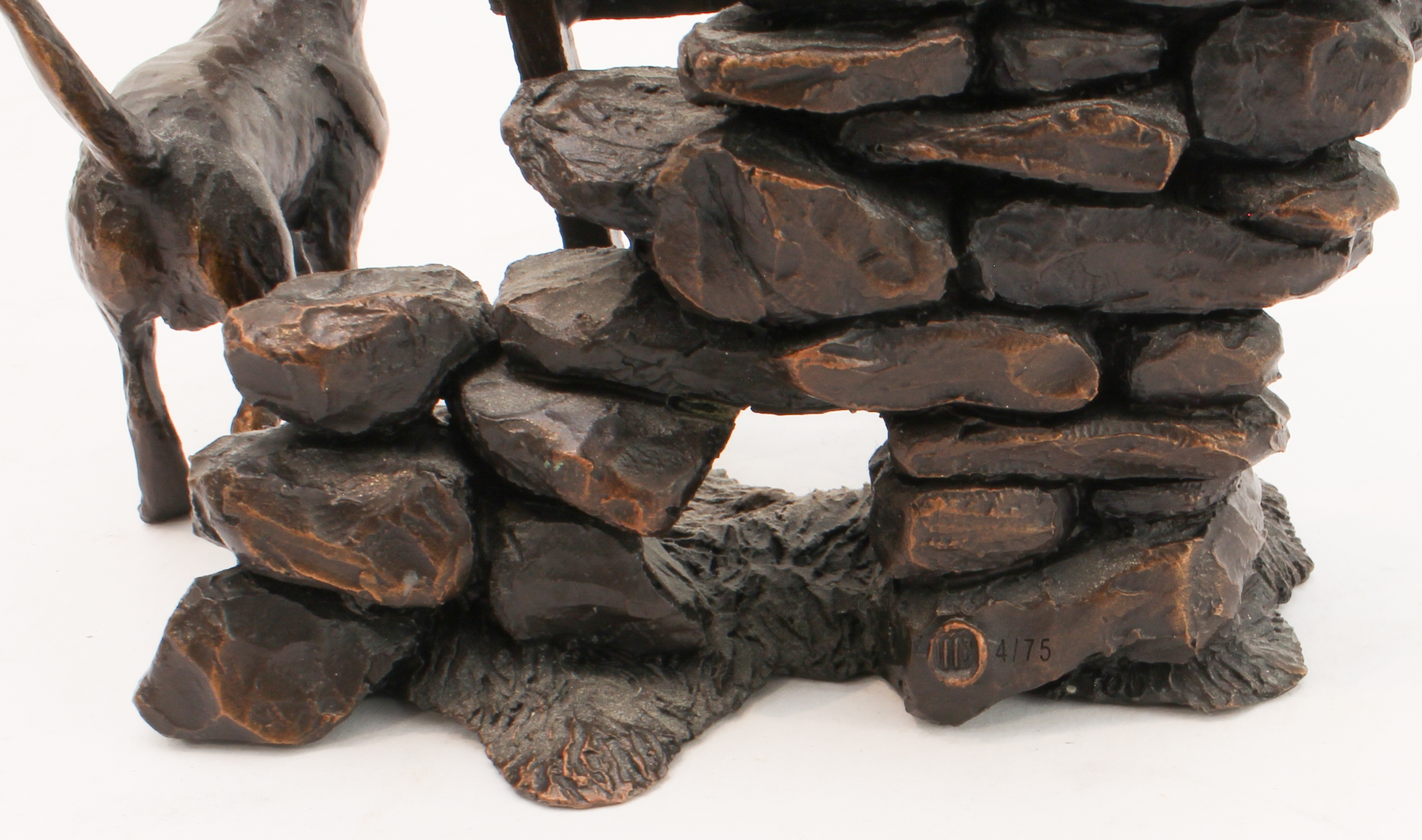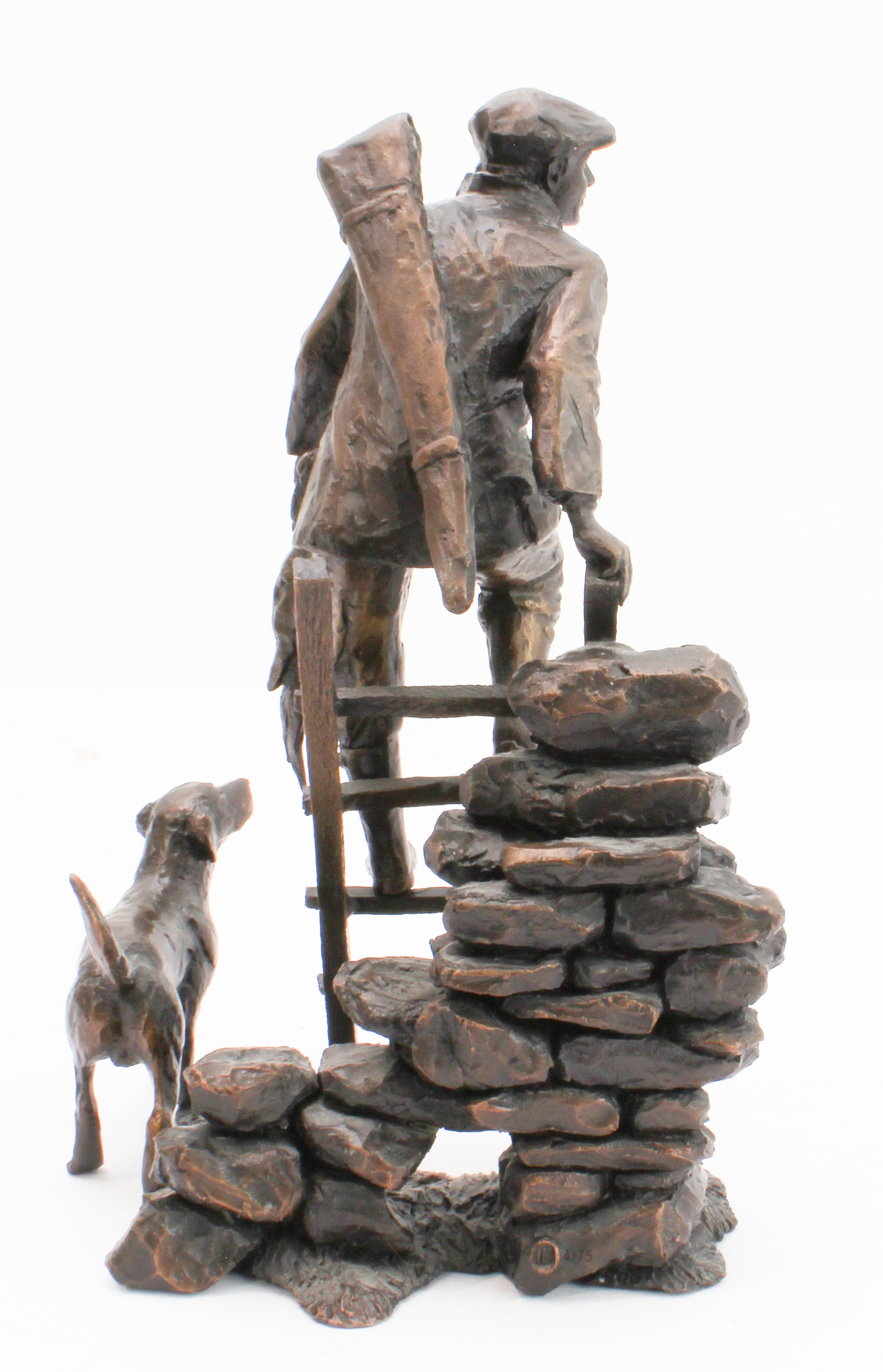 1. Gun and gundog climbing overa wall - limited edition bronze (4 of 75) with maker's stamp to lower back, (17 cm high).