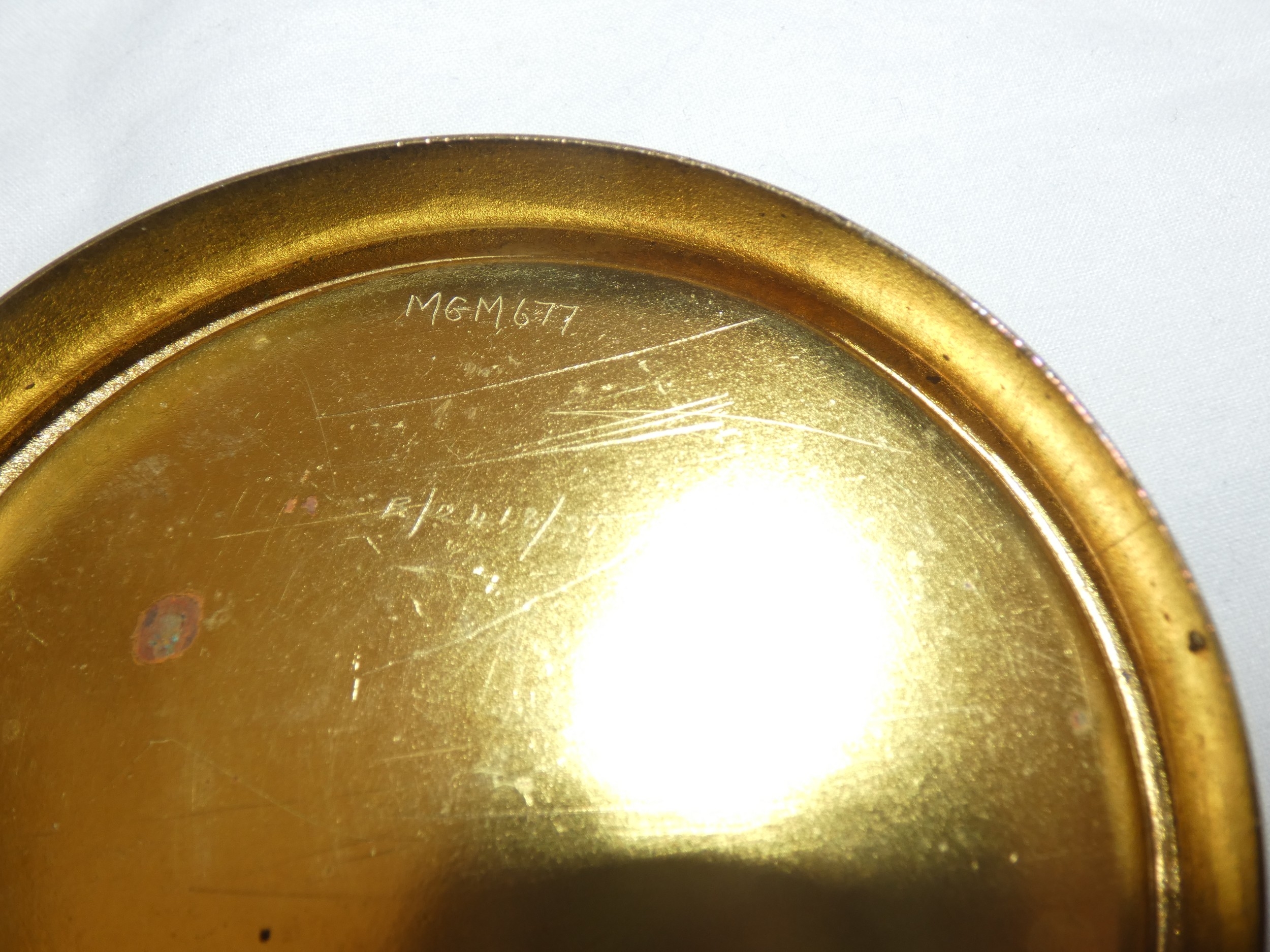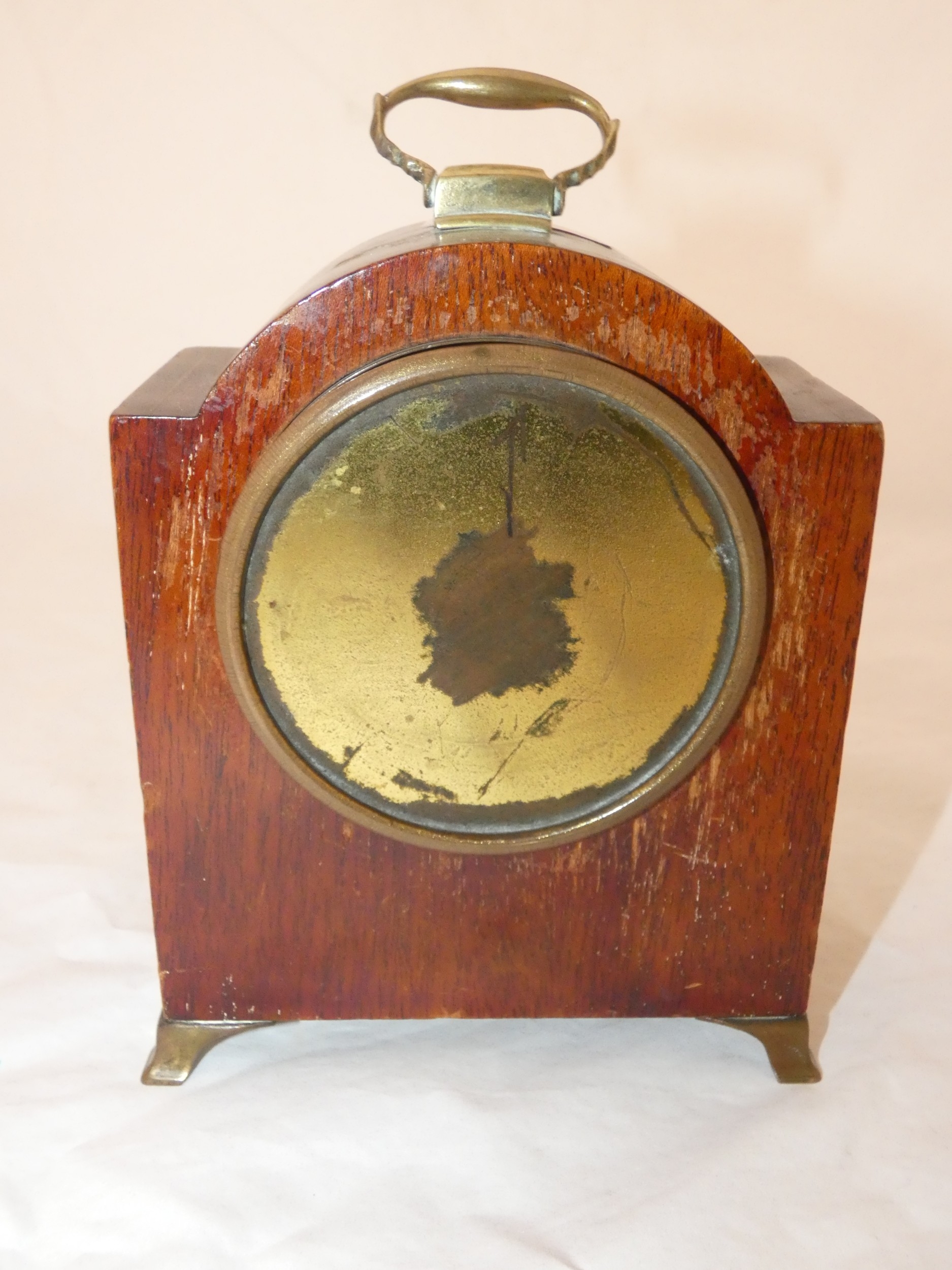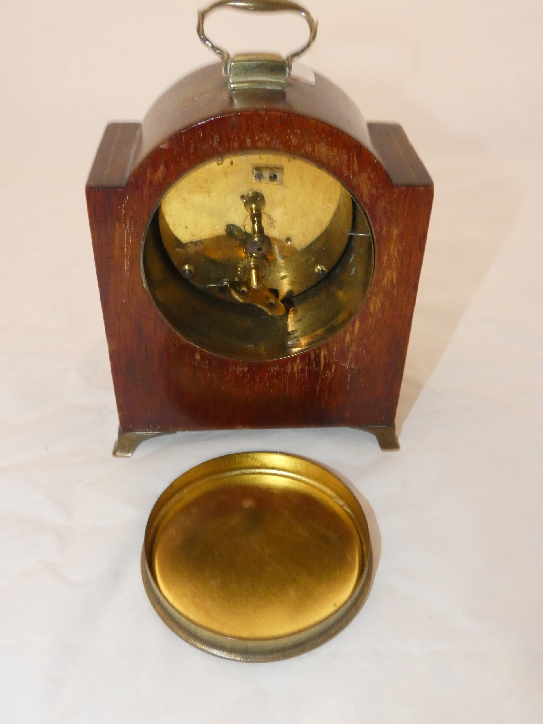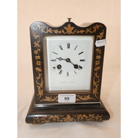 Asprey chinoiserie mantel clock with gilt feet and handle. Height approx. 17cms.