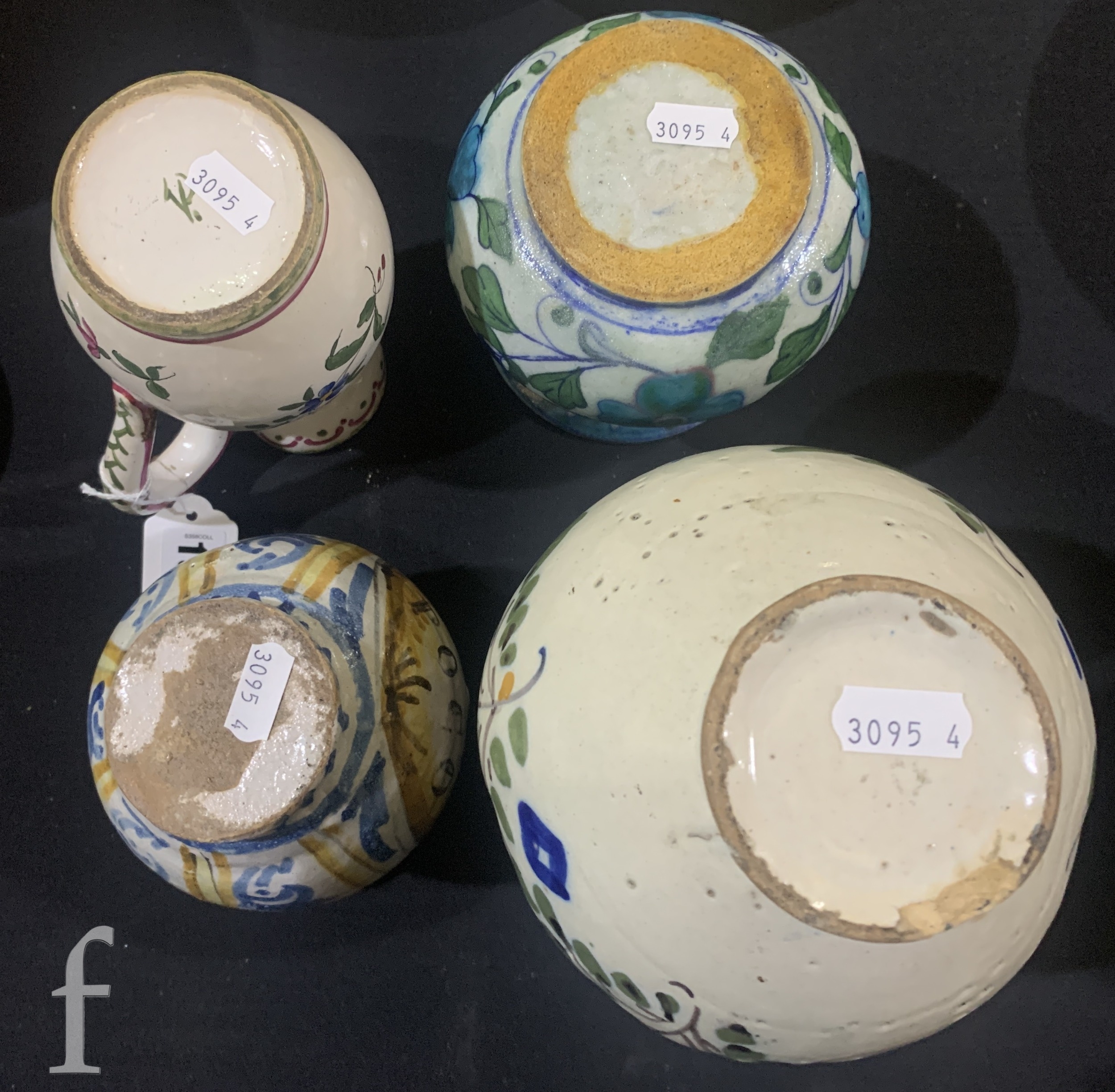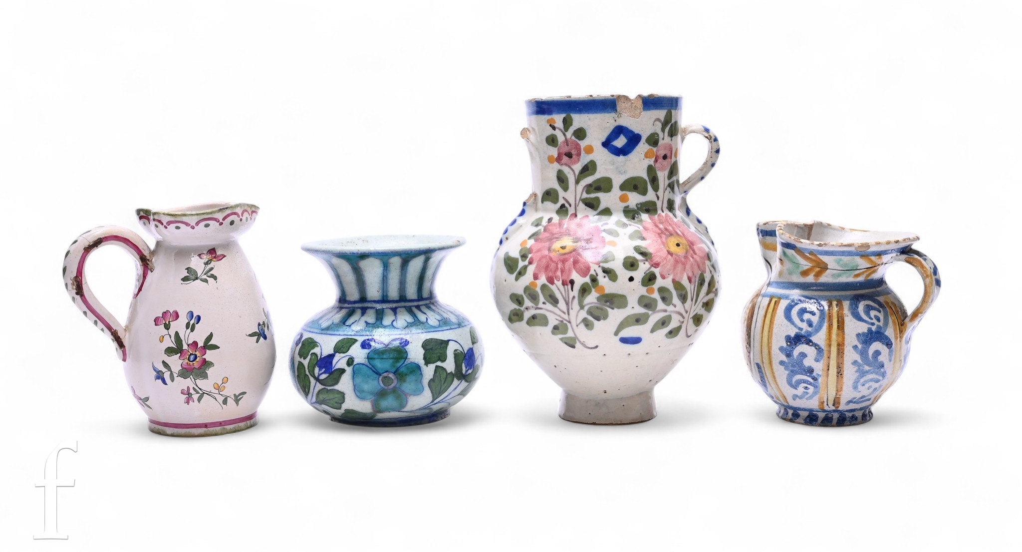 Faience pieces both had damage, Bevi Poco jug has chips to the rim.