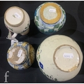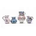 A collection of early 19th and 20th Century continental ceramics, including an Iznik Persian vase compressed spherical form with drawn collar and everted rim, tonal blue and green stylised flowers and leaves over opal ground, height 12.5cm, a majolica jug with painted panel 'Bevi Poco', a faience vase and a milk jug. (4)