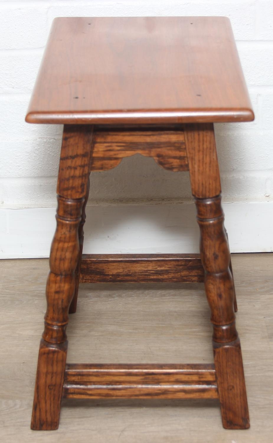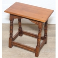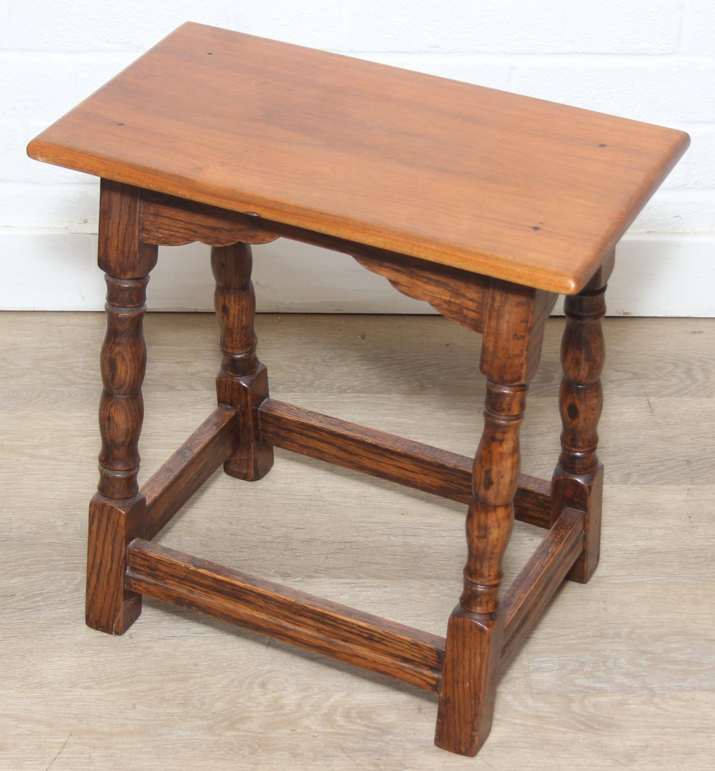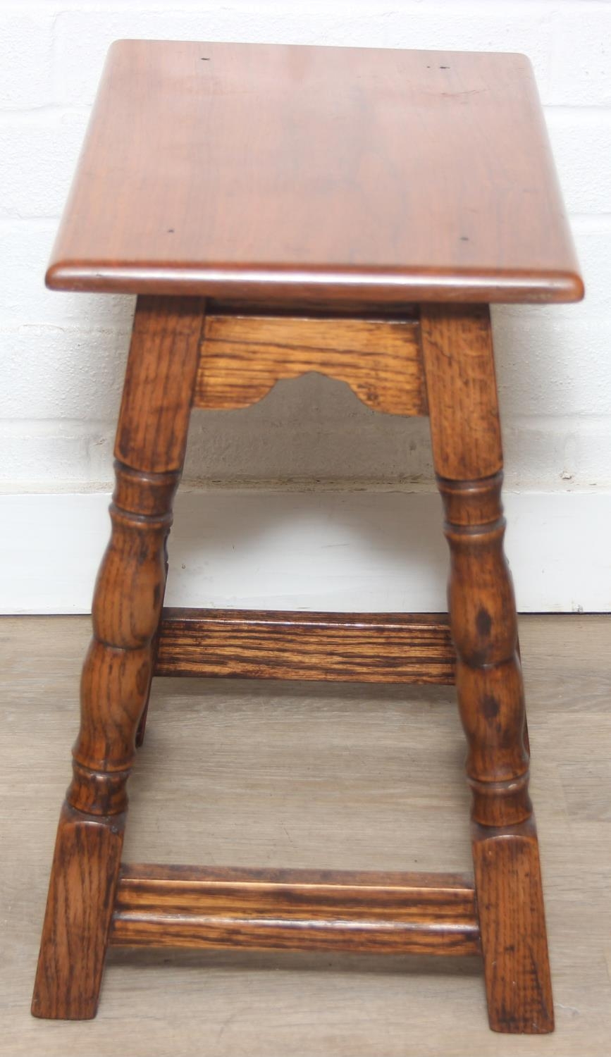 Low oak stool or coffin stool with mahogany top, 45cm x 26cm x 46cm