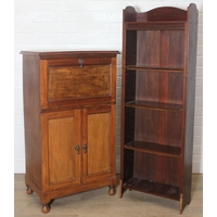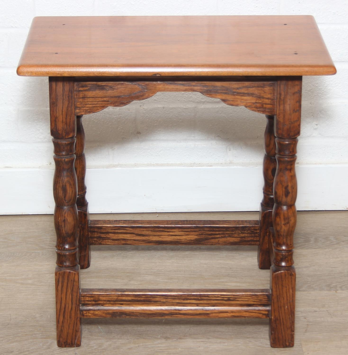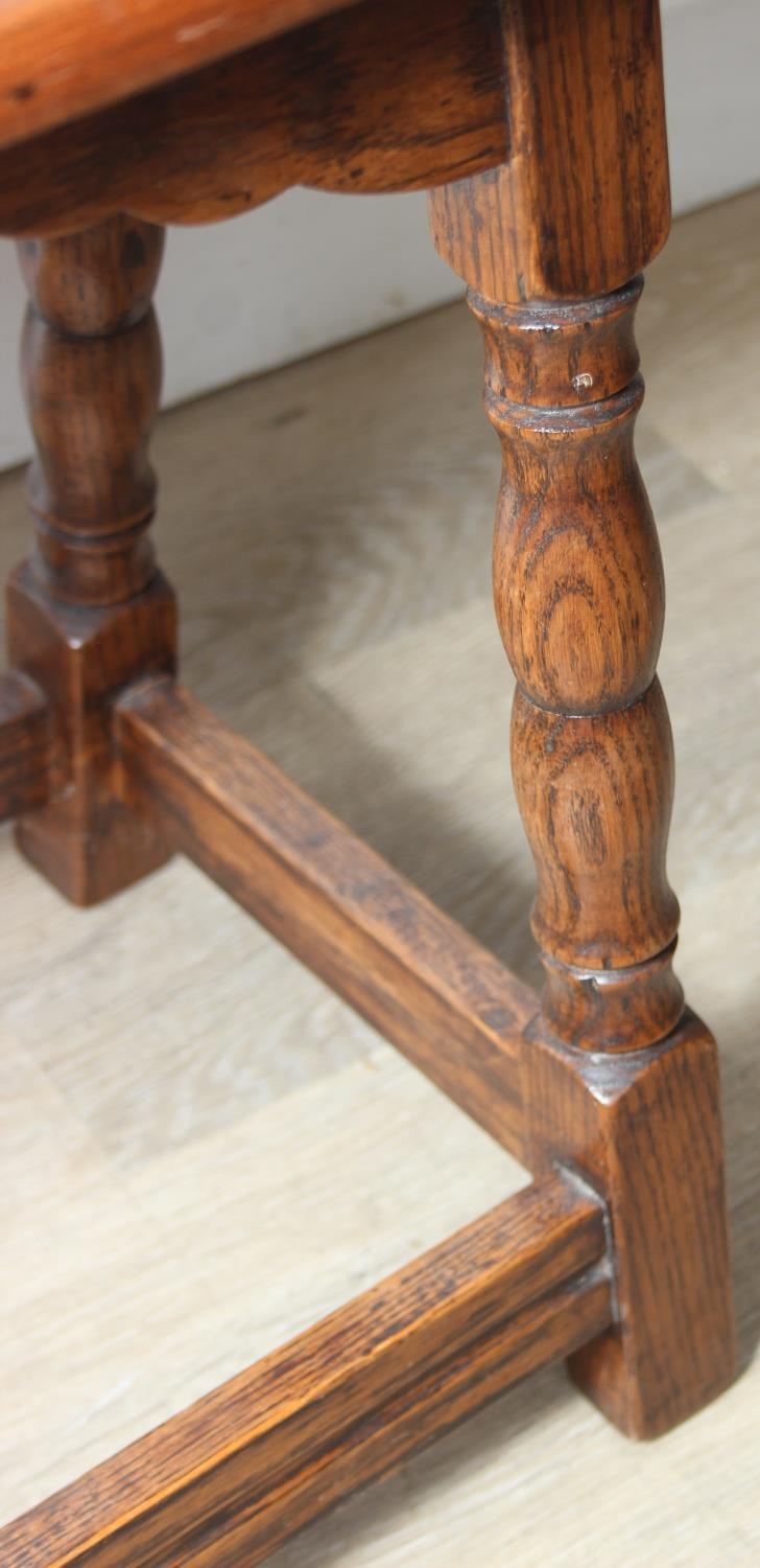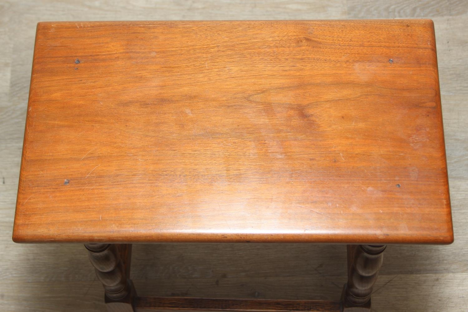 Low oak stool or coffin stool with mahogany top, 45cm x 26cm x 46cm