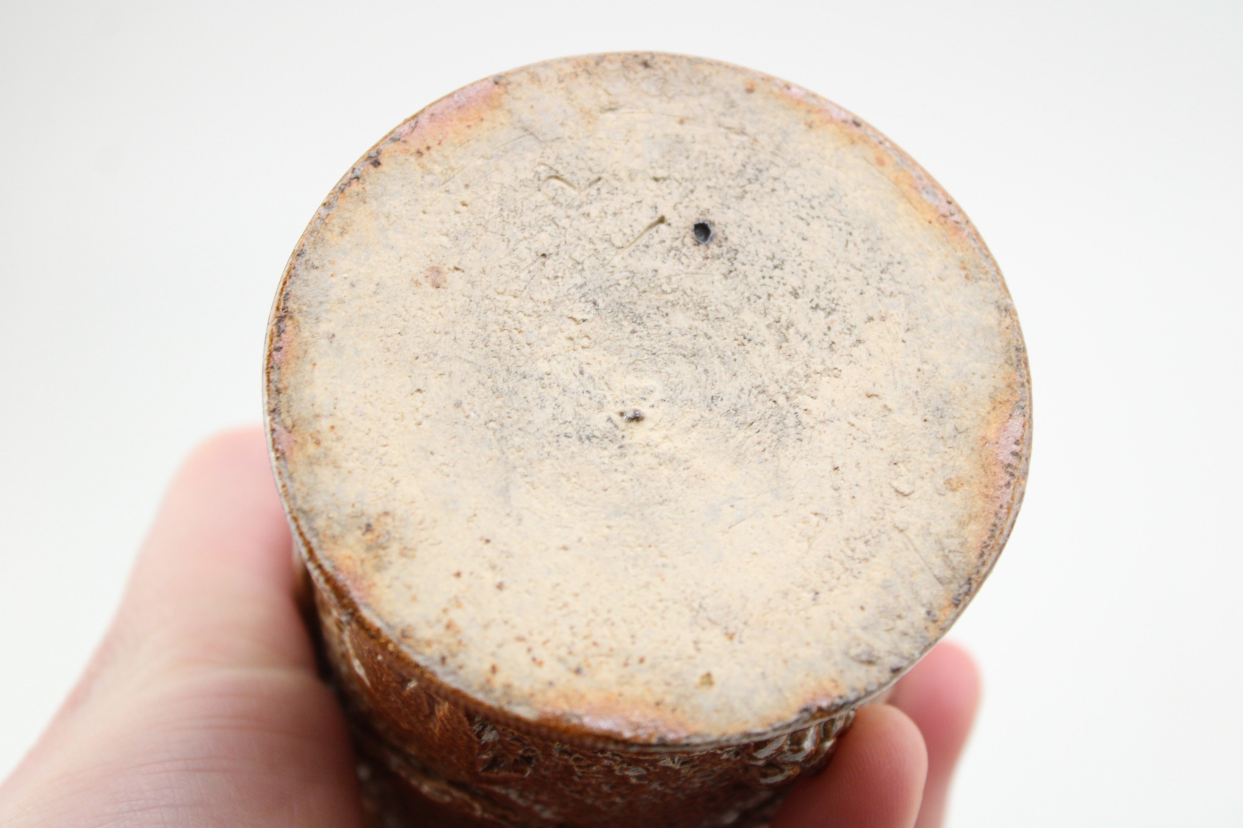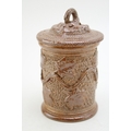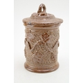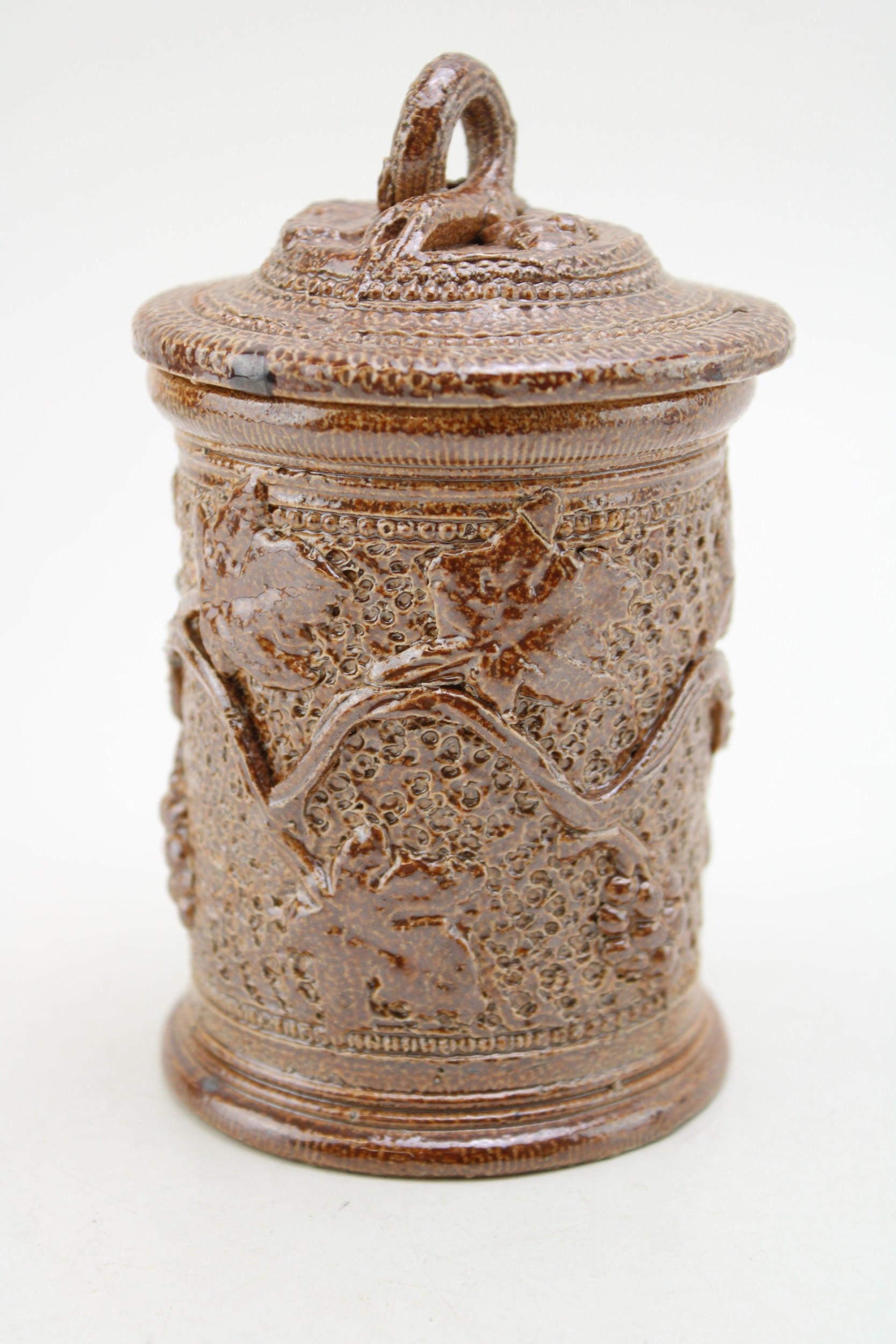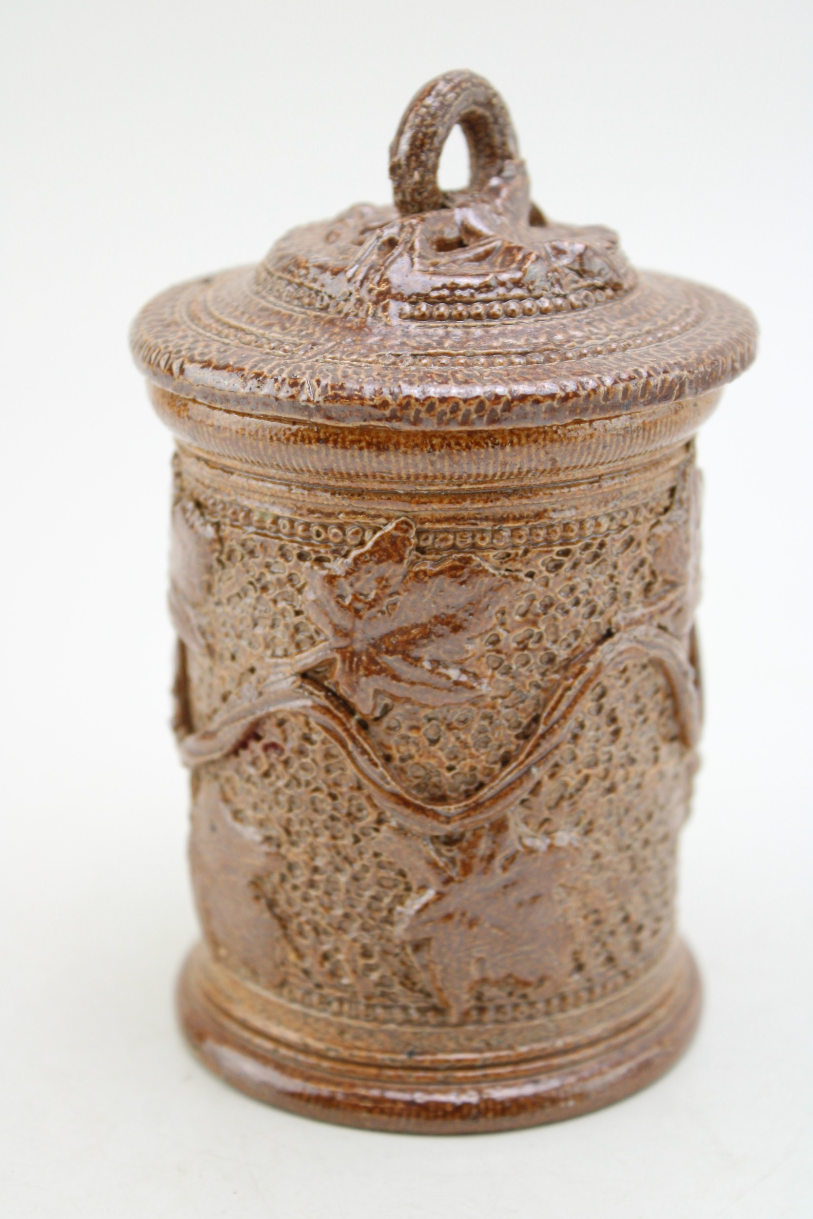 A Victorian stoneware jar and cover, with ivy vine decoration, 13.5cm tall.
