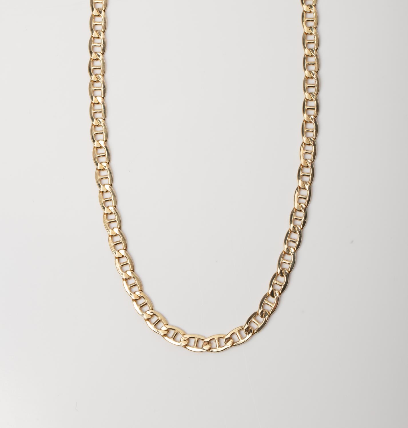 A 9CT GOLD AND SILVER BONDED MARINER CHAIN A 55cm long Mariner chain crafted in 1/10 9ct yellow gold and Sterling Silver bonded together weighing 10.83 grams.