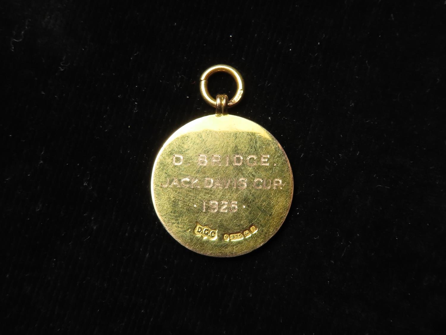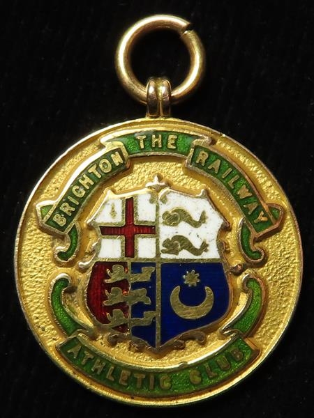 Railway related - The Brighton Railway Athletic Club (London, Brighton & South Coast Railway Coat of Arms on front) 9ct. gold & enamel medal. Hallmarked D.G.C., 9.375, Birm, 1925. Back reads D.Bridge, Jack Davis Cup, 1925. Weighs 8.7gms.