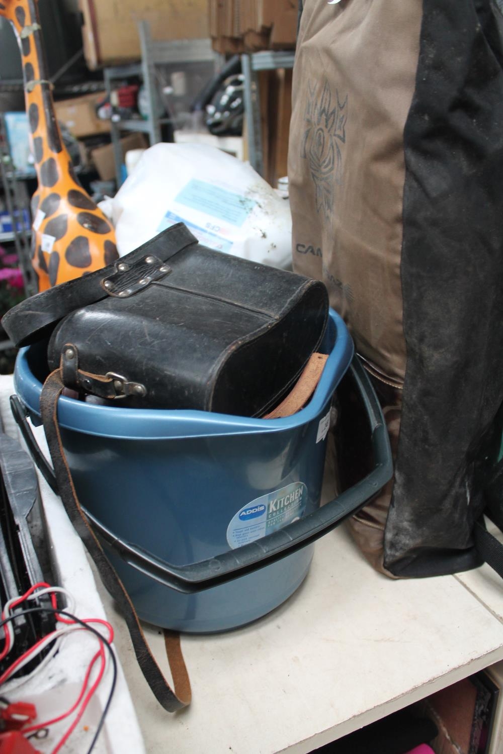 KITCHEN BUCKET CONTAINING EMPTY BINOCULAR CASES