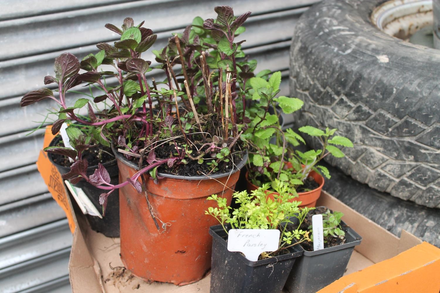 SELECTION OF DIFFERENT POTTED HERBS