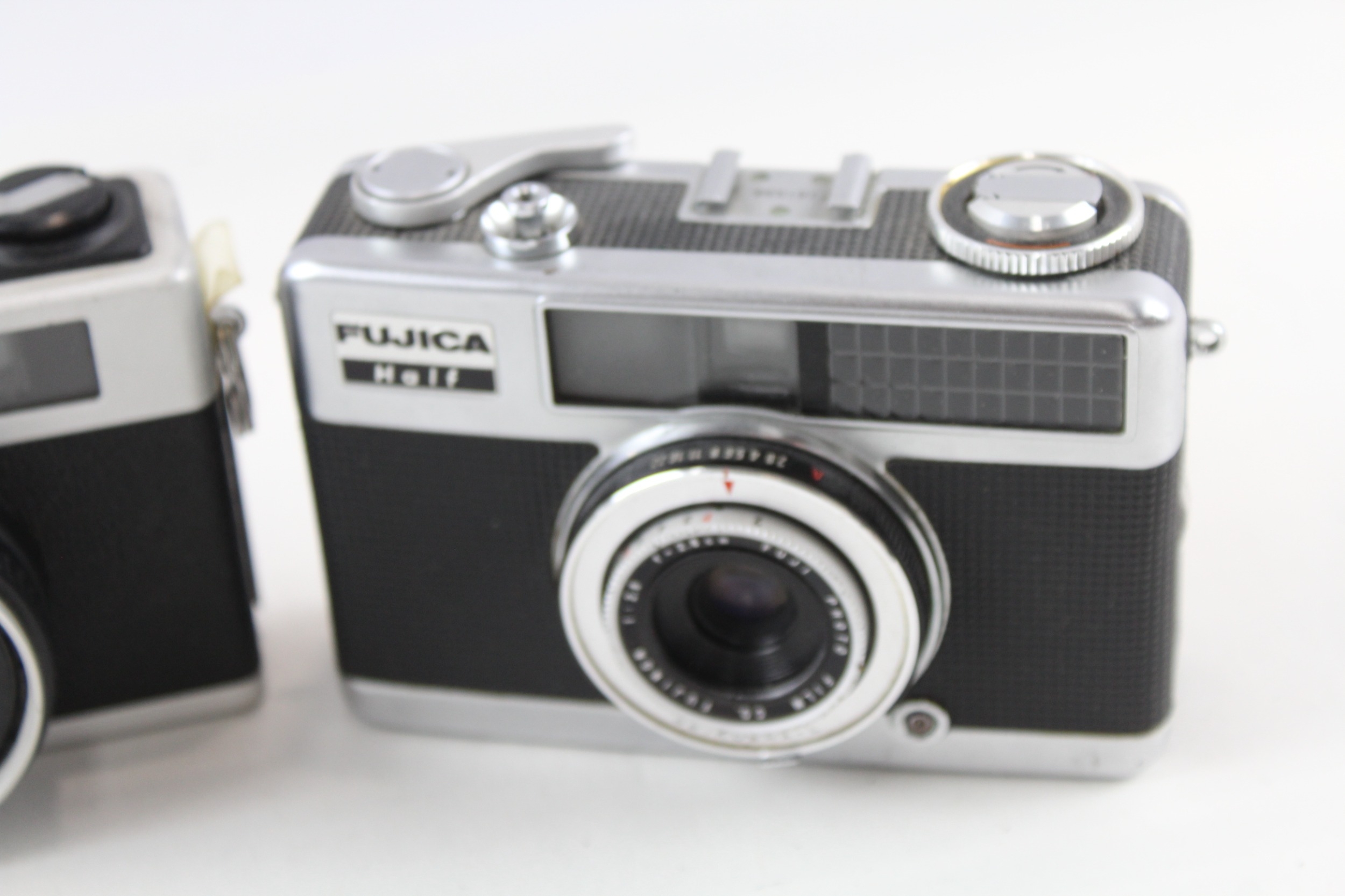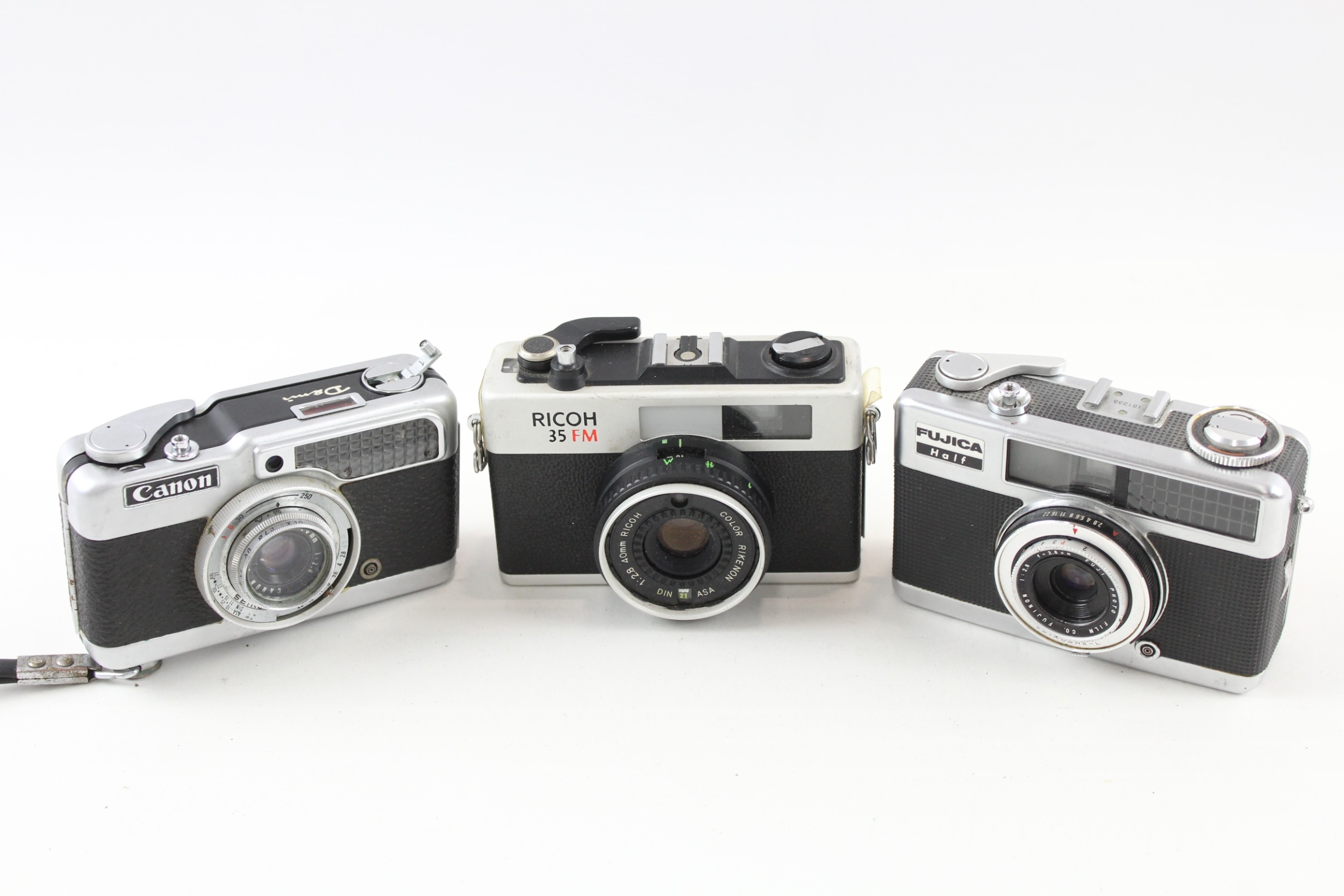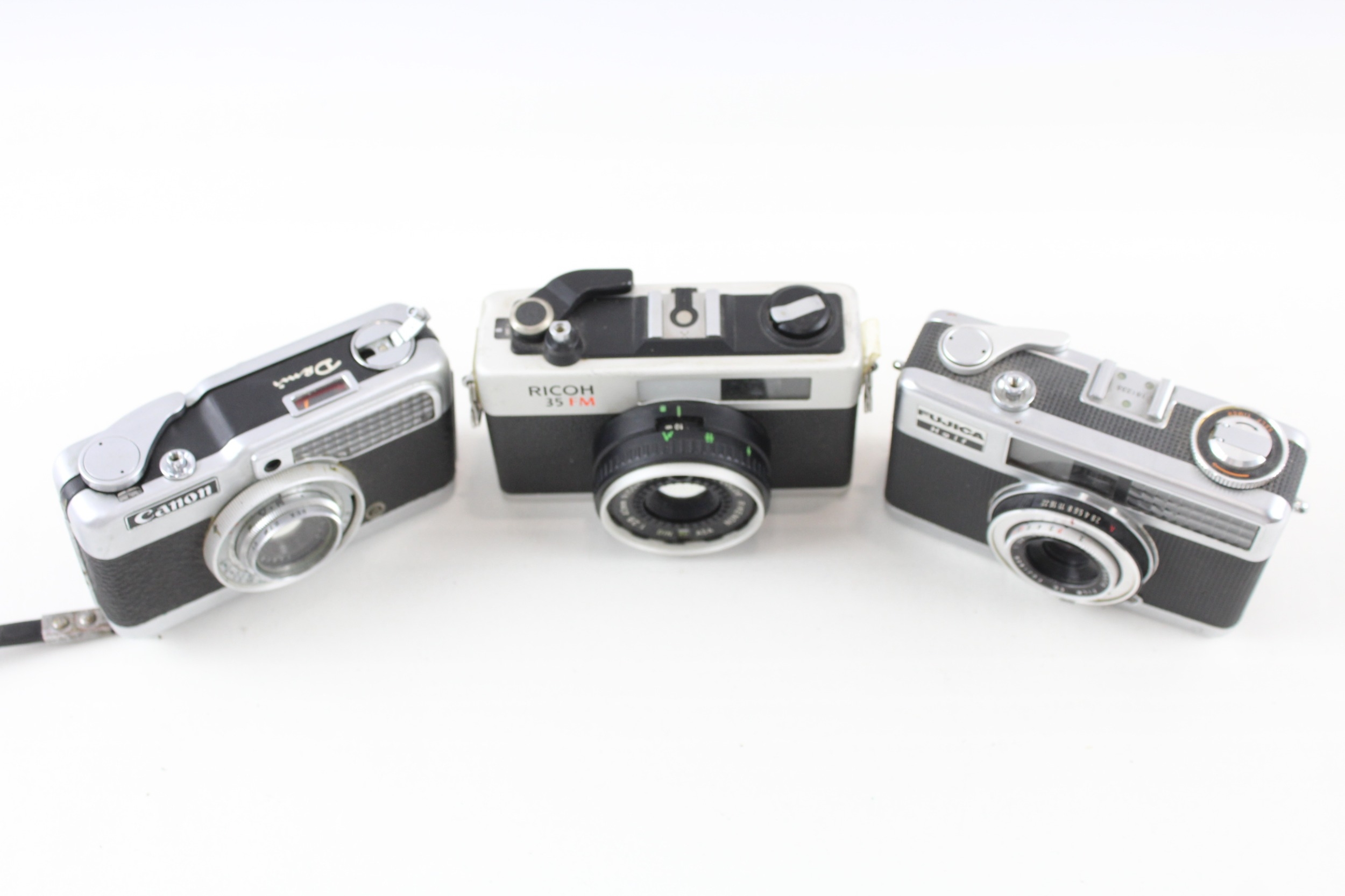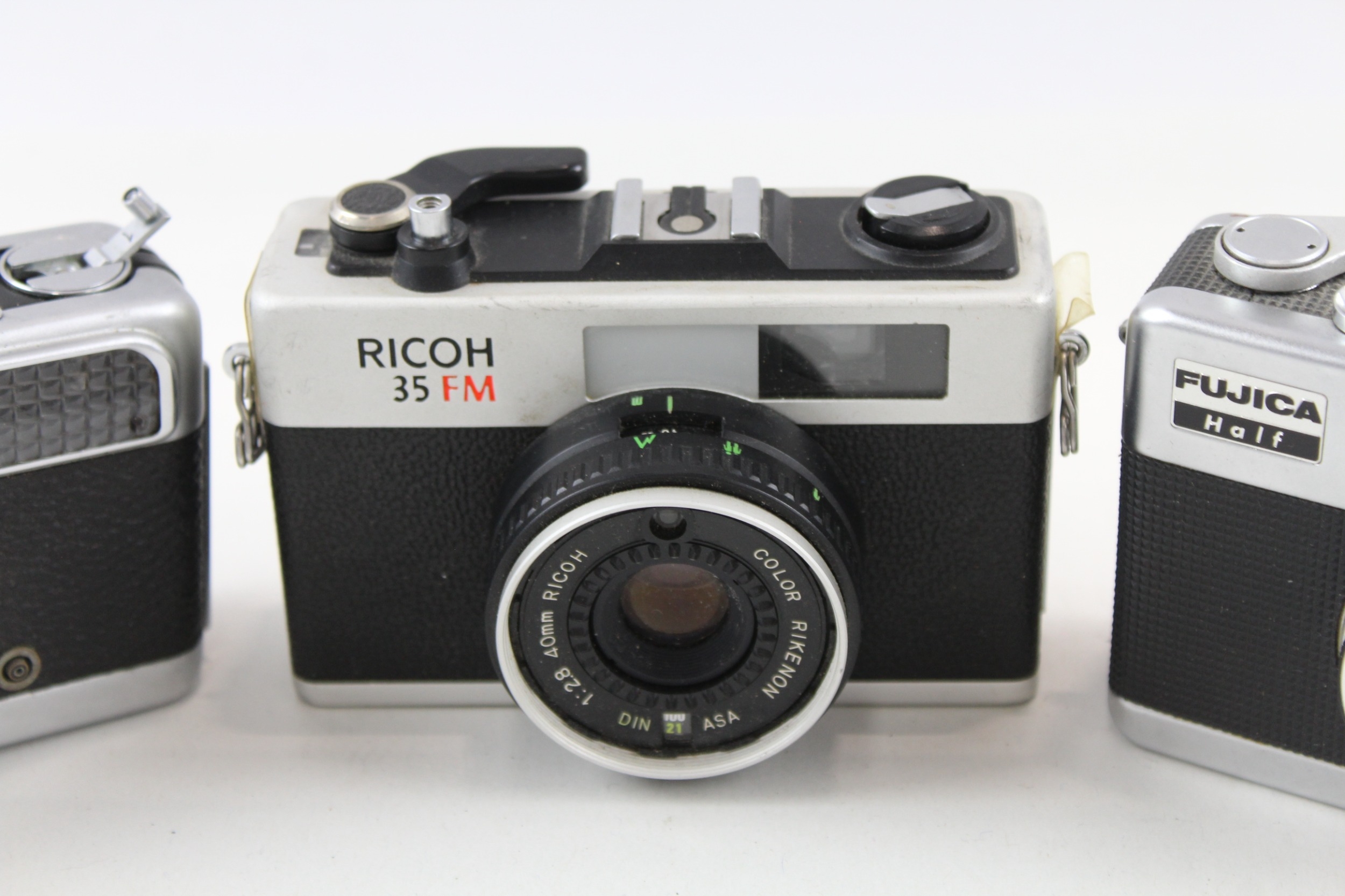 Compact Rangefinder Film Cameras Inc Fujica Half & Ricoh 35 FM Etc Working x 3