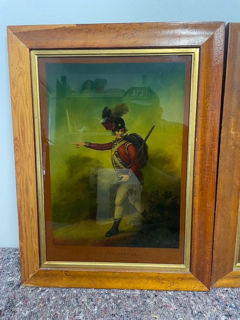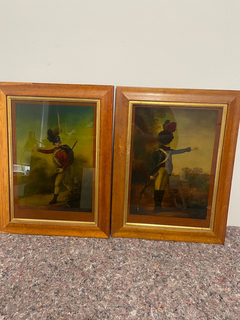 Pair of framed 19th Century Aquatinted Book plates of Military Framed with smoked glass 15.5" x 20"