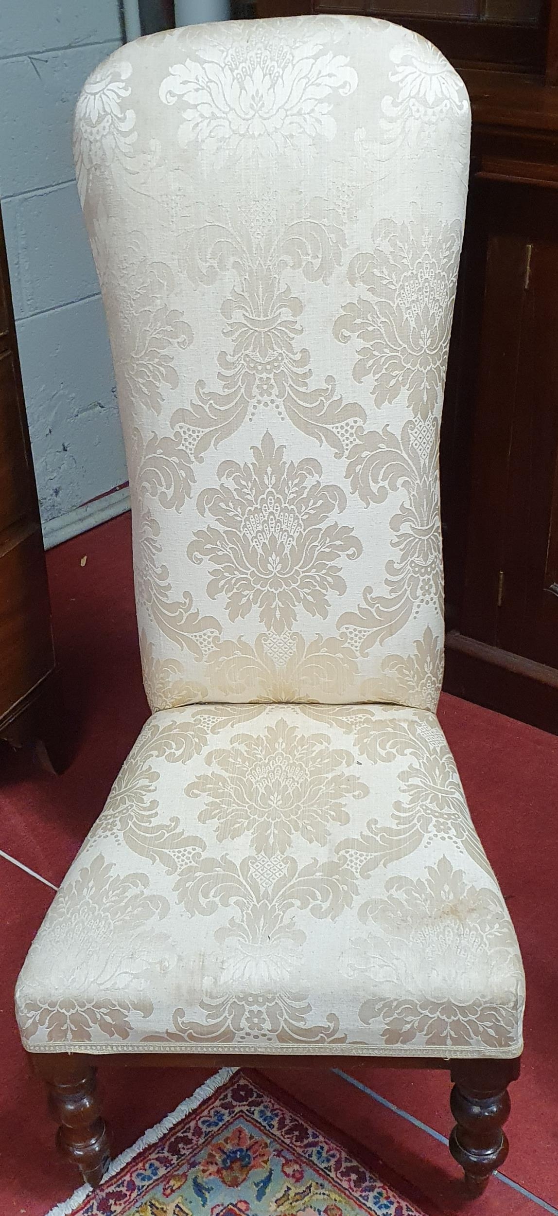 A fully upholstered 19th Century high back Chair on turned supports. H105cm approx.