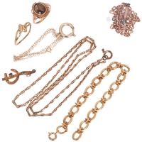 Various 9ct gold jewellery, including cross pendant, locket, charms, etc, 10.6g