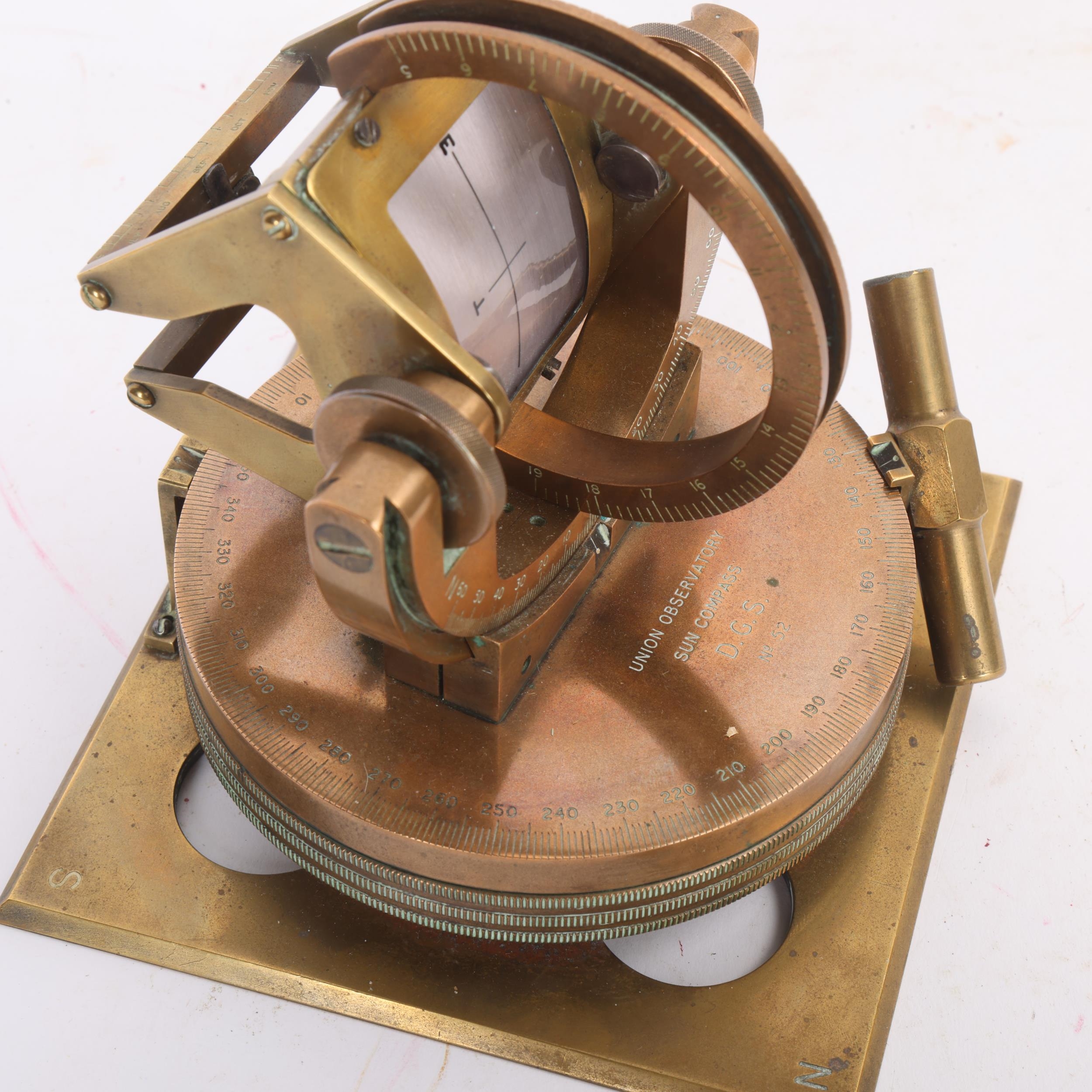 A Union Observatory sun compass, second world war period, South African Army issue, one of only 128 ever made, with vertical gnomon for use on vehicles in the North Africa campaign, designed by Dr WS Finsen and Dr WH van den Bos in 1941, marked DGB No. 52, base width 15cm