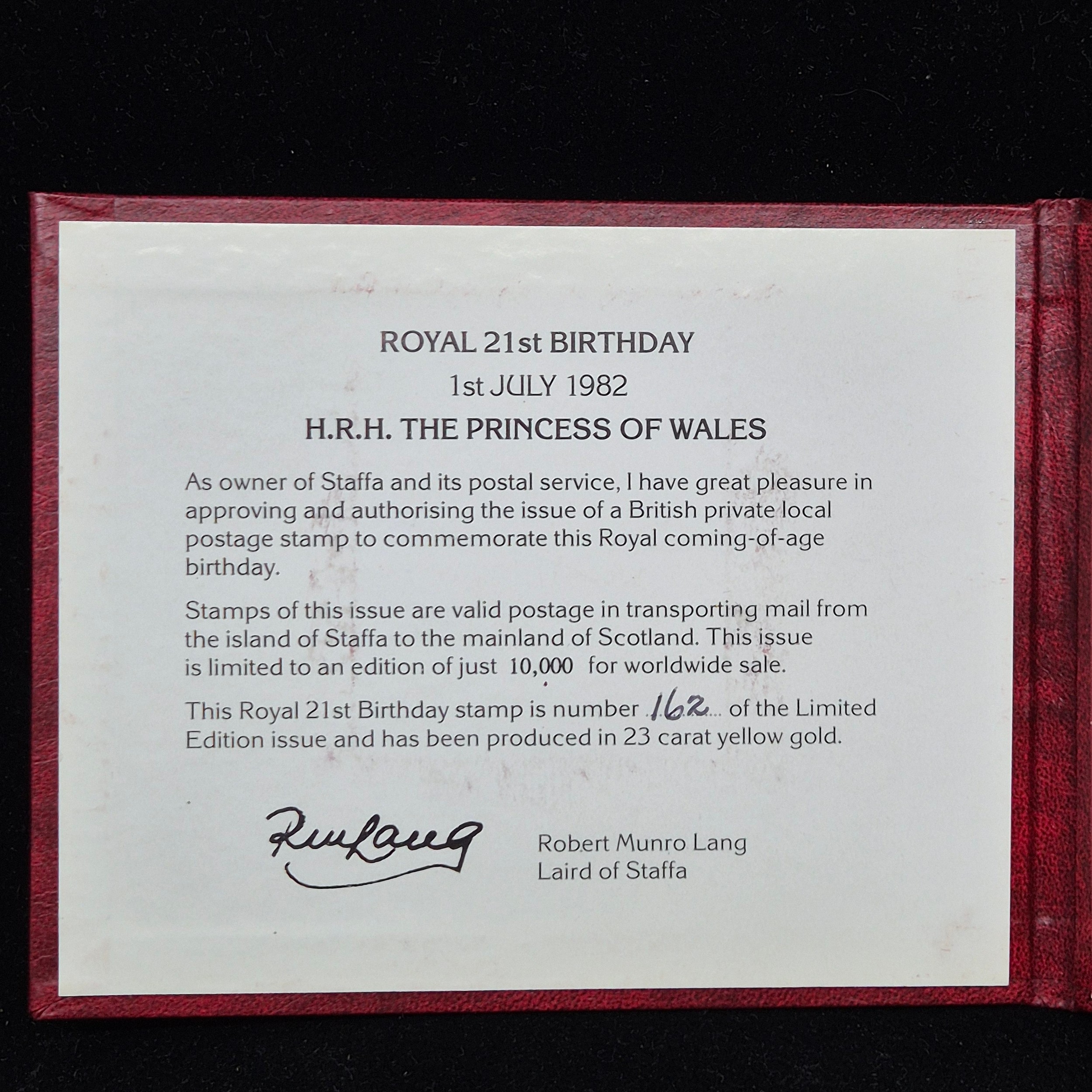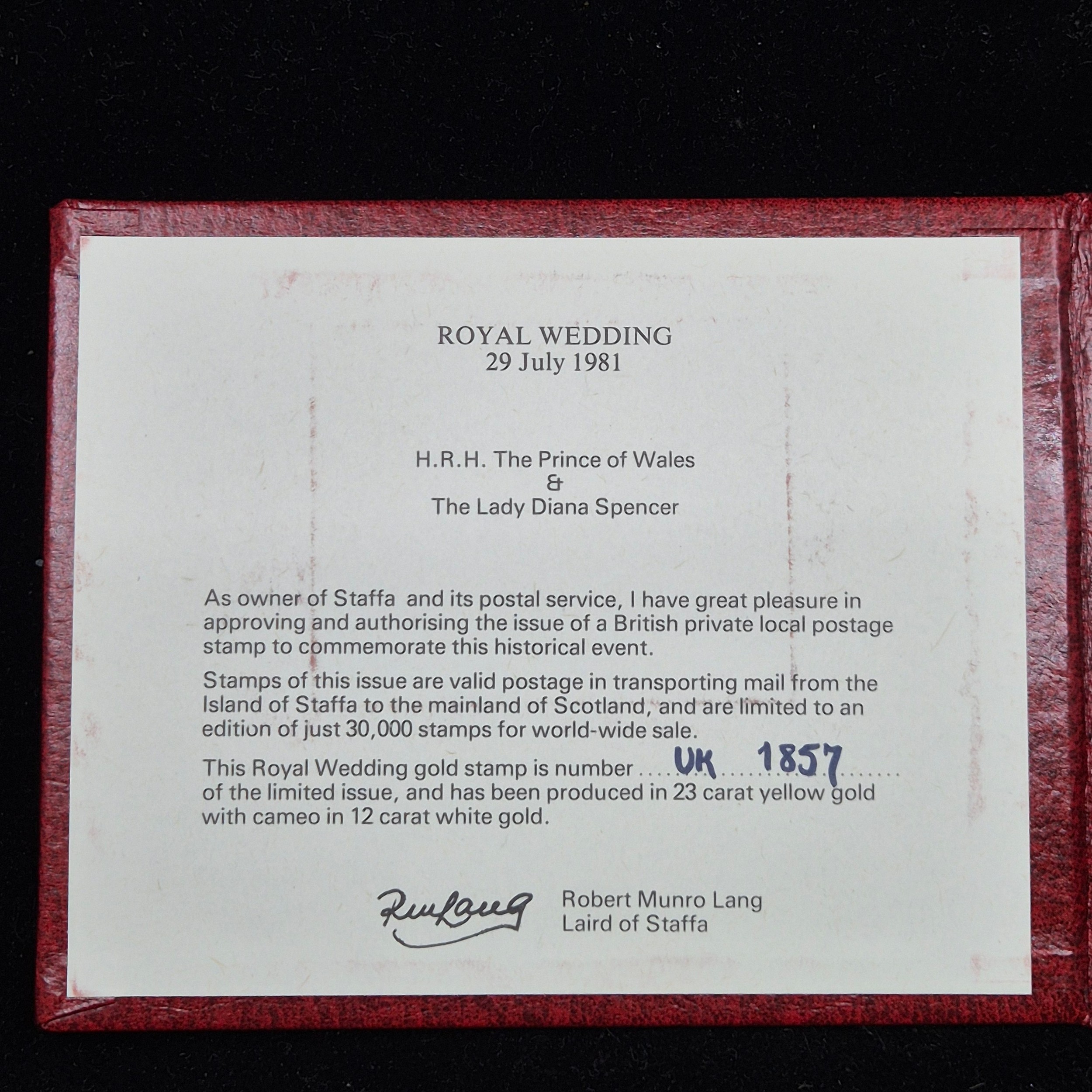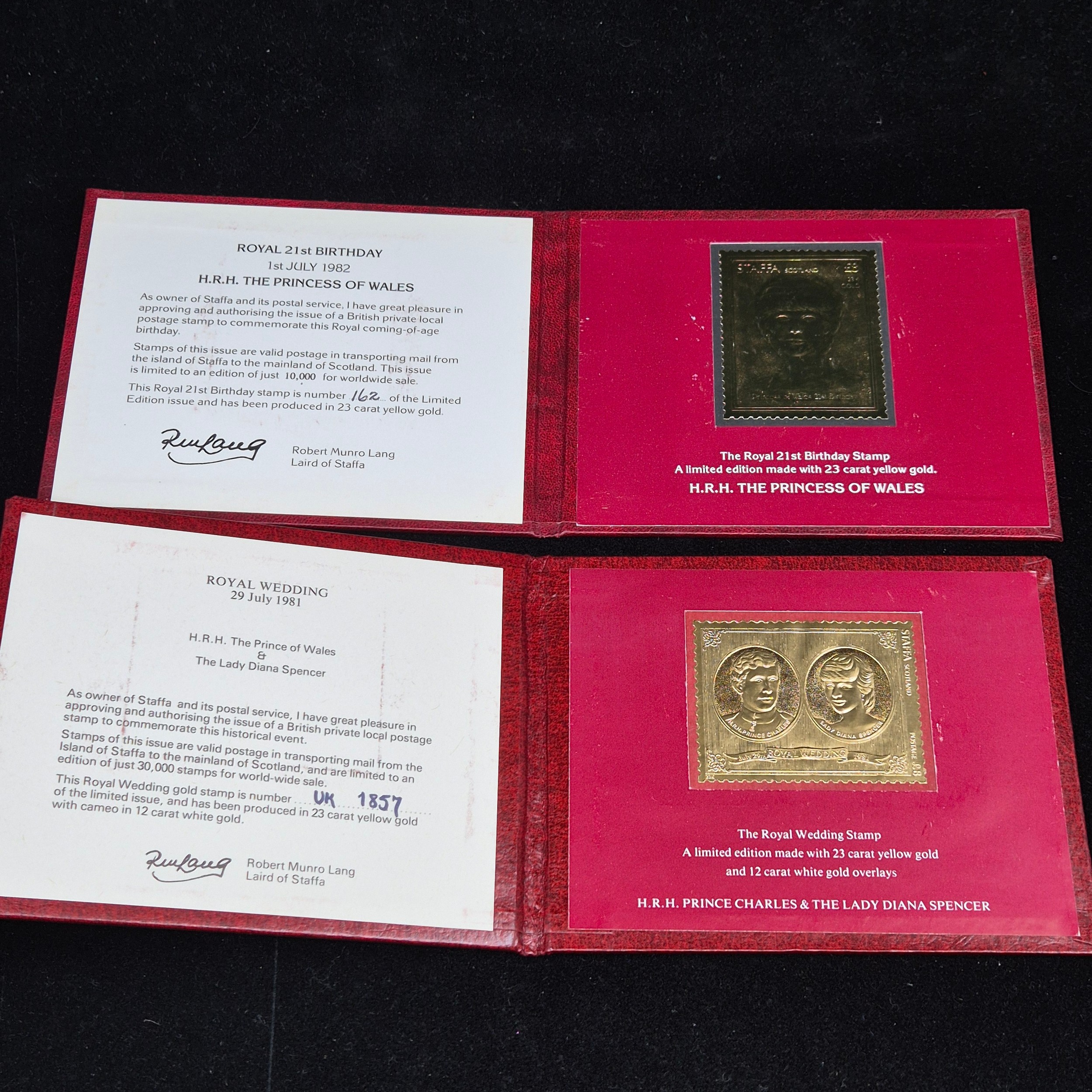 Two Royal Commemorative 23ct Gold Stamps in Original Packaging