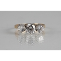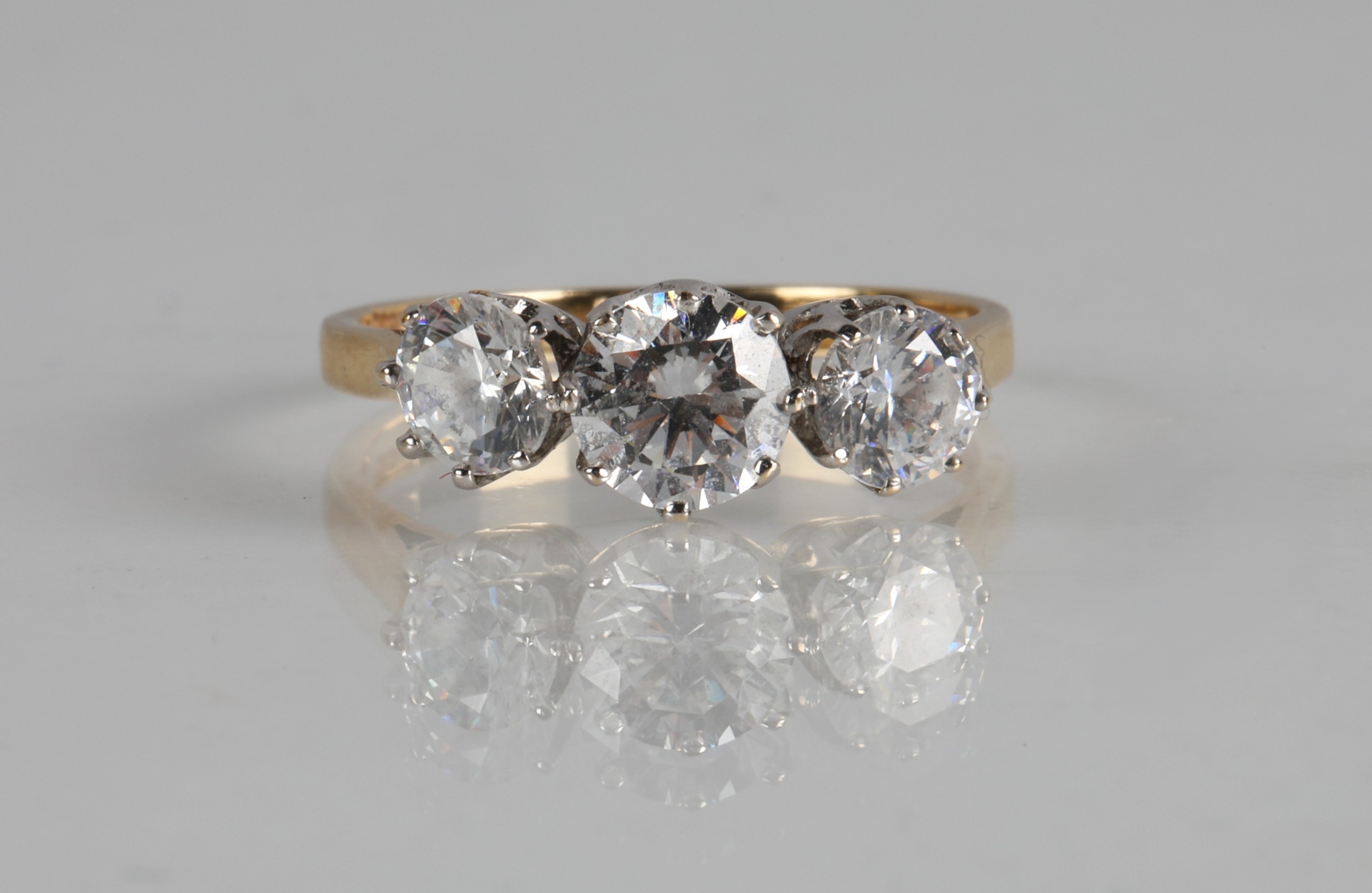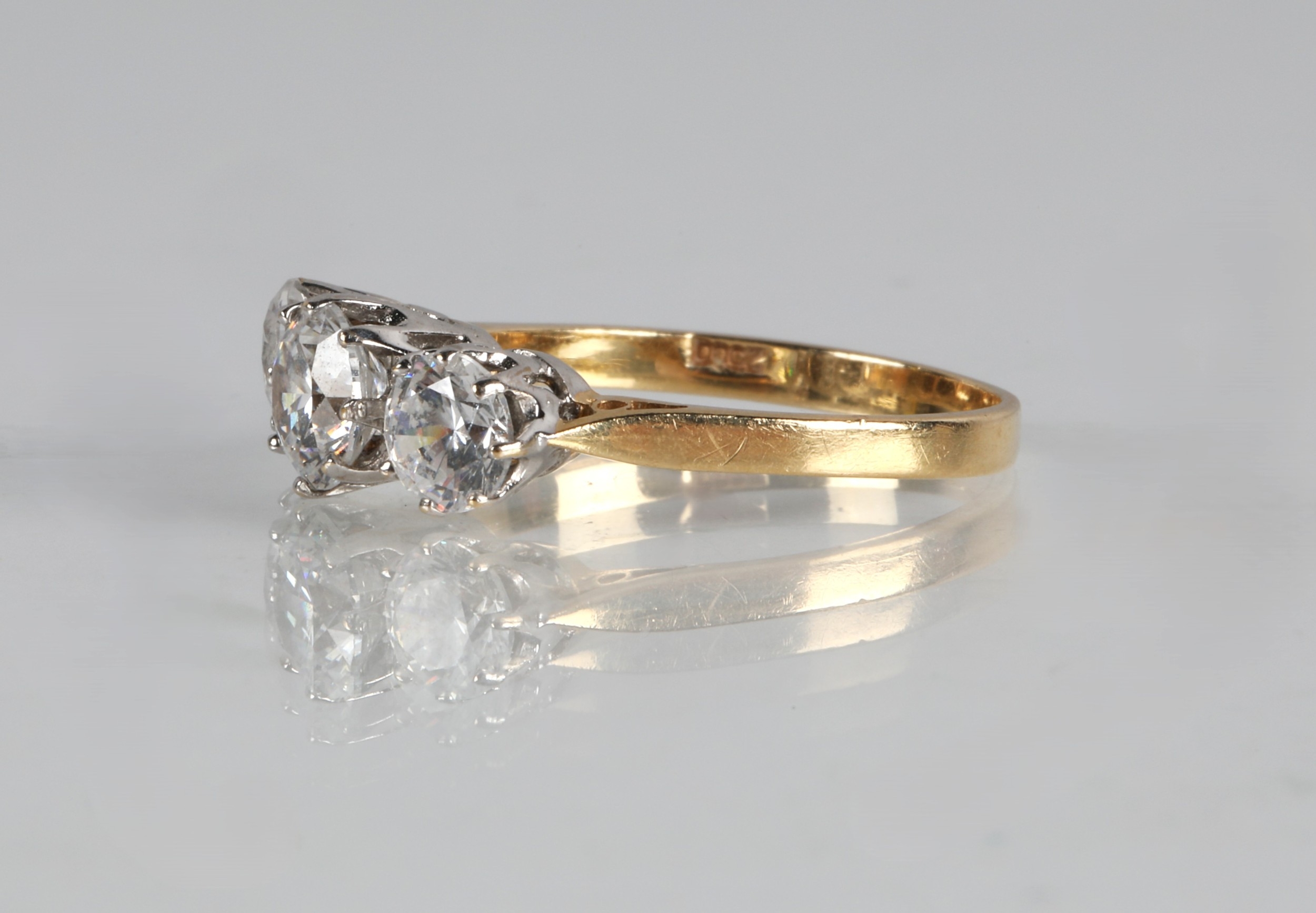 14K gold ring set with a trilogy of cubic zirconia, ring size N, 3g