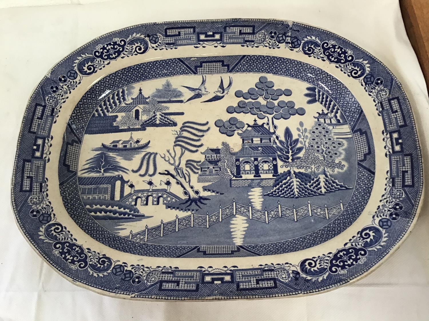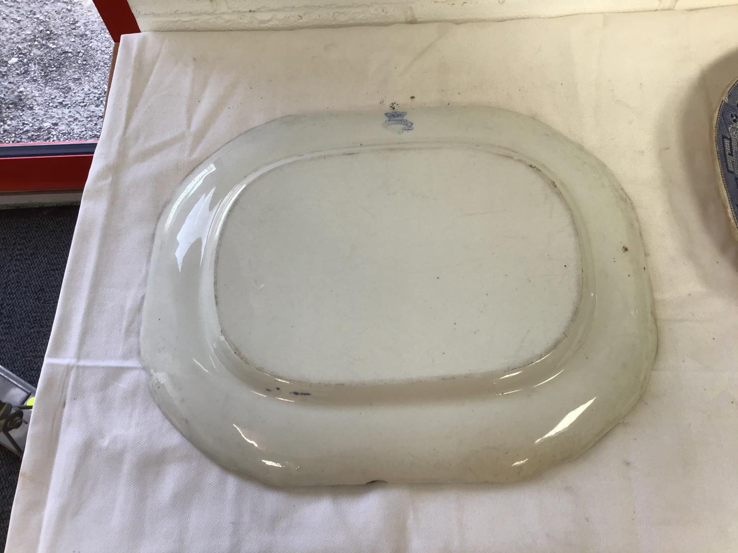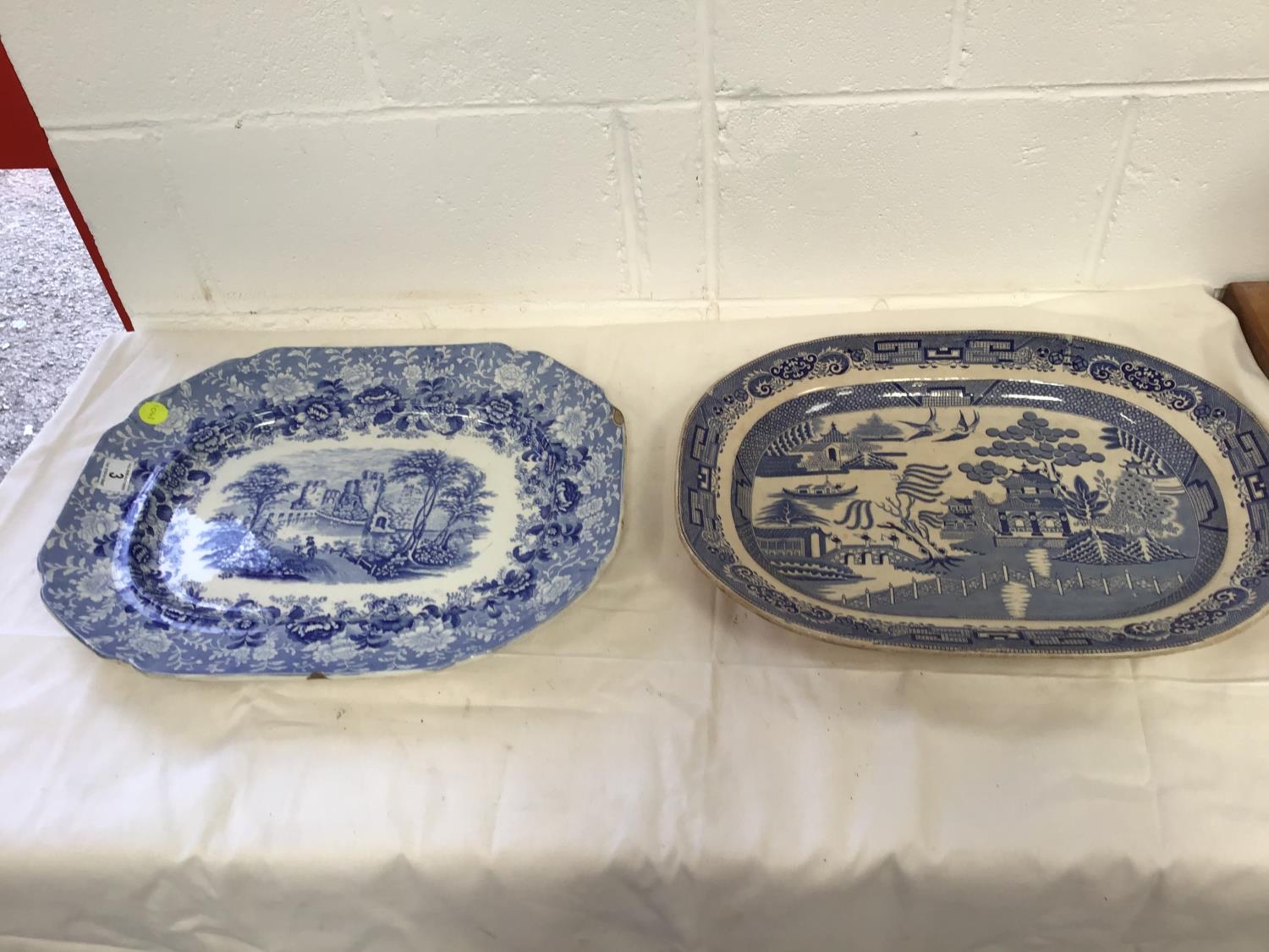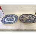 2 VICTORIAN BLUE & WHITE MEAT PLATES A/F