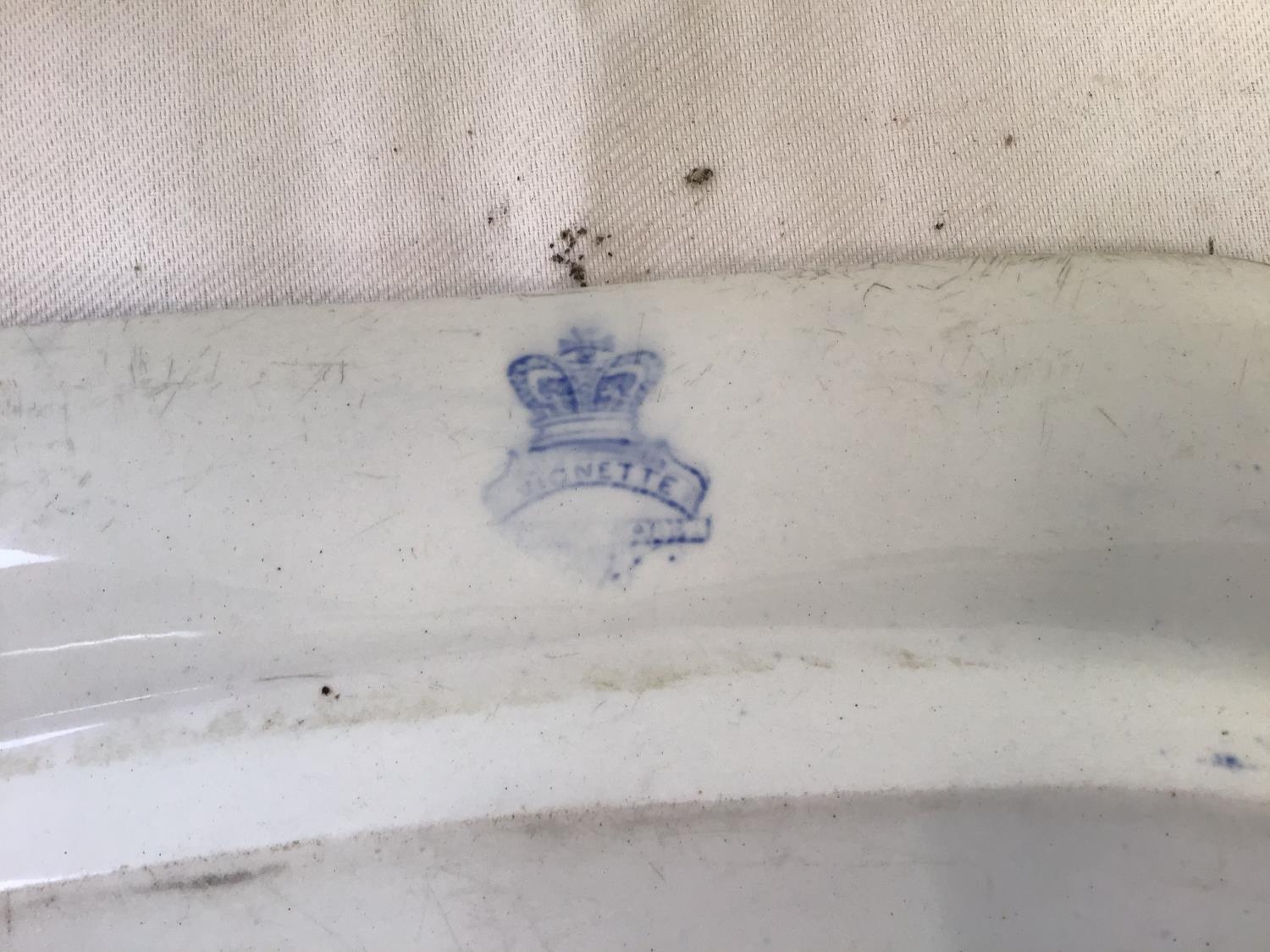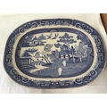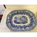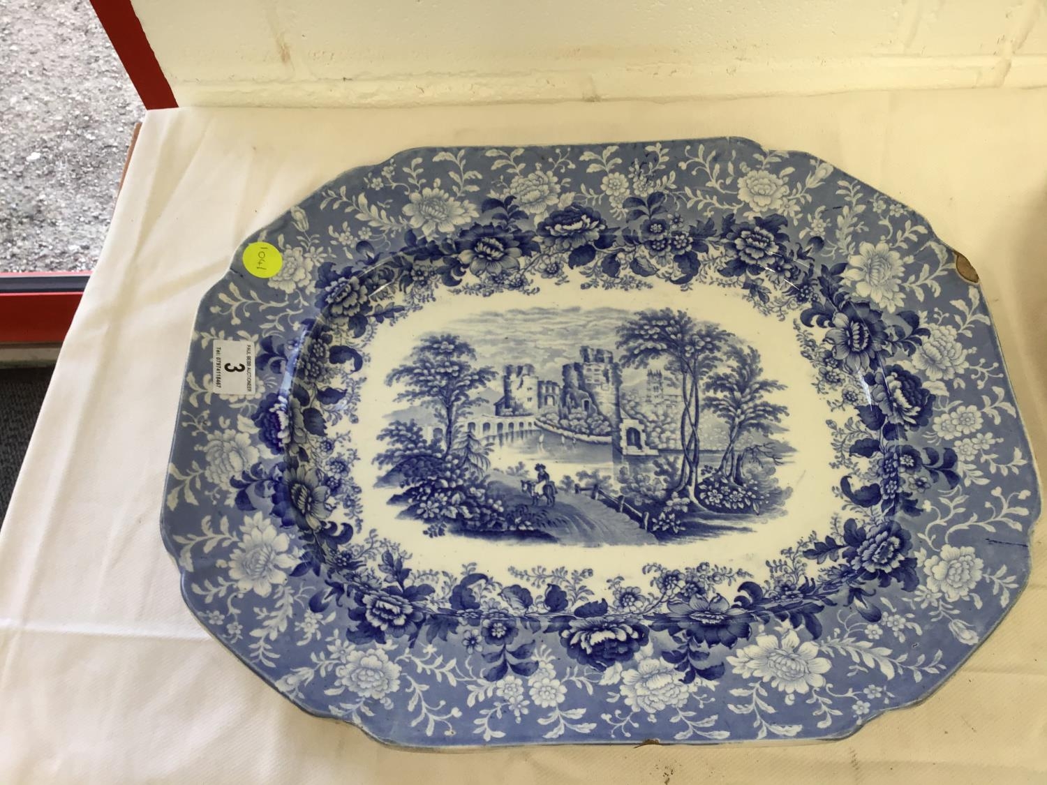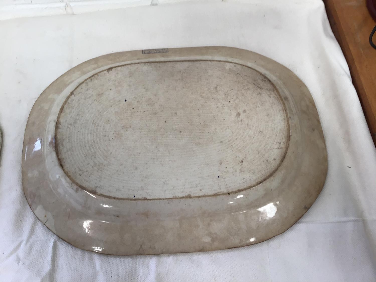 2 VICTORIAN BLUE & WHITE MEAT PLATES A/F