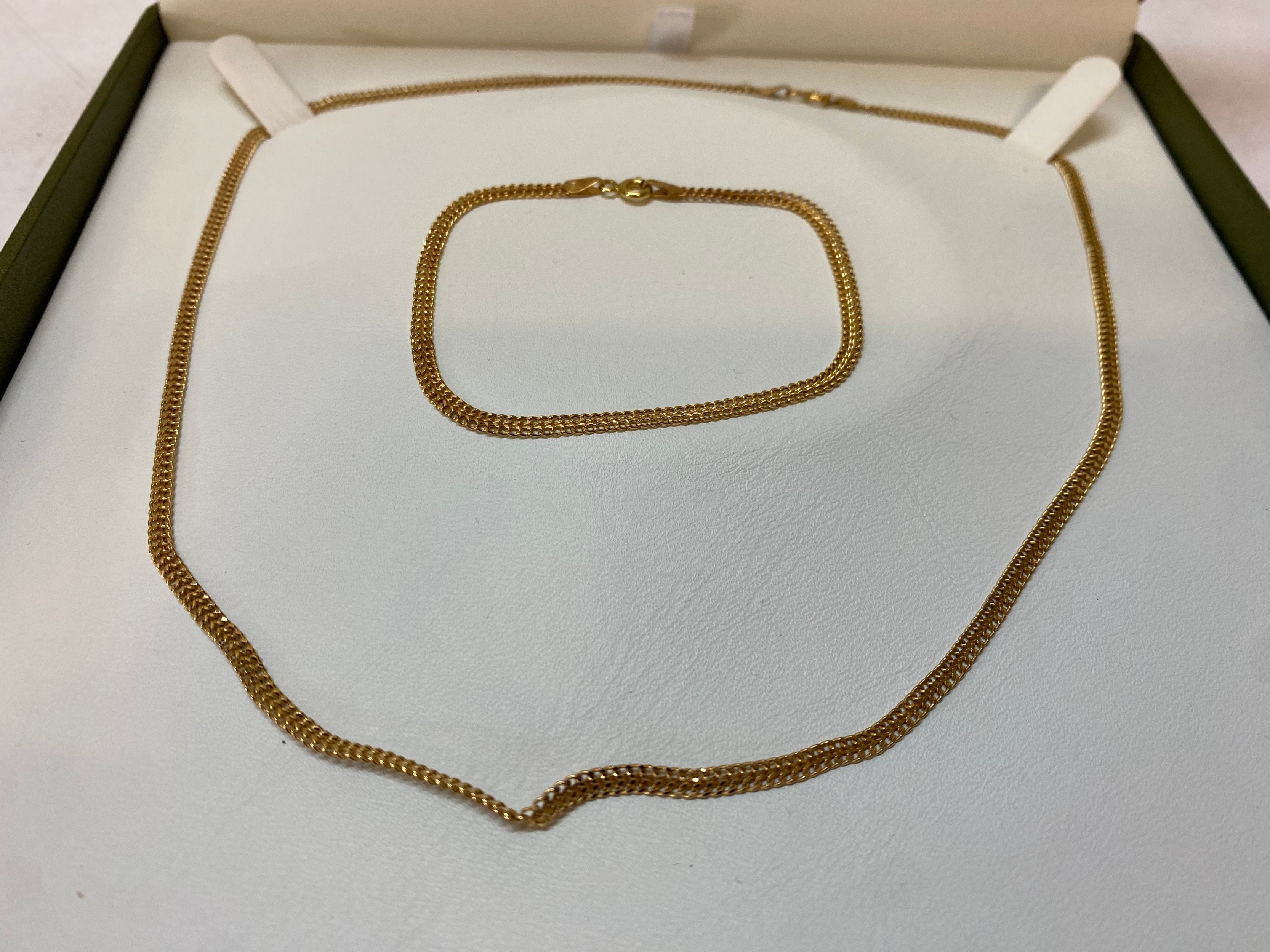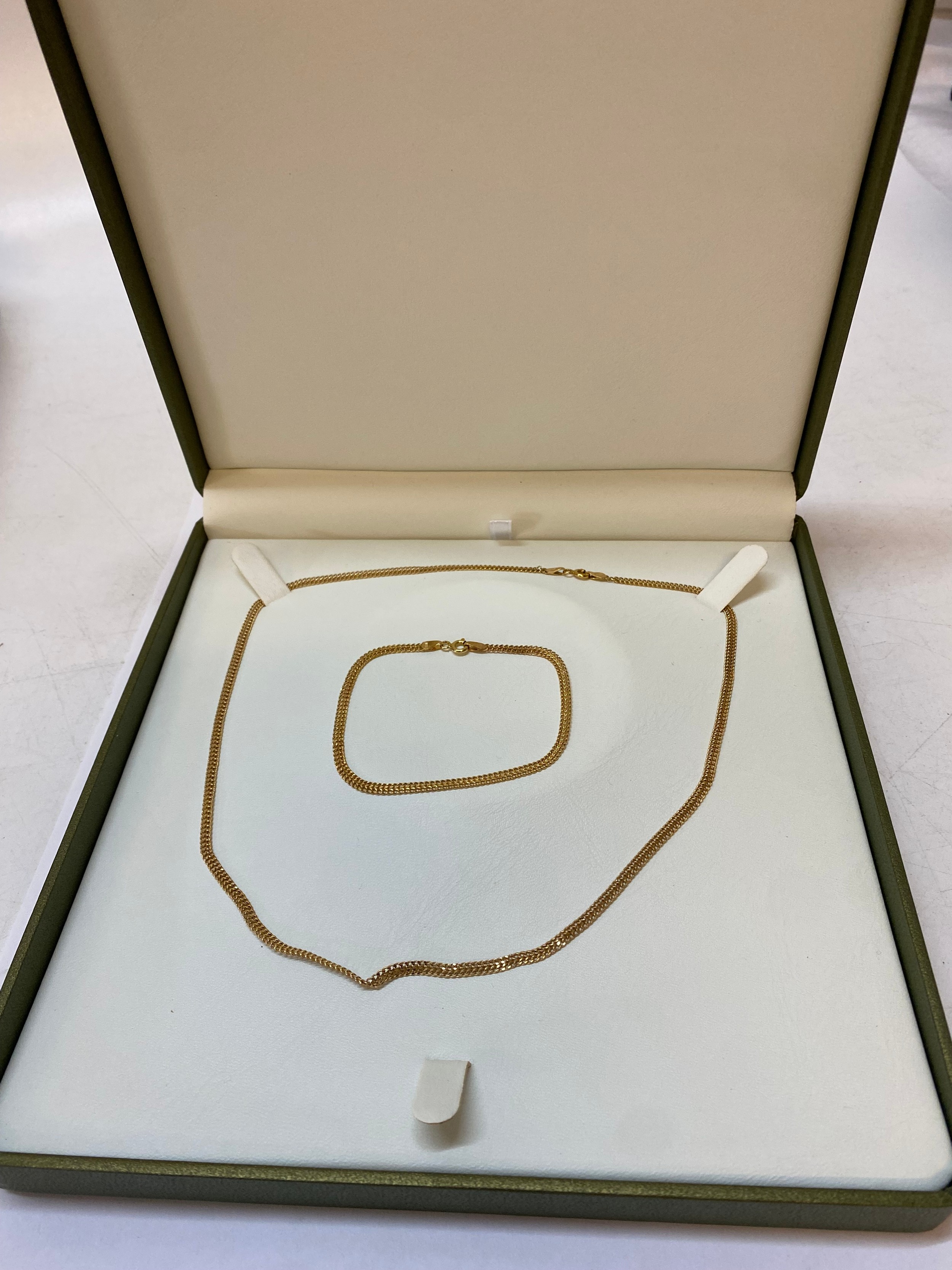 A 9ct. gold necklace and matching bracelet, in fitted box