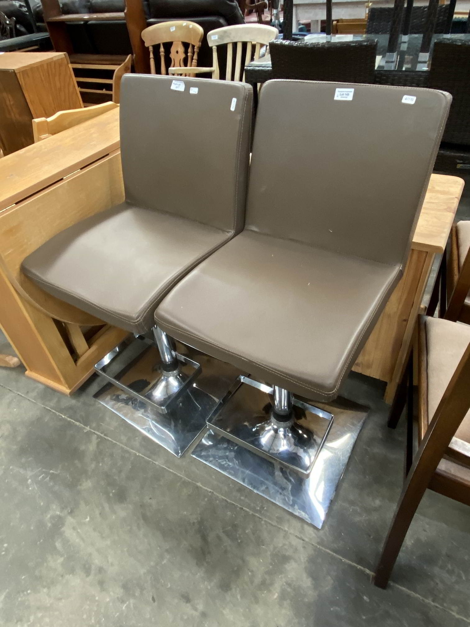 2 chrome based swivel, rise and recline bar stools 93H 40W