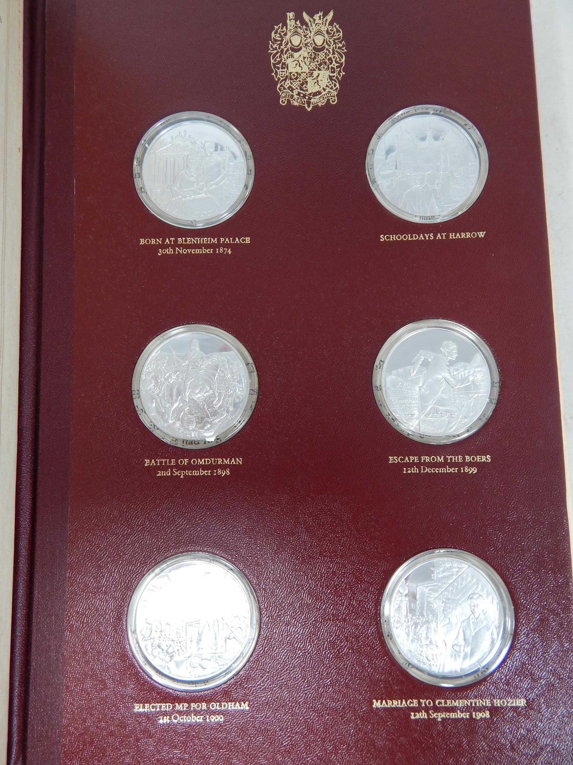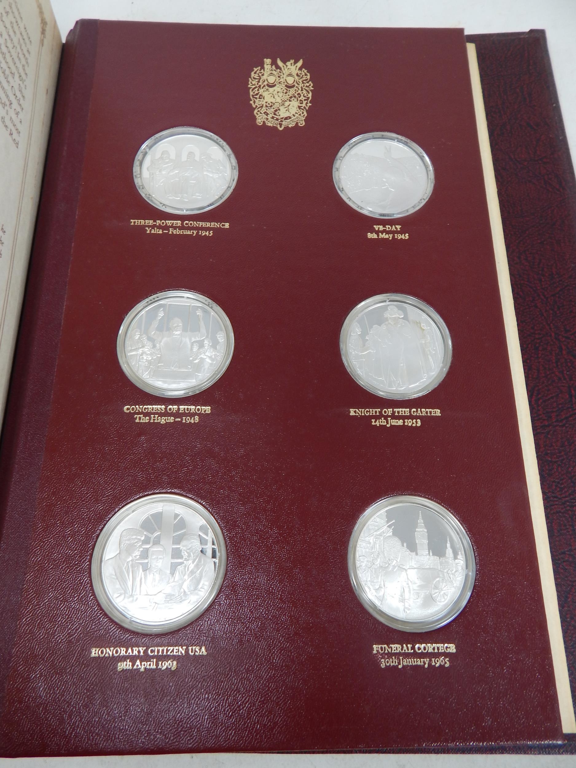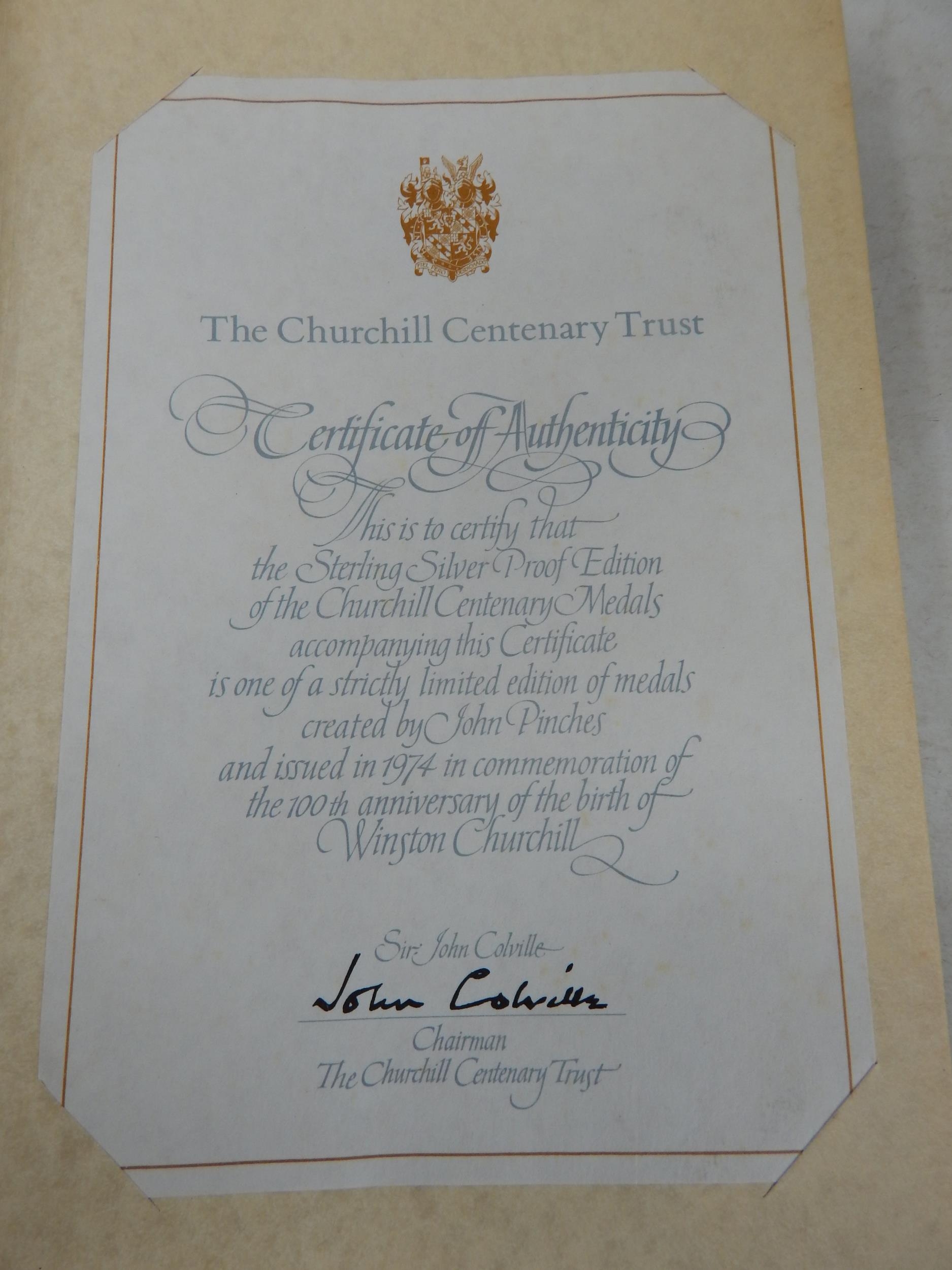 THE CHURCHILL CENTENARY MEDAL COLLECTION 1974 comprising 24 sterling silver proof medals 40mm in a presentation album by John Pinches, together with COA