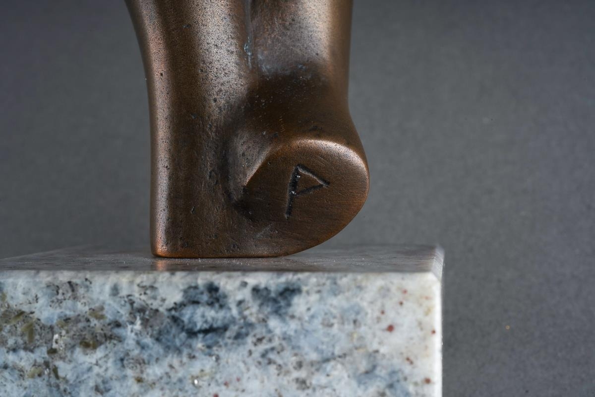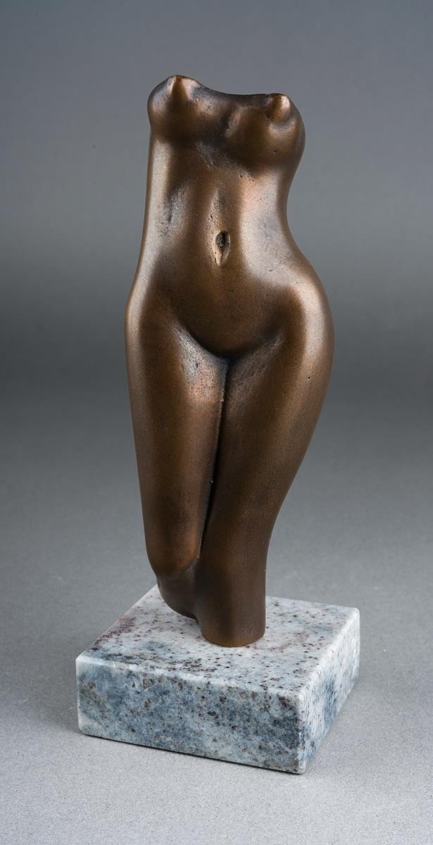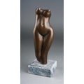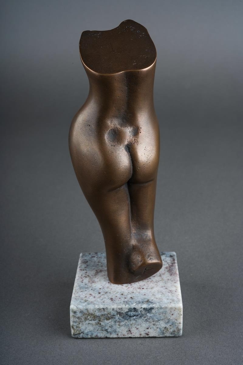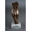 A second half 20th century bronze of a nude female torso, incised P to stump of bent leg, mounted on a granite base, height 15.5cm approx (1)