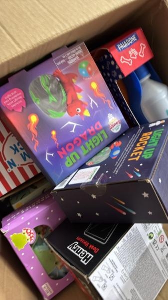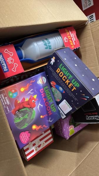 BOX OF MIXED GIFTWARE INCL. LIGHT UP ROCKET, MINI HENRY HOOVER AND MORE / PLEASE NOTE: ANY PURCHASES LEFT AFTER 5 WORKING DAYS MAY BE RE-SOLD TO COVER STORAGE & ADMIN