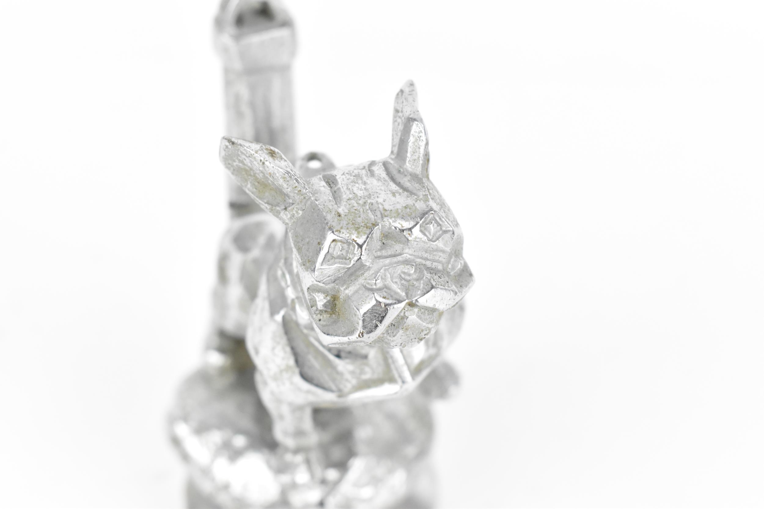 An early 20th century Art Deco nikel plated bull dog car mascot, mounted on radiator cap, the dog designed with faceted angles, the base with circular impression, 16 cm high